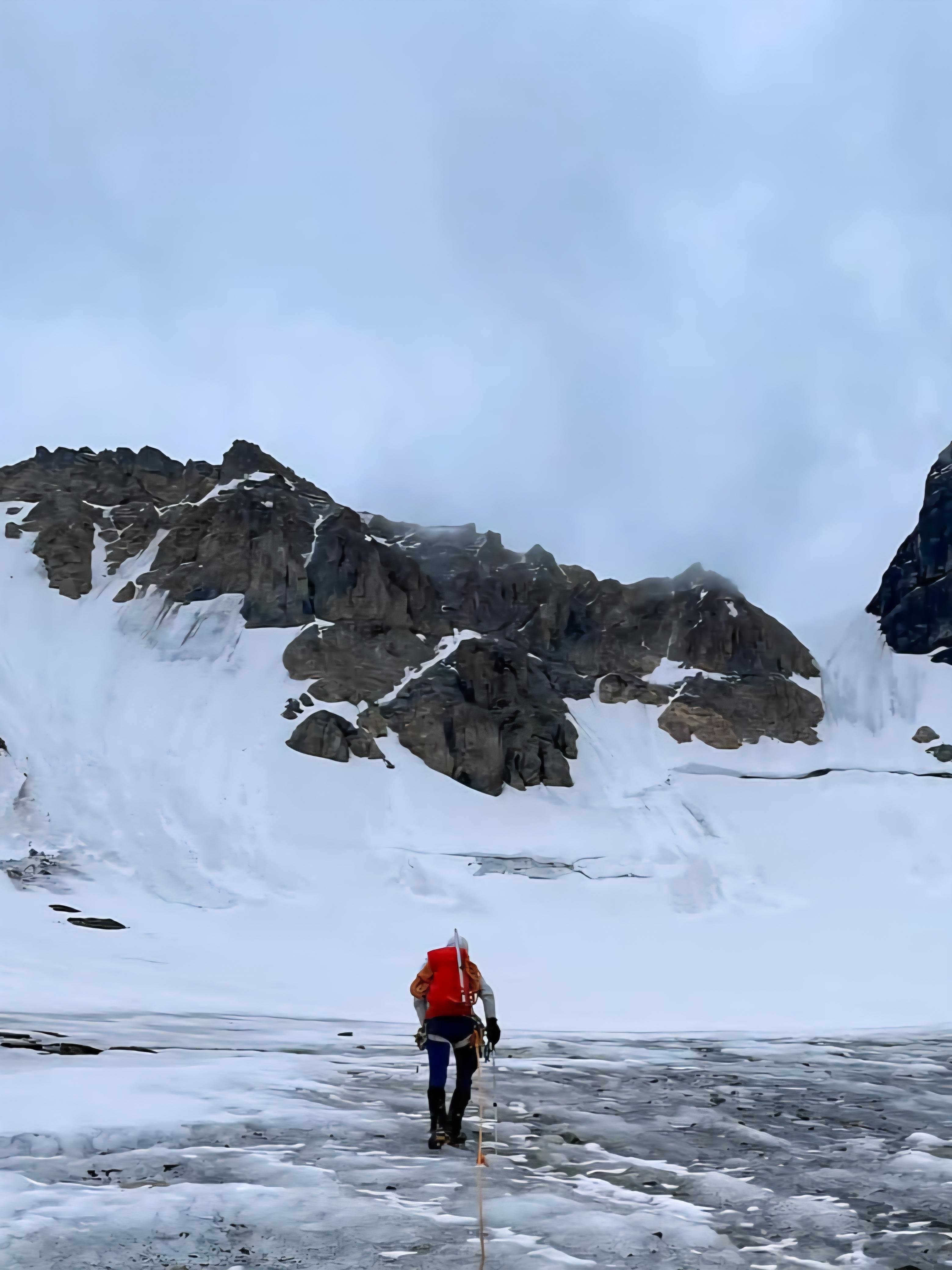 Glacier was dry, with the firn line far back, starting just below the AA col.