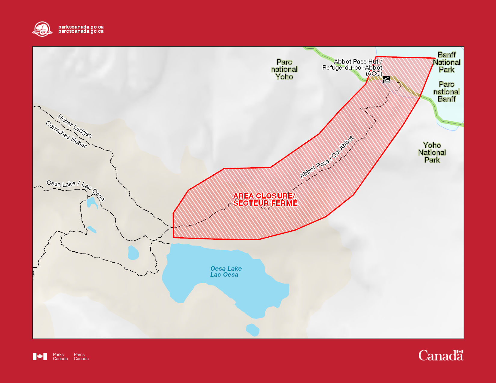 See the following link for information on the area closure around the Abbot Pass hut while slope stabilization work is in progress: