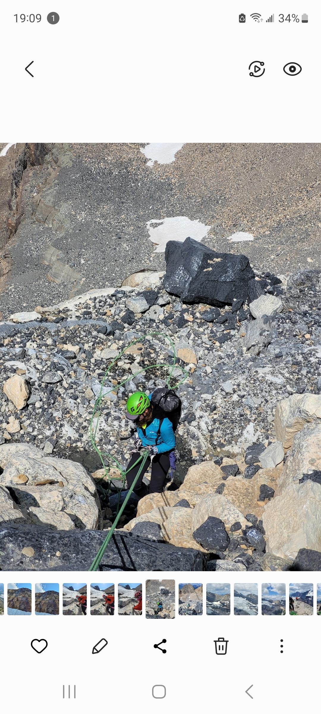 We've added a new rap station to extend the existing one that avoids the lower glacier tongue. The rap line goes over the first rock band in 4 rappels, all less than 30m (pic 3, 4, NOT current snow/ice conditions).