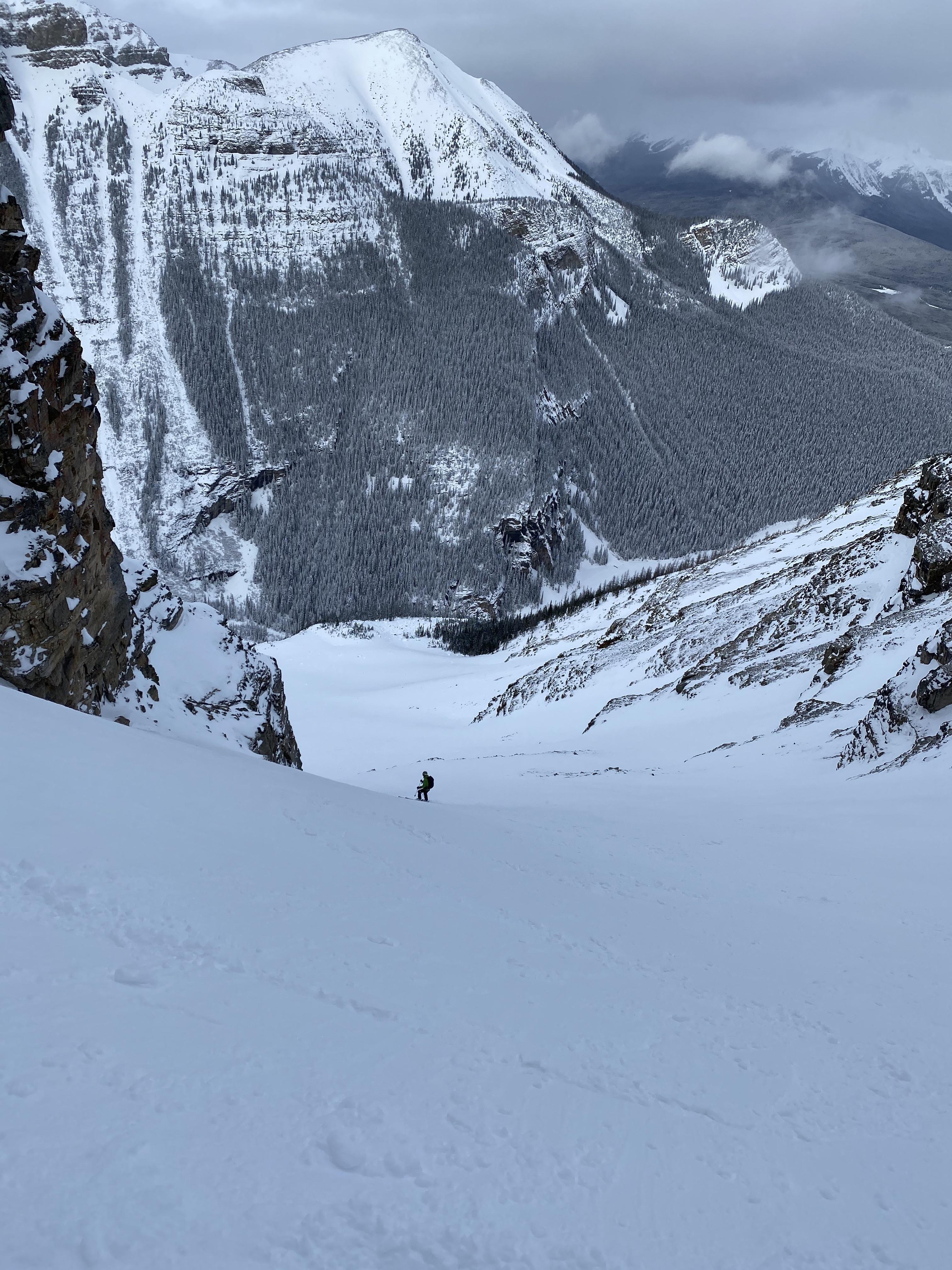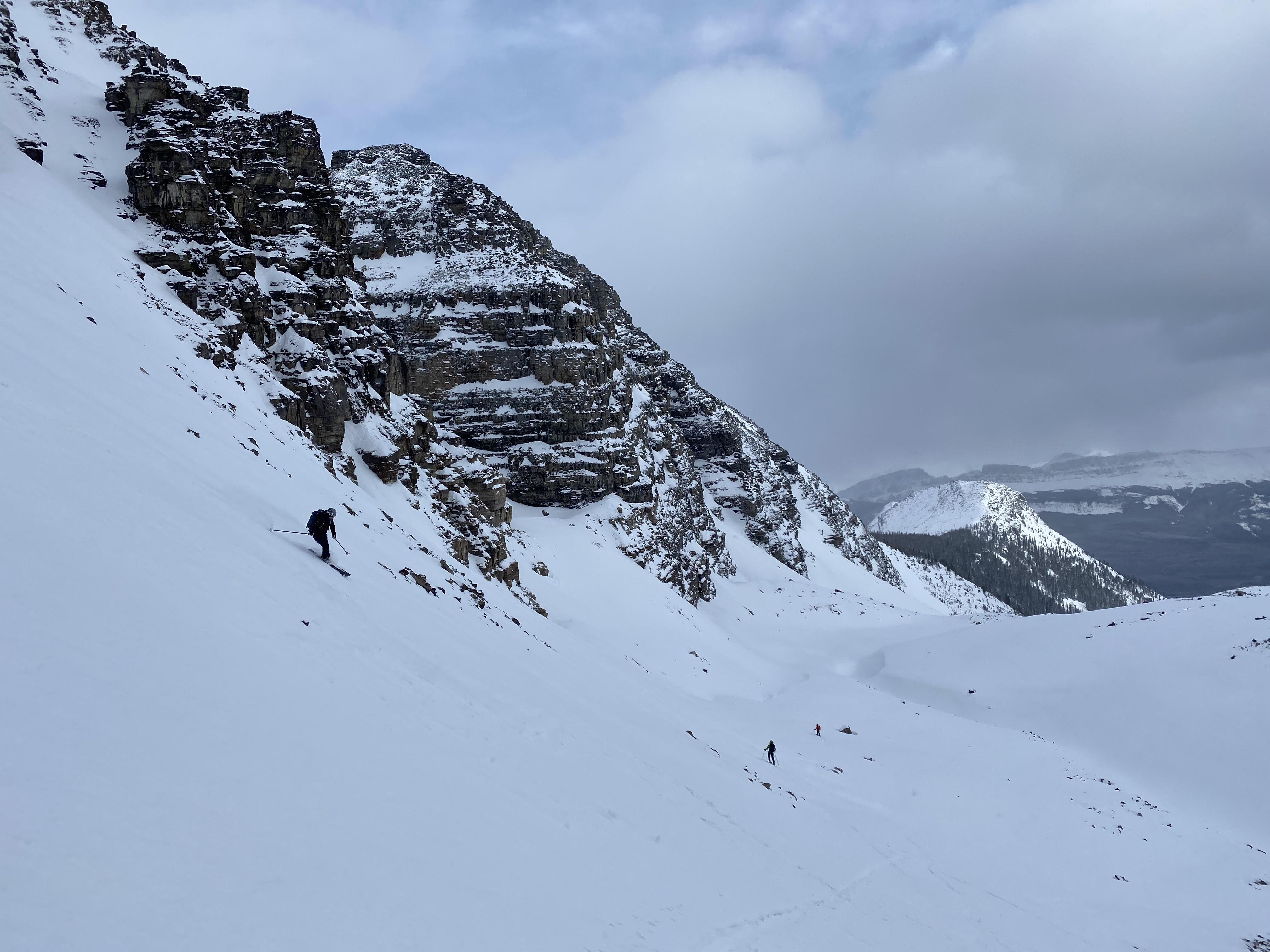 Little Crowfoot - We decided against skiing the ramp on the west side of Little Crowfoot yesterday due to overhead hazard with continued wind and poor visibility. There was good skiing on the glacier that was beginning to get wind affected, with an average snow depth of 130cm.