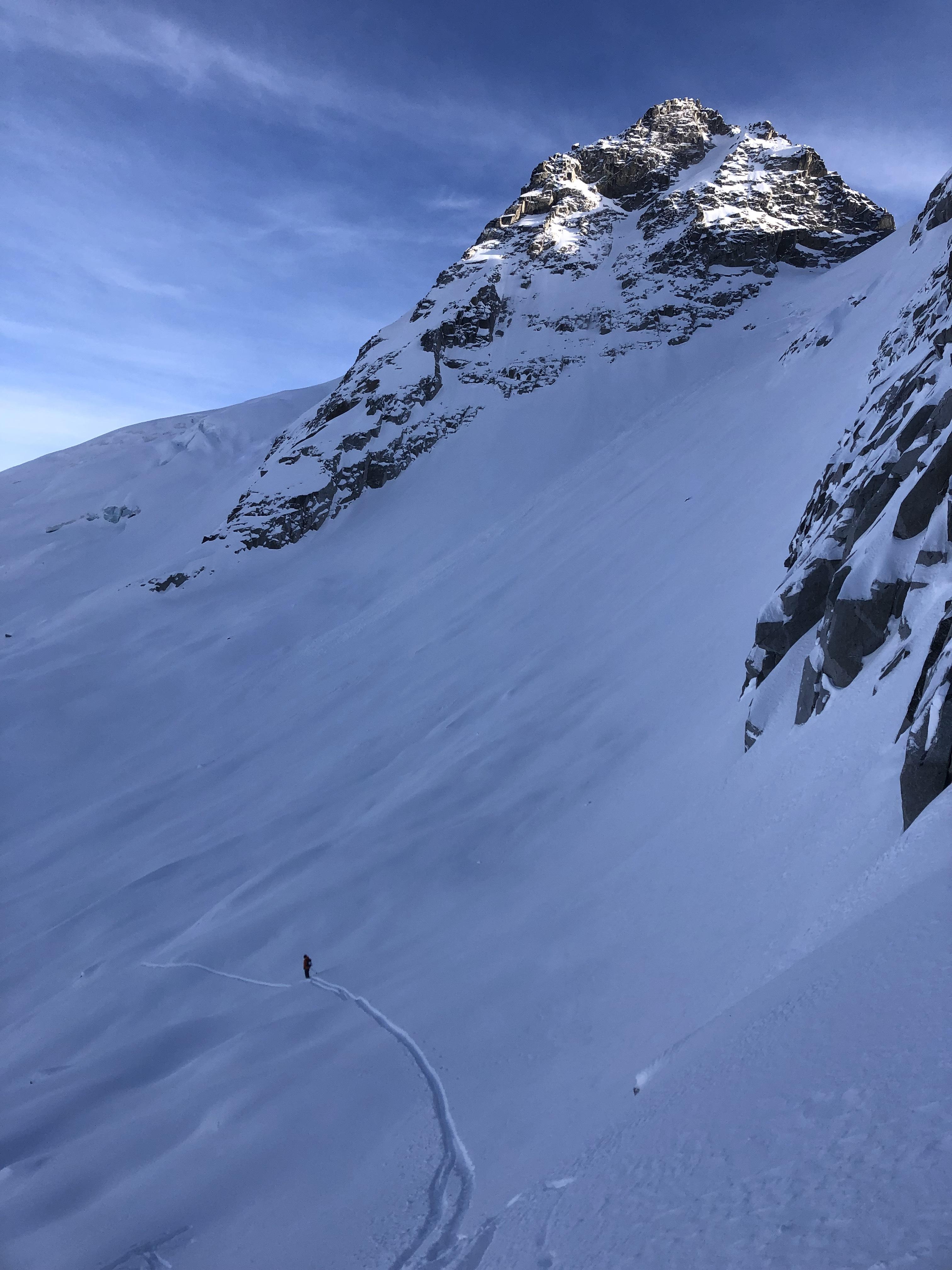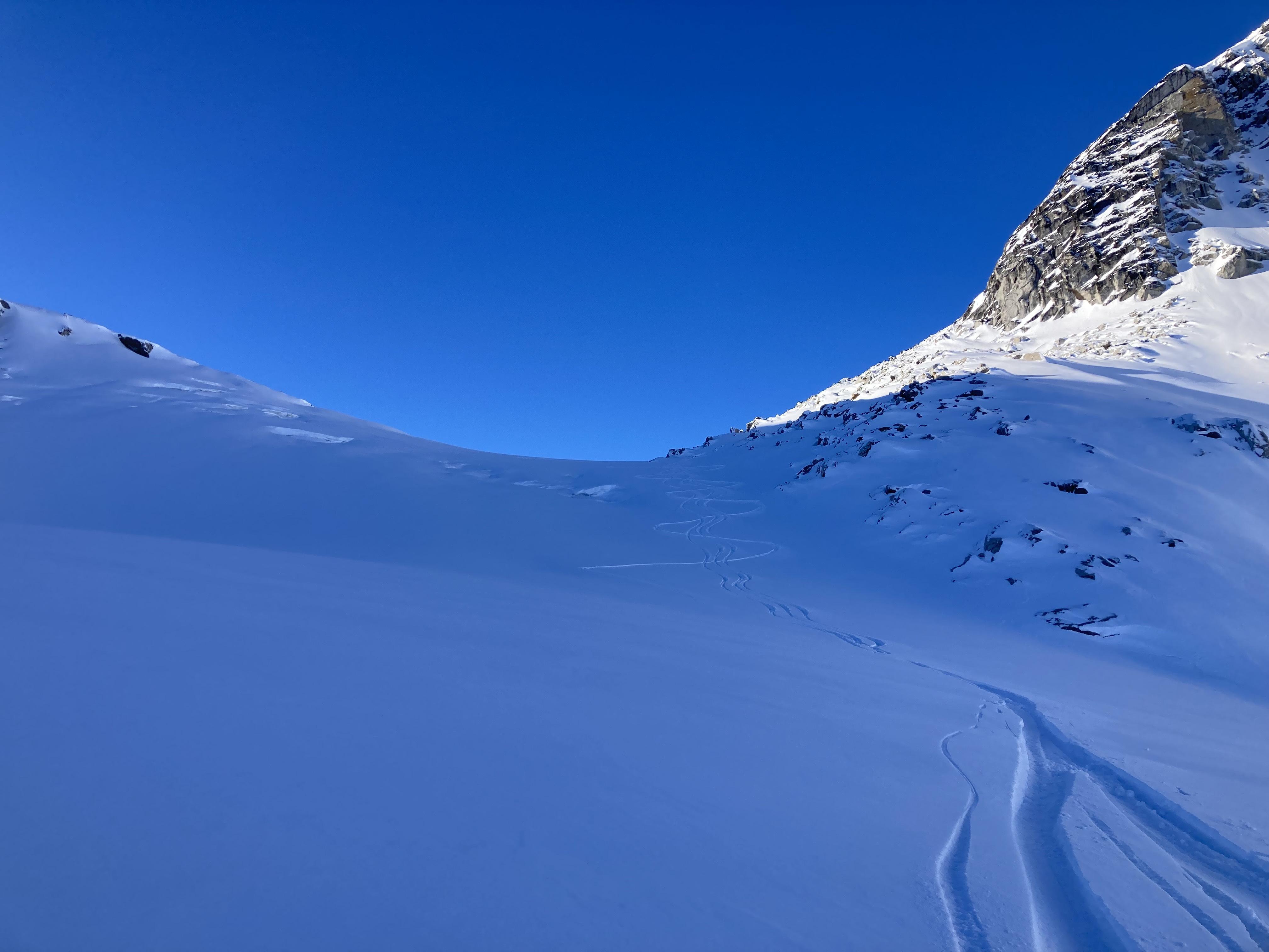 Terrain used: Reasonable ski quality ends around 1800m. We had high confidence in our avalanche hazard assessment below 2000m due to the bridging effect of the December 5th crust over deeper instabilities (e.g., December 1st surface hoar). Between 2000m and 2200m, a cautious approach to terrain was used due to the December 1st persistent weak layer. In the alpine, caution was given to terrain with a shallow facetted snowpack. In addition to managing avalanche problems, caution was also given to early season hazards, especially on glaciers. An average snow depth of 150cm was found on the glaciers above Snowfall Lodge.