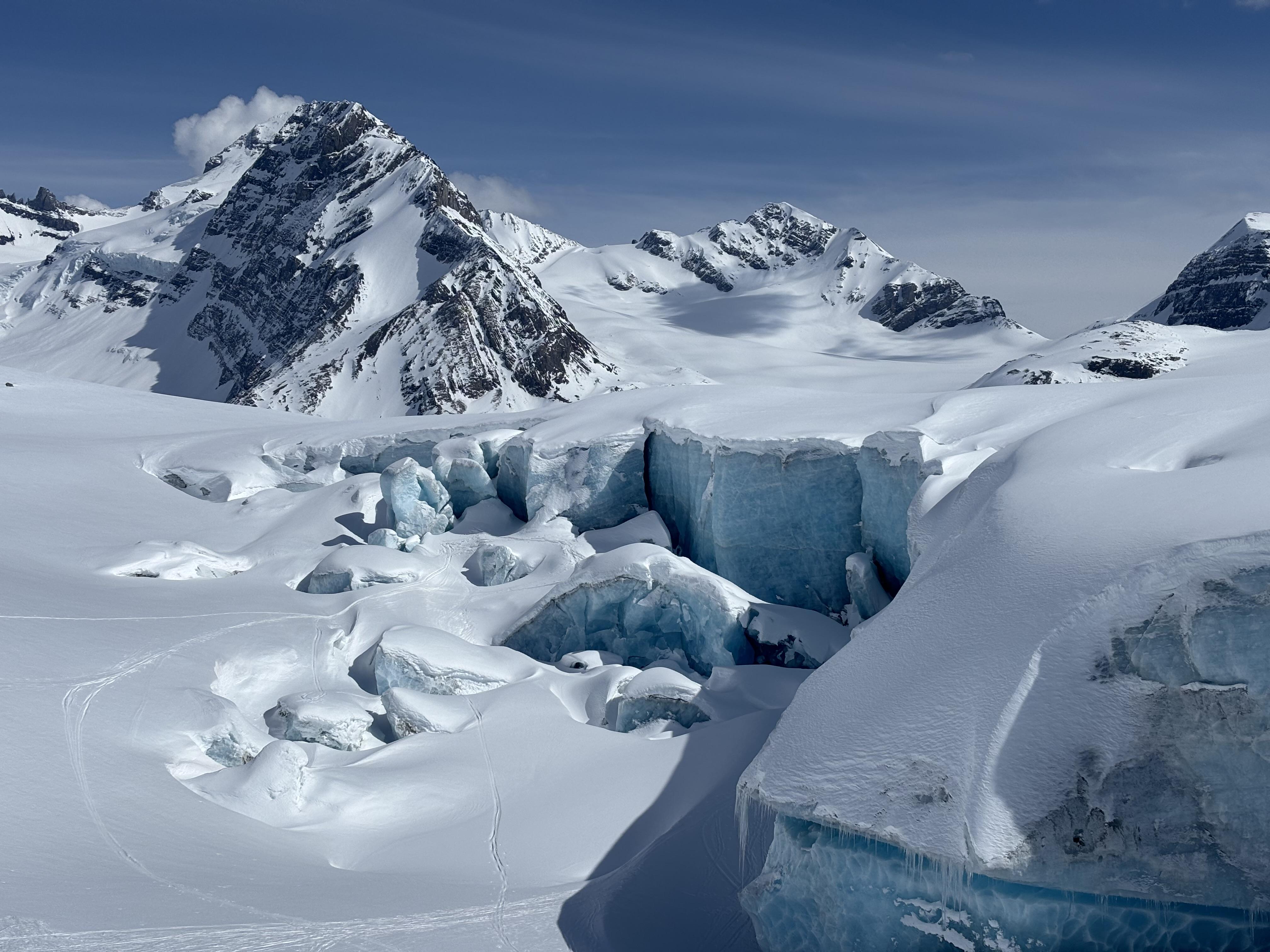 Most glaciers have a 3+ metre snowpack, with the exception of high points along the Lyell Icefield and the west side of Mons Peak. Crevasses remain well-bridged with only the slot in the Zen Glacier having recently grown.