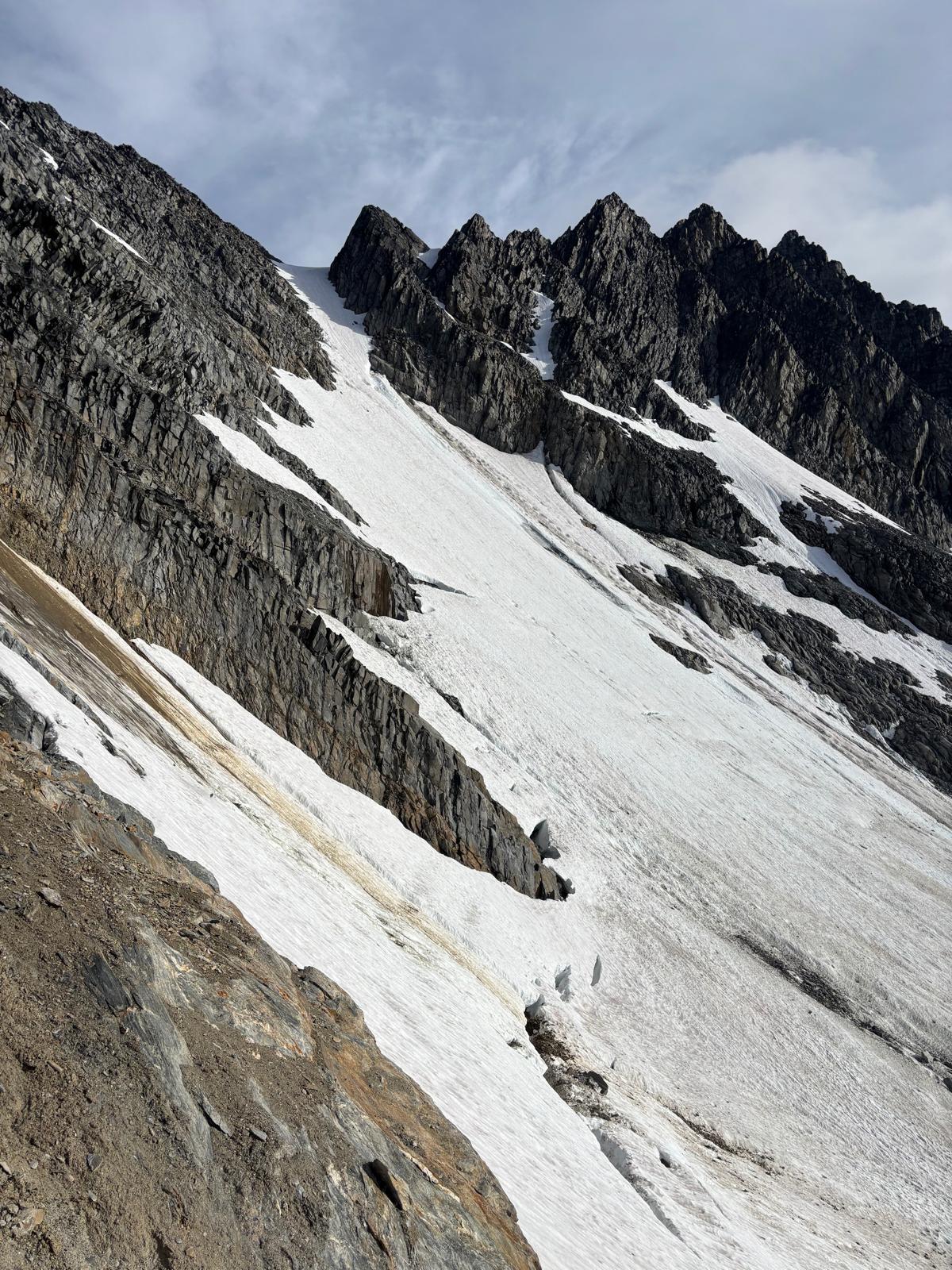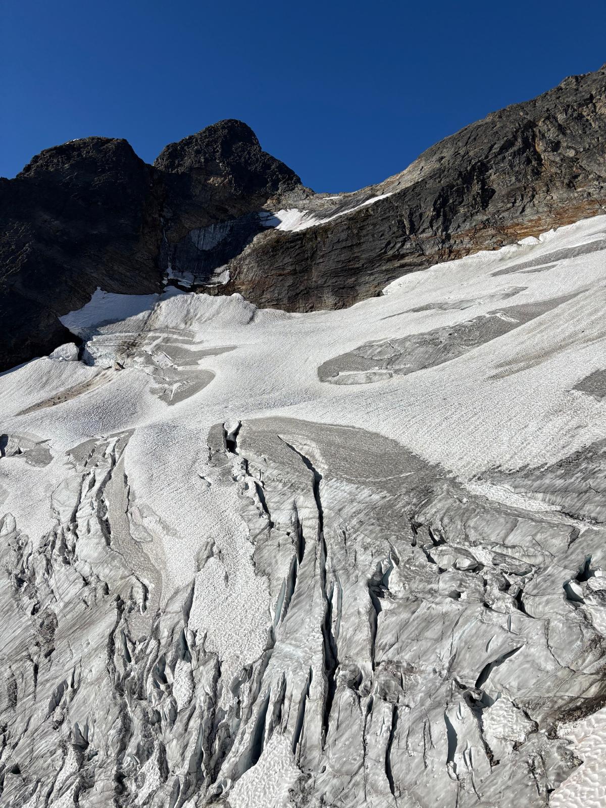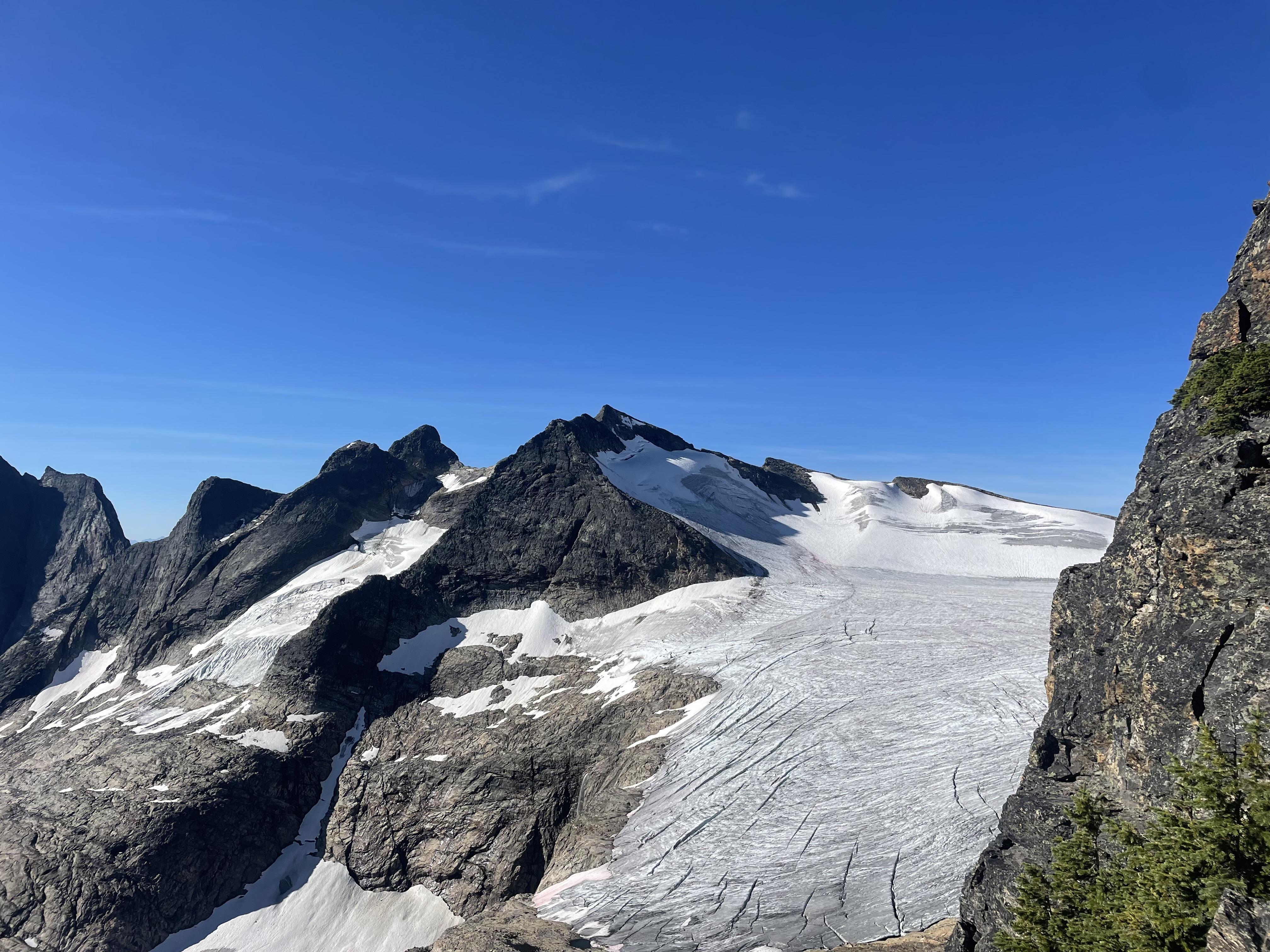 Rogers Pass: On August 18, groups climbed the NW Ridge of Sir Donald, the W Ridge of Tupper and the S Ridge (1896 Route) of Mt Rogers. All ridges are fully dry and in good shape, with plenty of water available up to the bivy sites. The S Face of Mt Rogers is holding snow above the bergschrund around 2800m.