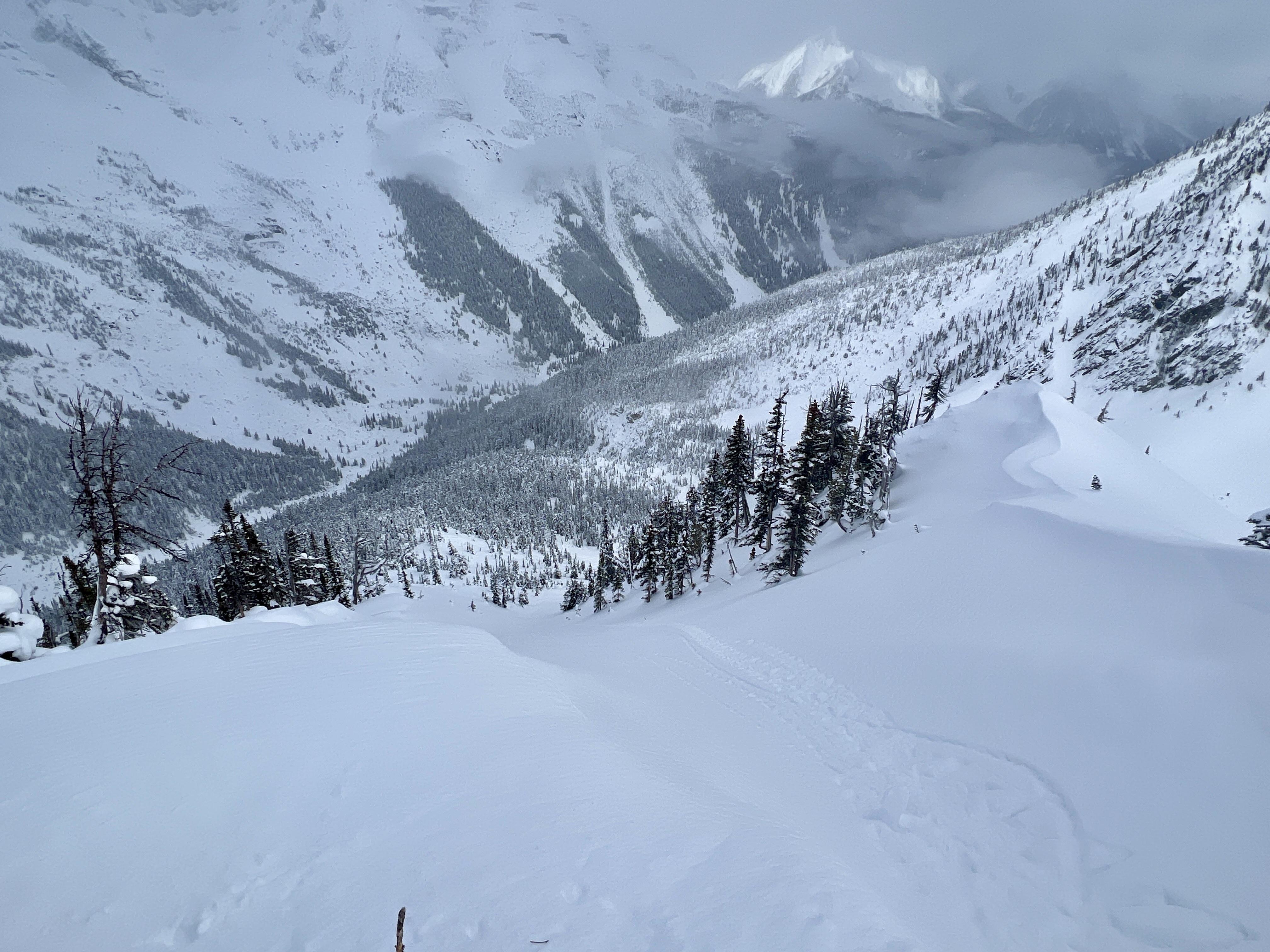 Snow stability gradually improved with continued inputs of low density stellar snow up to 20 cm in the area during our time up there. However this new snow was intermittently accompanied by moderate-strong S-SW winds in the alpine and treeline, so we were leery of wind slabs in open terrain at treeline.