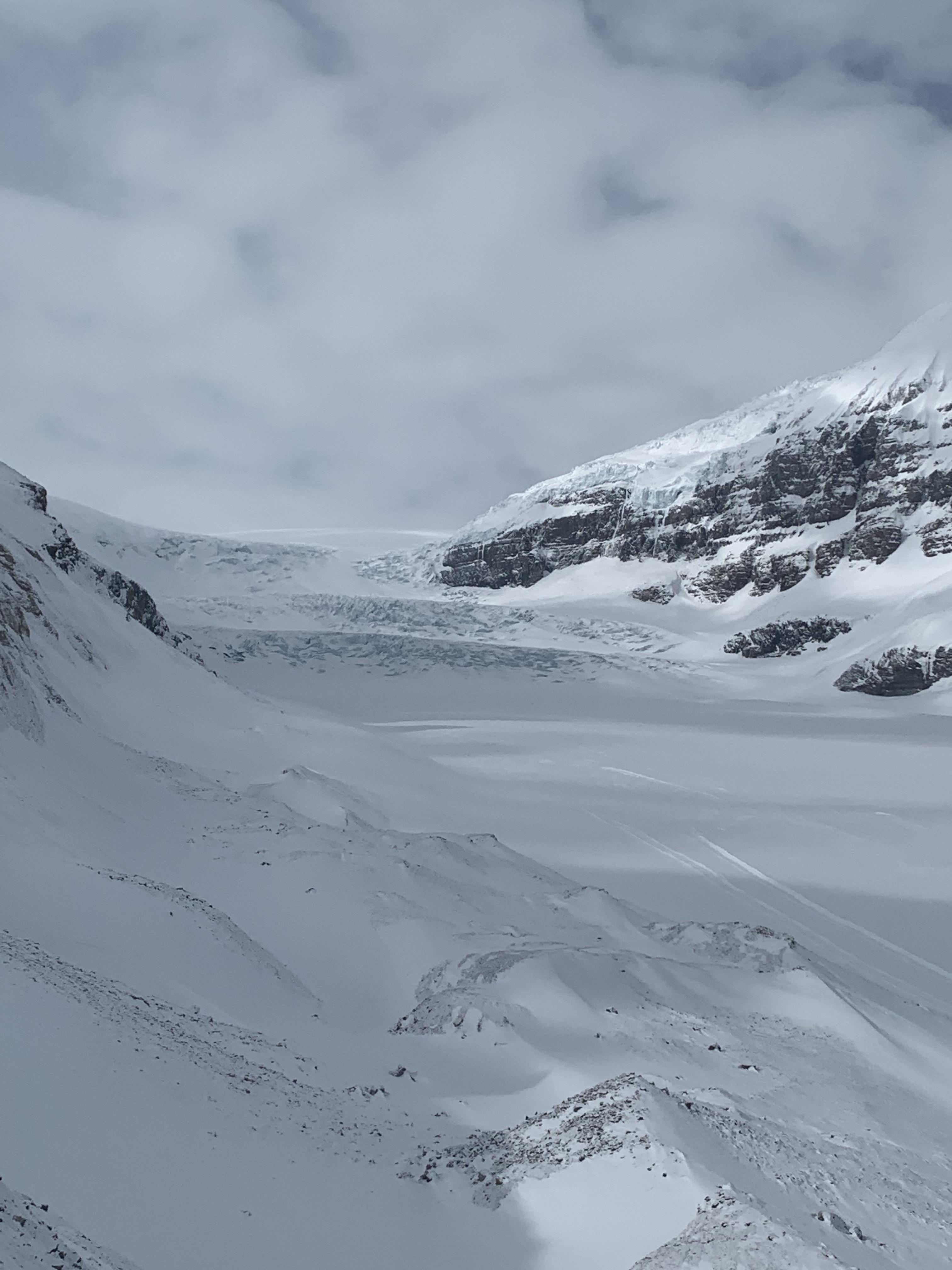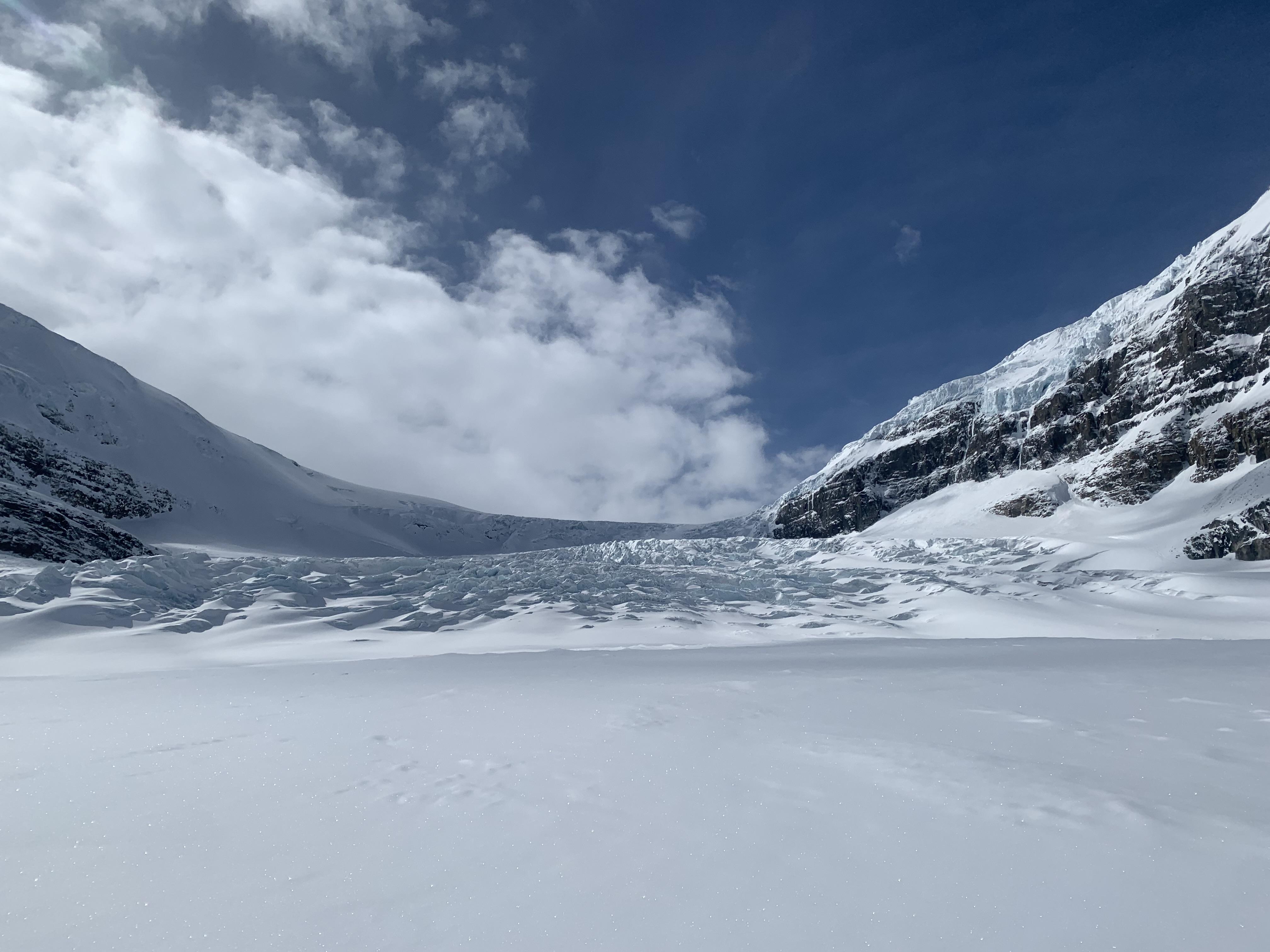 Jasper Visitor Safety Team walked up the Athabasca glacier as far as the first icefall. Height of snow (HS) was an average of 90-165 on the glacier with large sections of bare ice in more wind exposed areas. The lookers left route up the lower icefalls of the Athabasca looks thin with minimal bridging across the crevasses. The main ramp at the top is also narrower than usual for the time of the year. We observed a few older ski tracks coming out from the Columbia Icefields on the lookers right of the glacier underneath the serac wall.