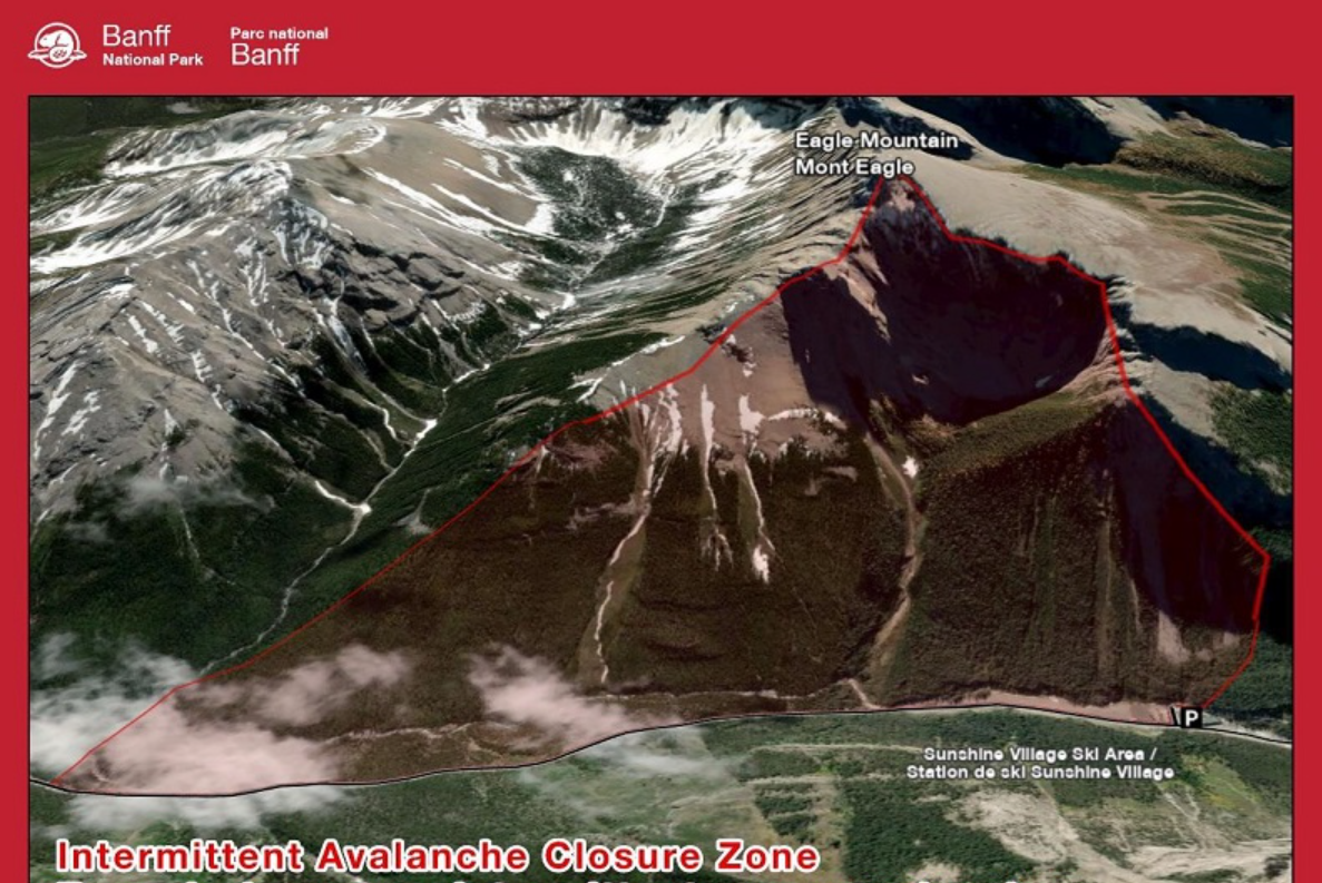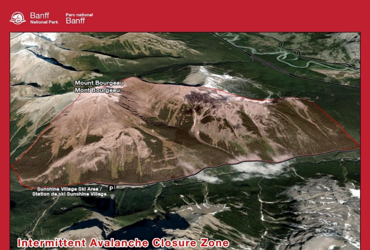 Parks Canada will be conducting avalanche control work on Mt. Bourgeau and Eagle Mountain tomorrow afternoon. Please, do not climb or ski/ride in the areas highlighted in the photo's attached.