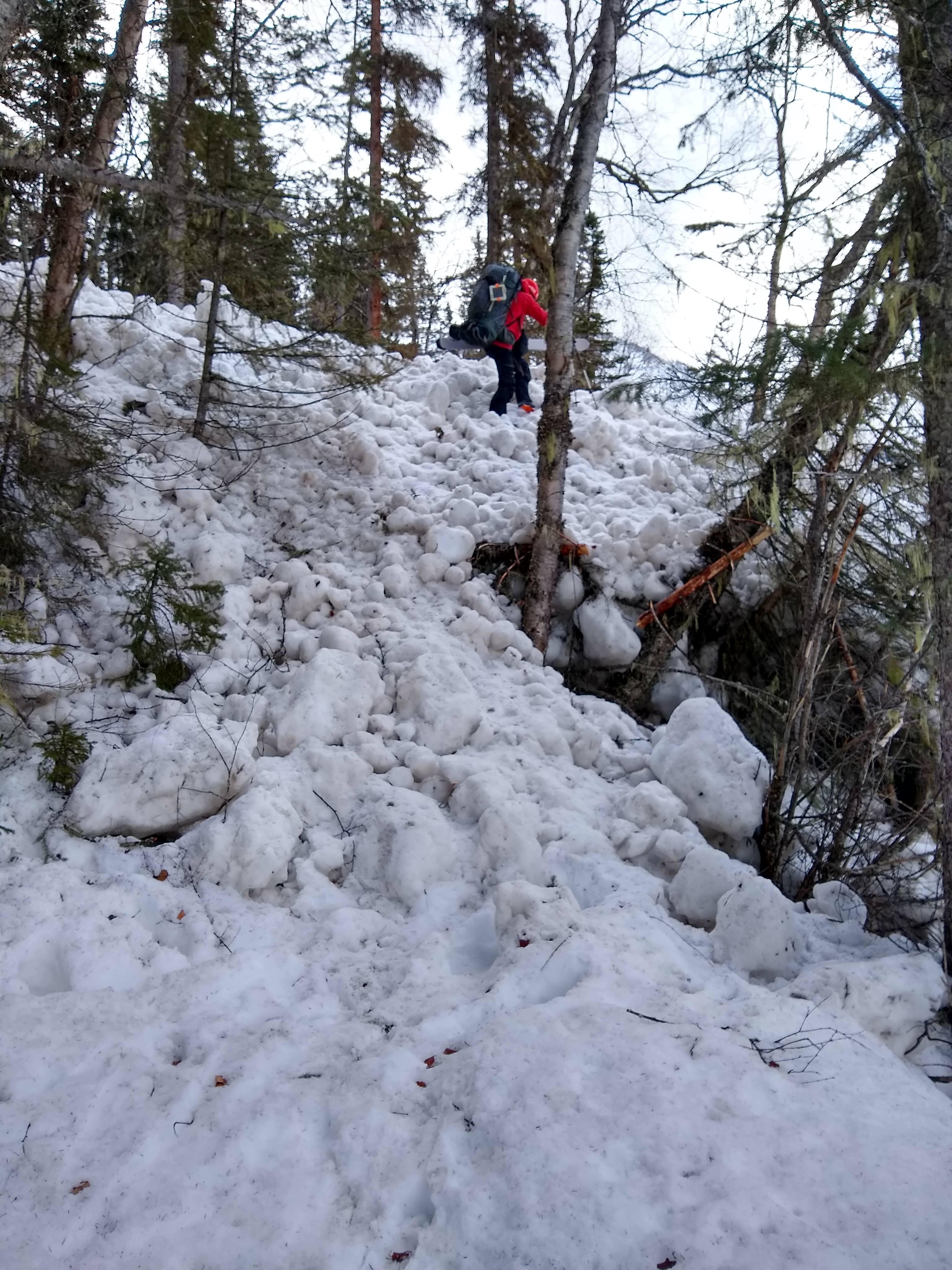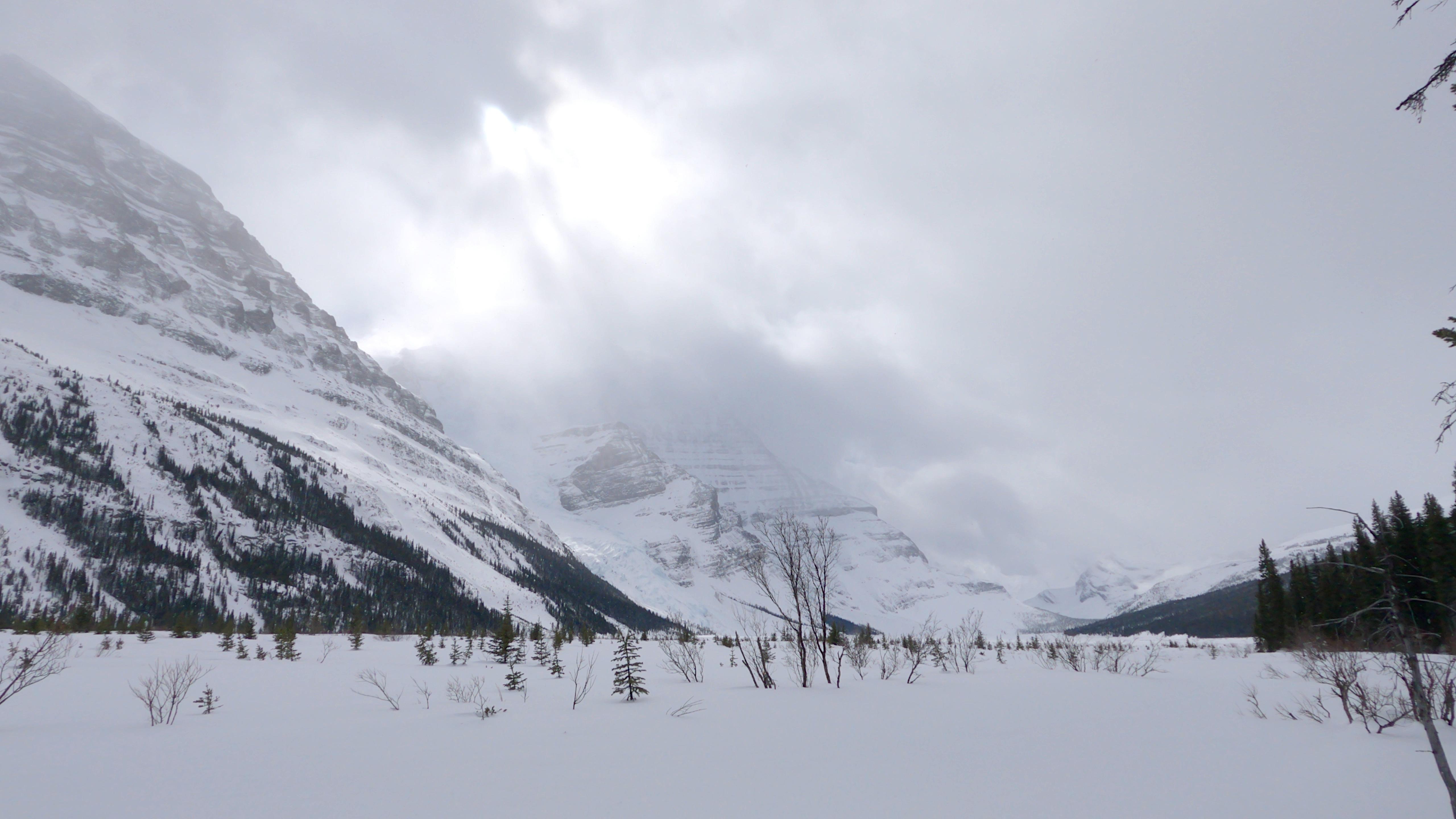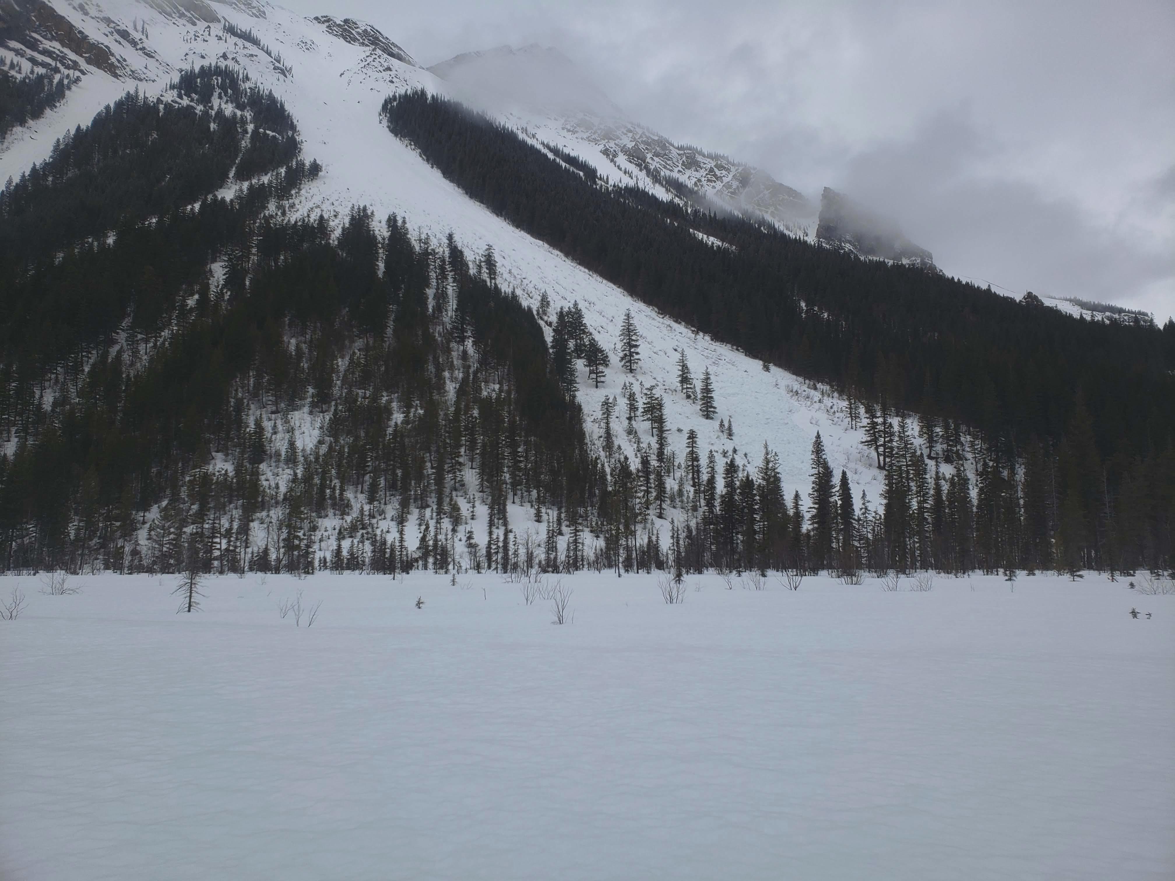 For anyone considering heading up the trail before the closure, be aware that the area is very much still in winter conditions. Carry all appropriate avalanche equipment and be mindful of avalanche hazard. Several avalanches (both recent and old) have run across the trail this winter (including the large gully descending off Cinnamon Peak around km 1, a lakeside gully before reaching the Kinney Lake shelter, and the large path along the Whitehorn Hill) making for short sections of difficult travel; otherwise, coverage on the trail to reach Berg Lake on skis was actually quite good. The ice on Kinney Lake has melted considerably with recent warm temperatures and looks very thin in many places.