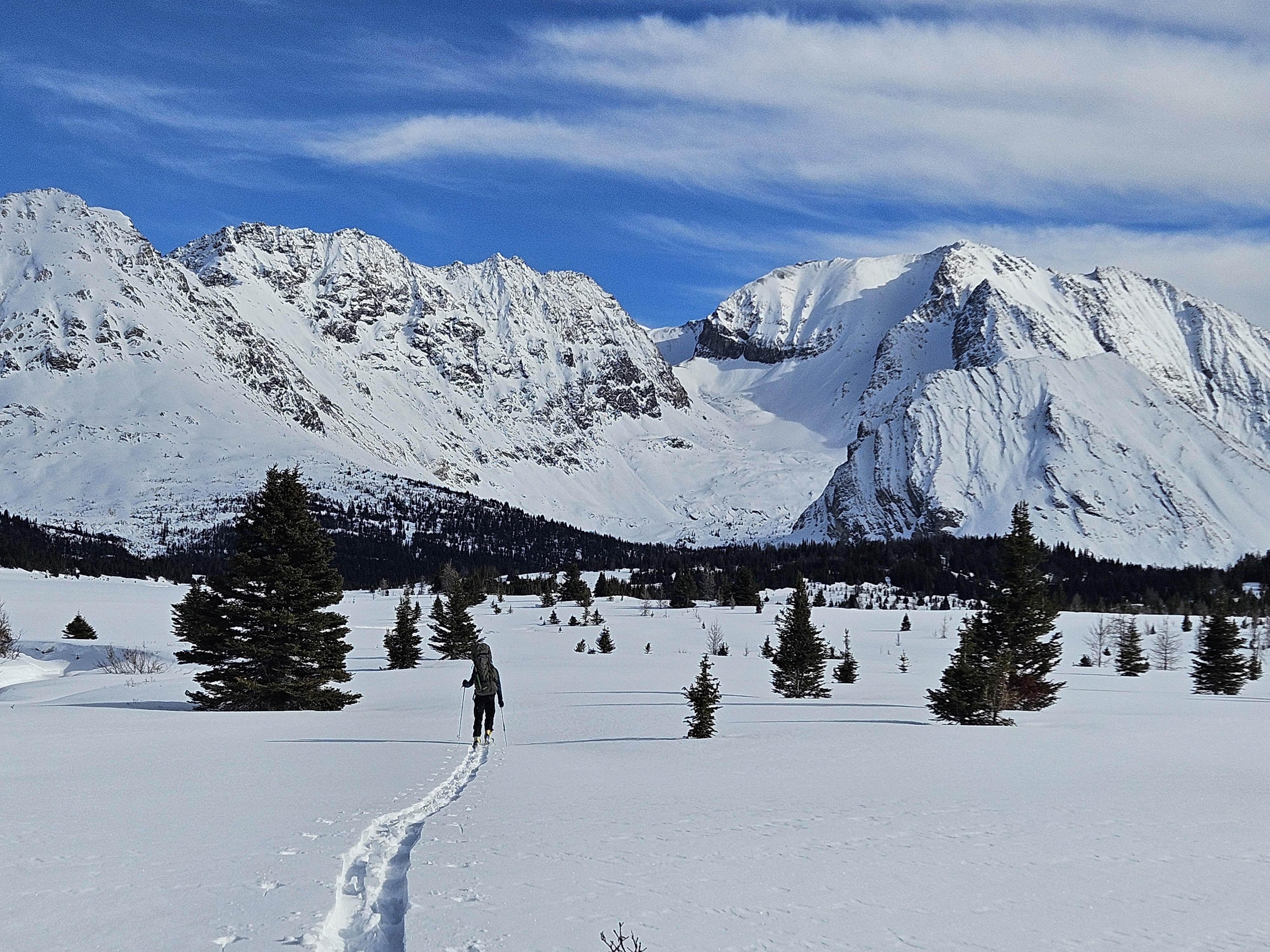 Feb 3rd crust is faceting out and is not supportive to skis on steeper rolls above 2000m. Generally speaking, we found the crust supportive on low angle terrain with the exception of the slog out of Johnston creek where we continuously punch through to the mid-pack or into the faceted base as the snow depth decreased.