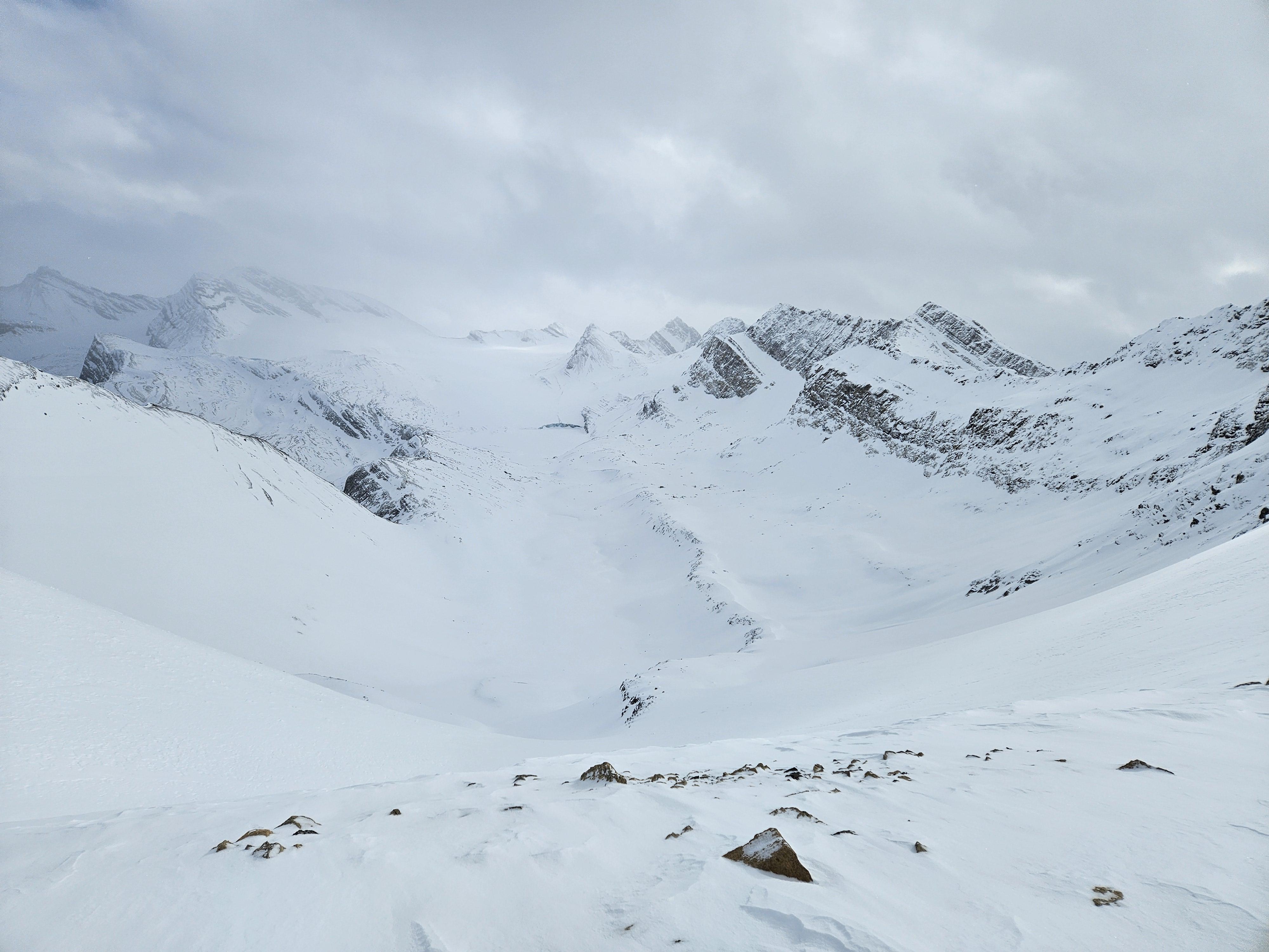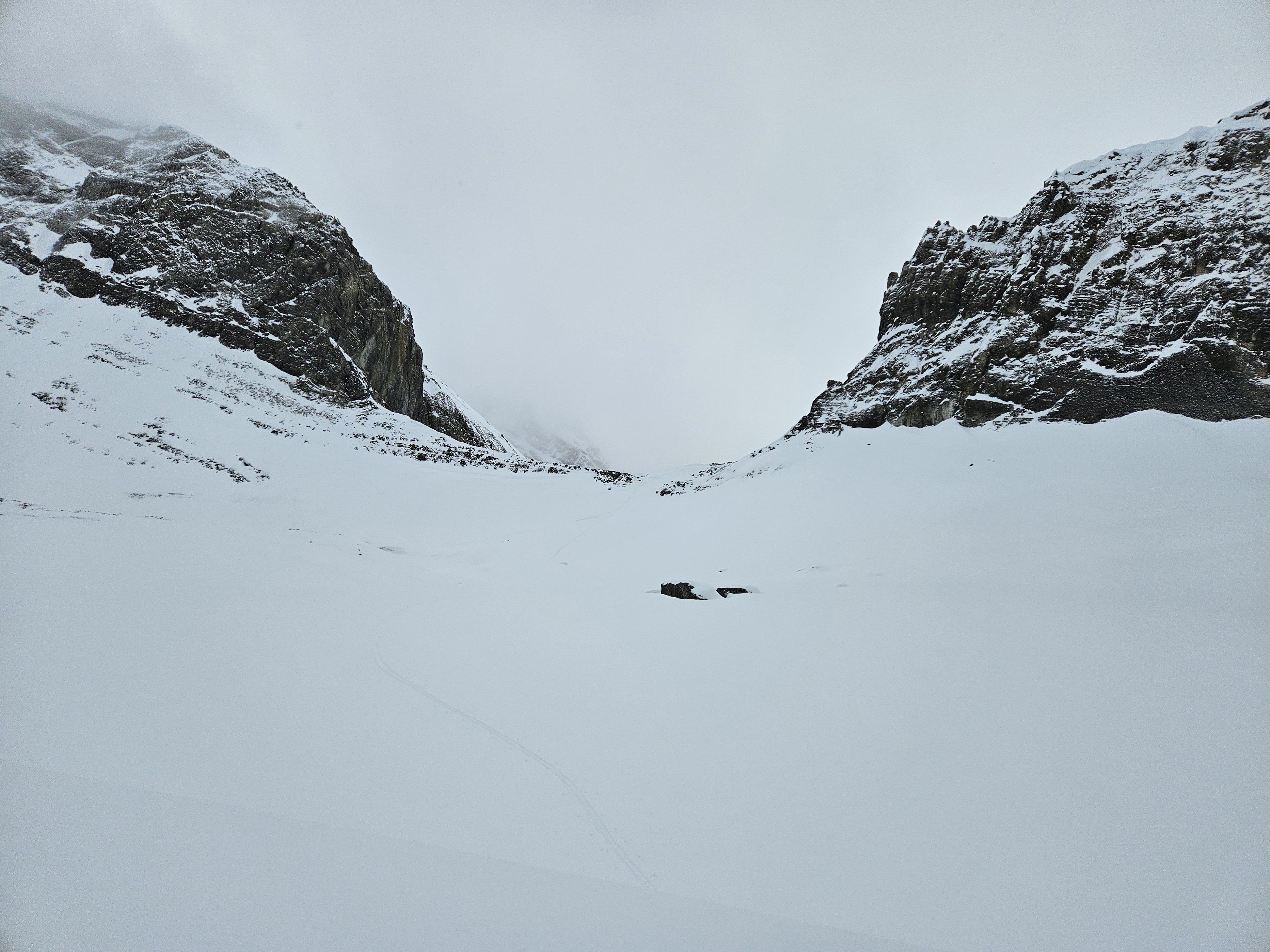 Average snow depth of 150cm over Bonnet and Trifid Glacier. They were both currently straightforward to navigate.