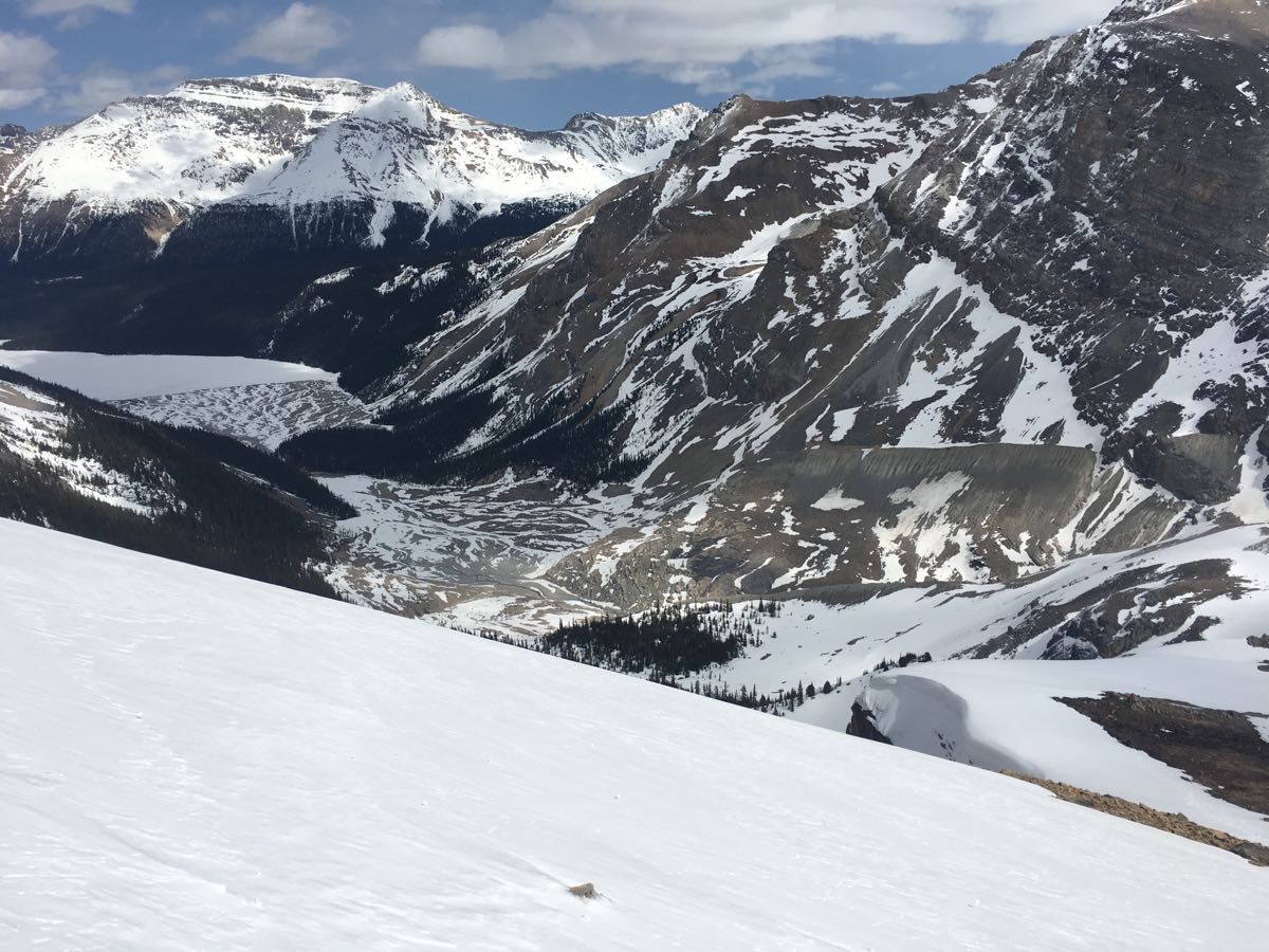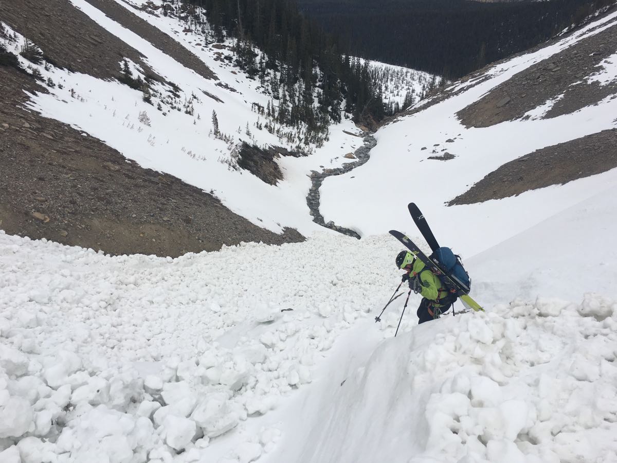 Travel is fast with good overnight freezes which held strong until late afternoon for us on both days. Access to Bow hut is still mostly done on skis but ski crampons are handy if you want to stay out of the creek. The Peyto hut approach is reportedly quite tedious with lots of walking on rocks (see photo).