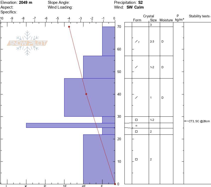 Pic attached of the bow summit study plot from yesterday (2000m). The Nov. crust and facets growing above and below it are really pronounced here, but were also found at treeline at Bow summit. These will be a concern where a slab sits on top and will be one to watch for a while!