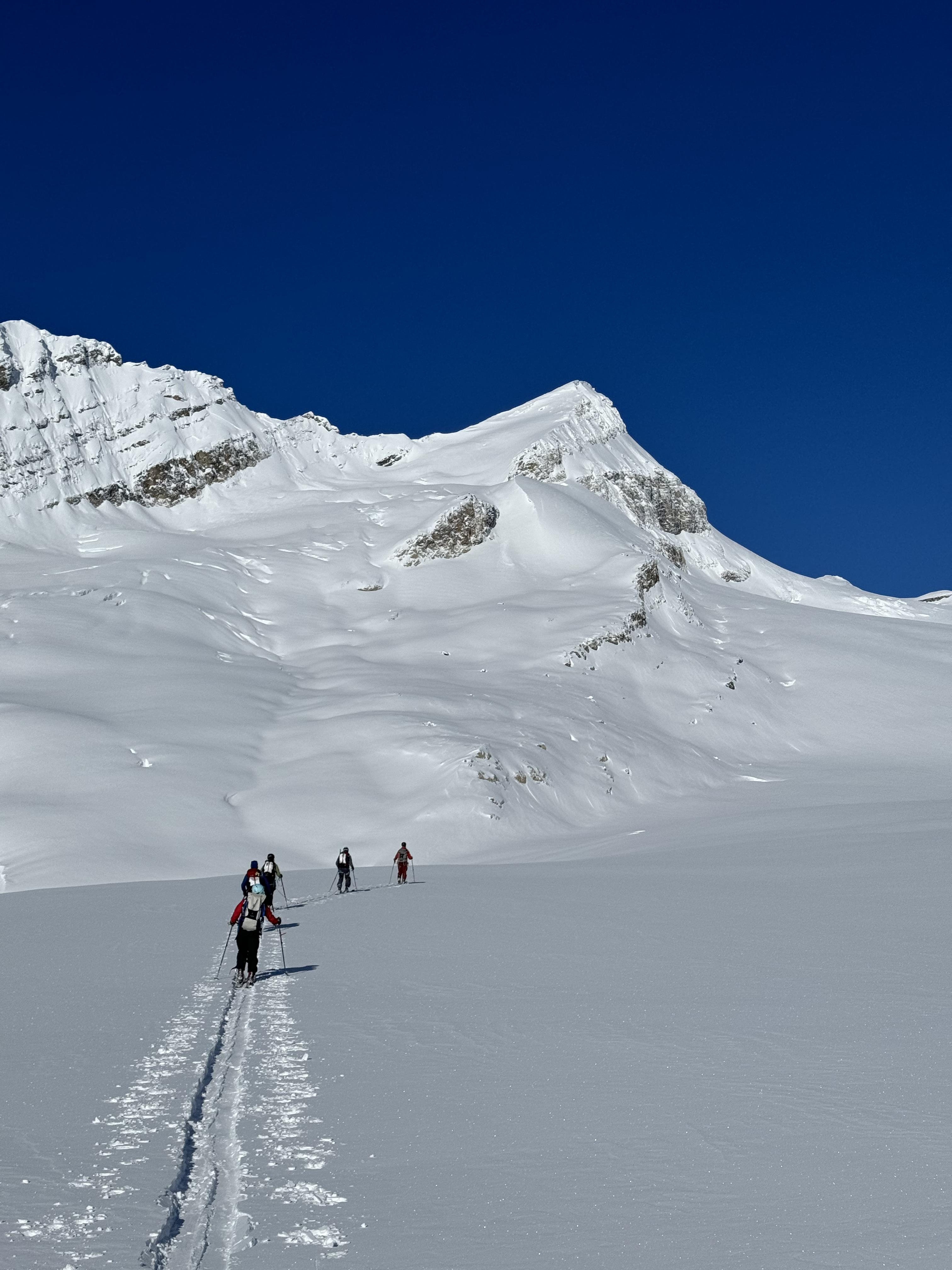 Just finished guiding a Bow to Yoho traverse last week for On Top Mountaineering. In classic Wapta fashion, we encountered whiteout nav, frigid temps, elevated avalanche hazard and cold skiing on windboard. We also had bluebird days, pow skiing, and solitude across the entire traverse!