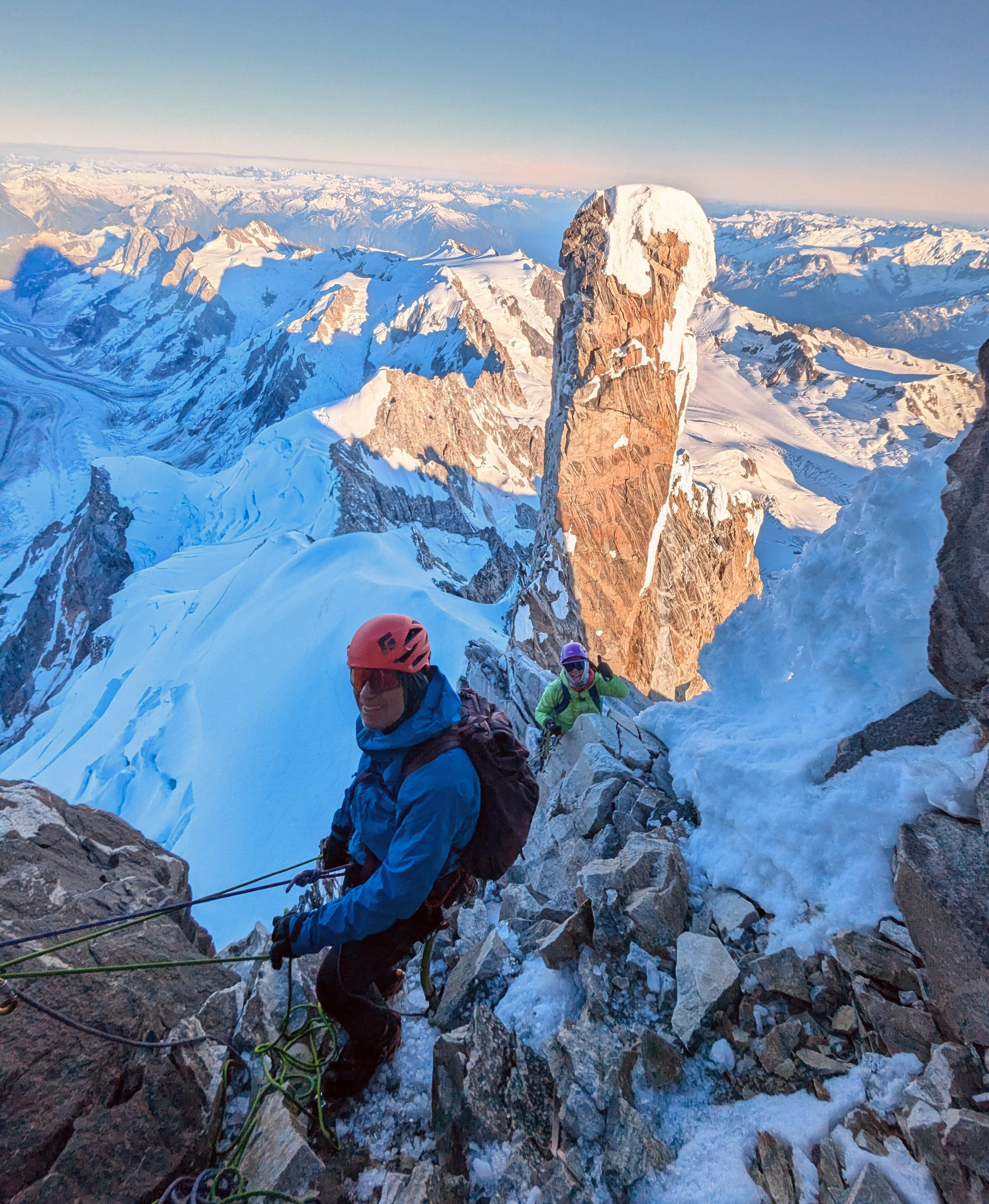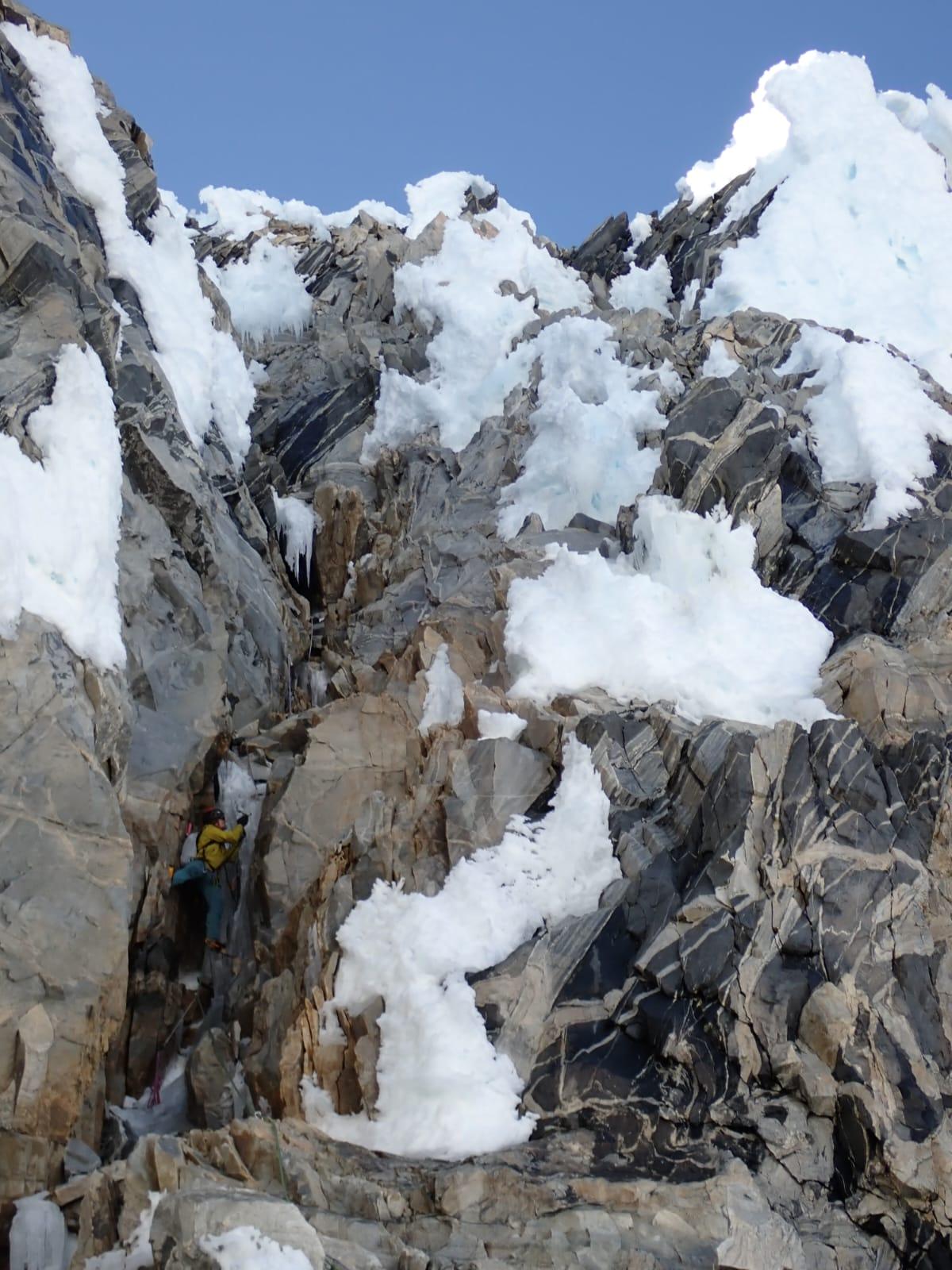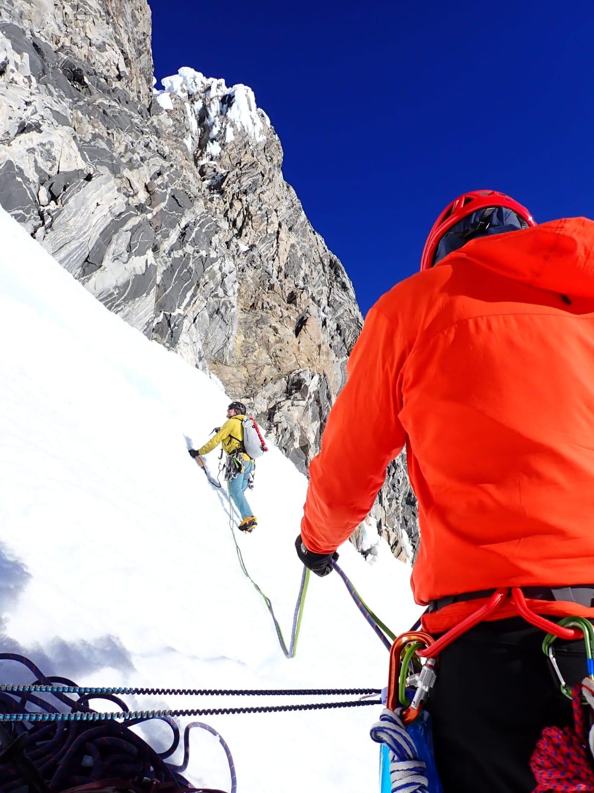 We were pretty lucky to have such a good weather window and favorable conditions. It wasn't without significant efforts though. We used all our tools and every imaginable techniques to overcome the various challenges on the route. Above all, we hugely benefited from a thorough fly by of the lower Bravo glacier to be able to pick the best possible route through the exposed crevasse maze.