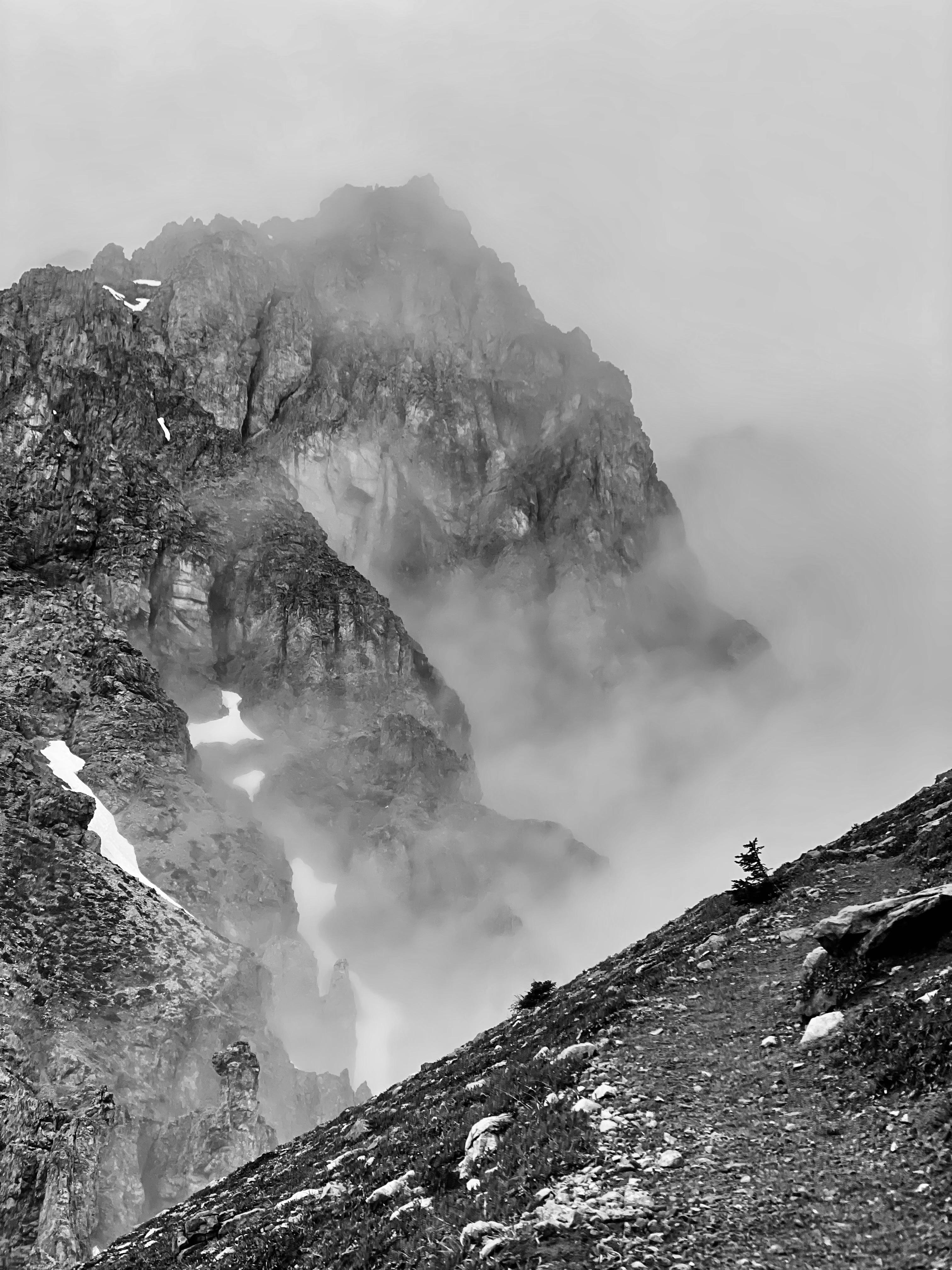 The Cory Pass trail is in good shape although several snow patches need to be crossed in the gullies, we were able to easily kick steps across. We were able to avoid snow on the climb itself. Clouds obscured the south peak but it probably is mostly snow free as well.
