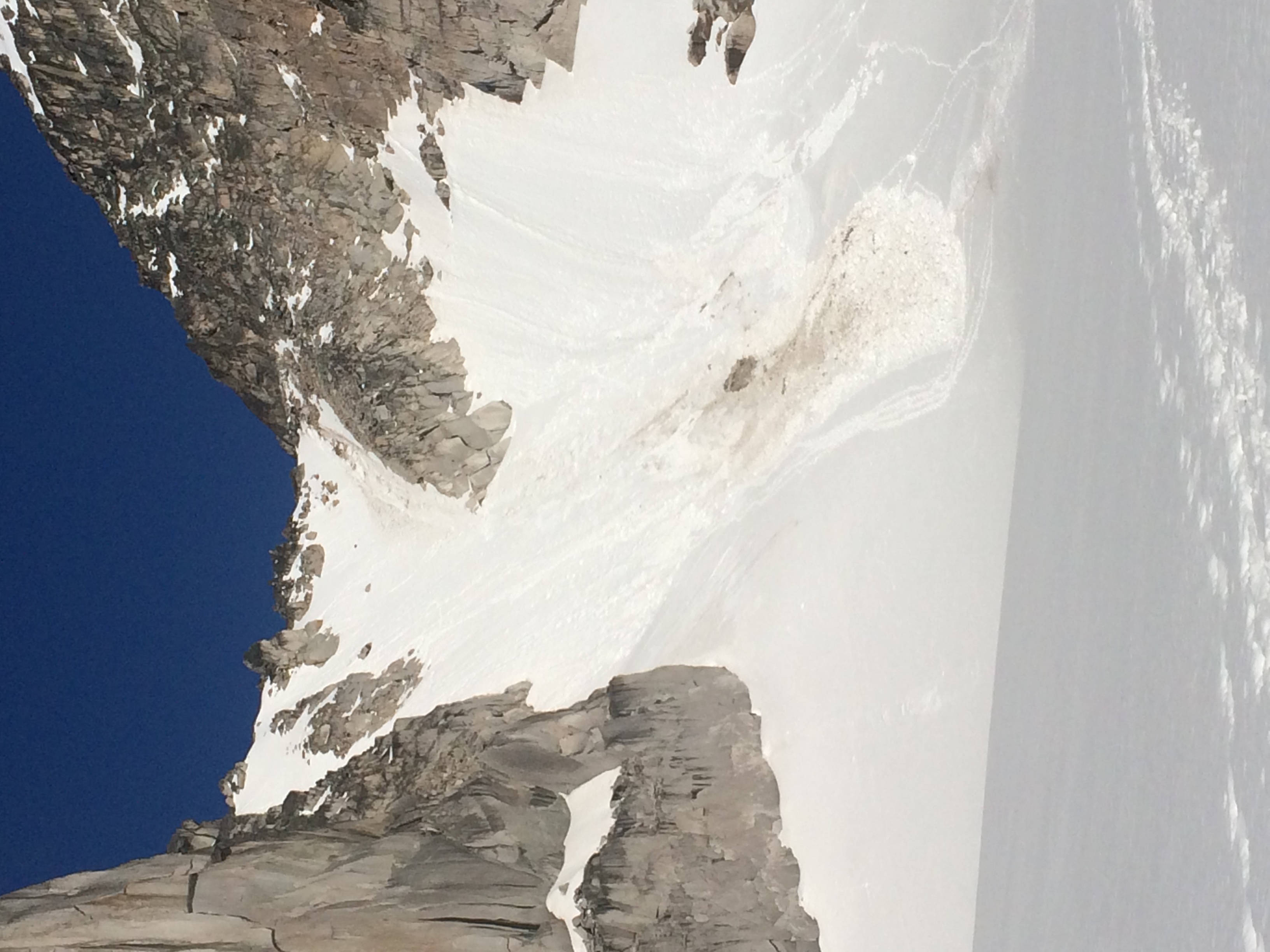 2. The Bugaboo Snowpatch Col has seen some rockfall (kitchen table sized) originating from the climber's right hand side.