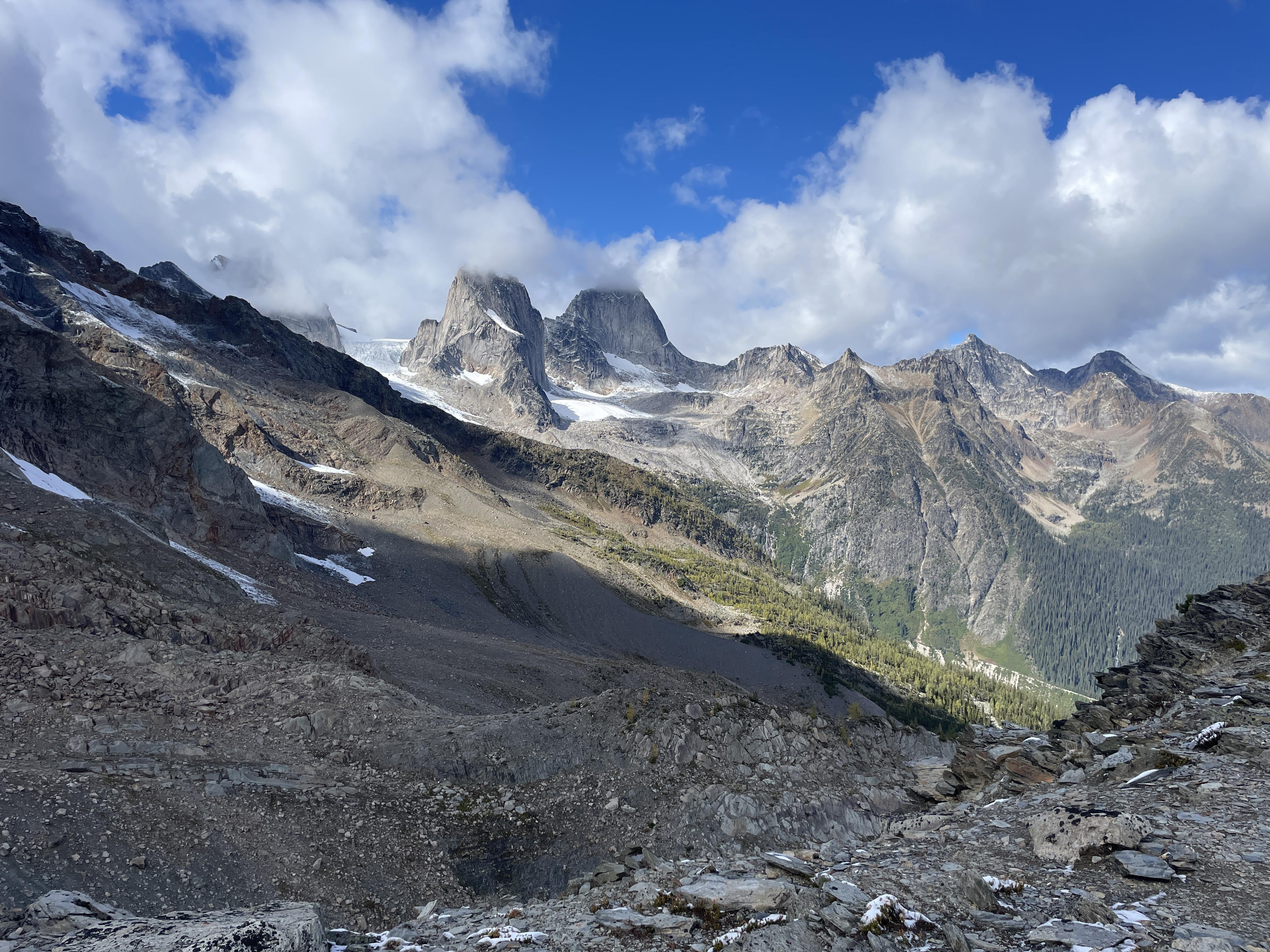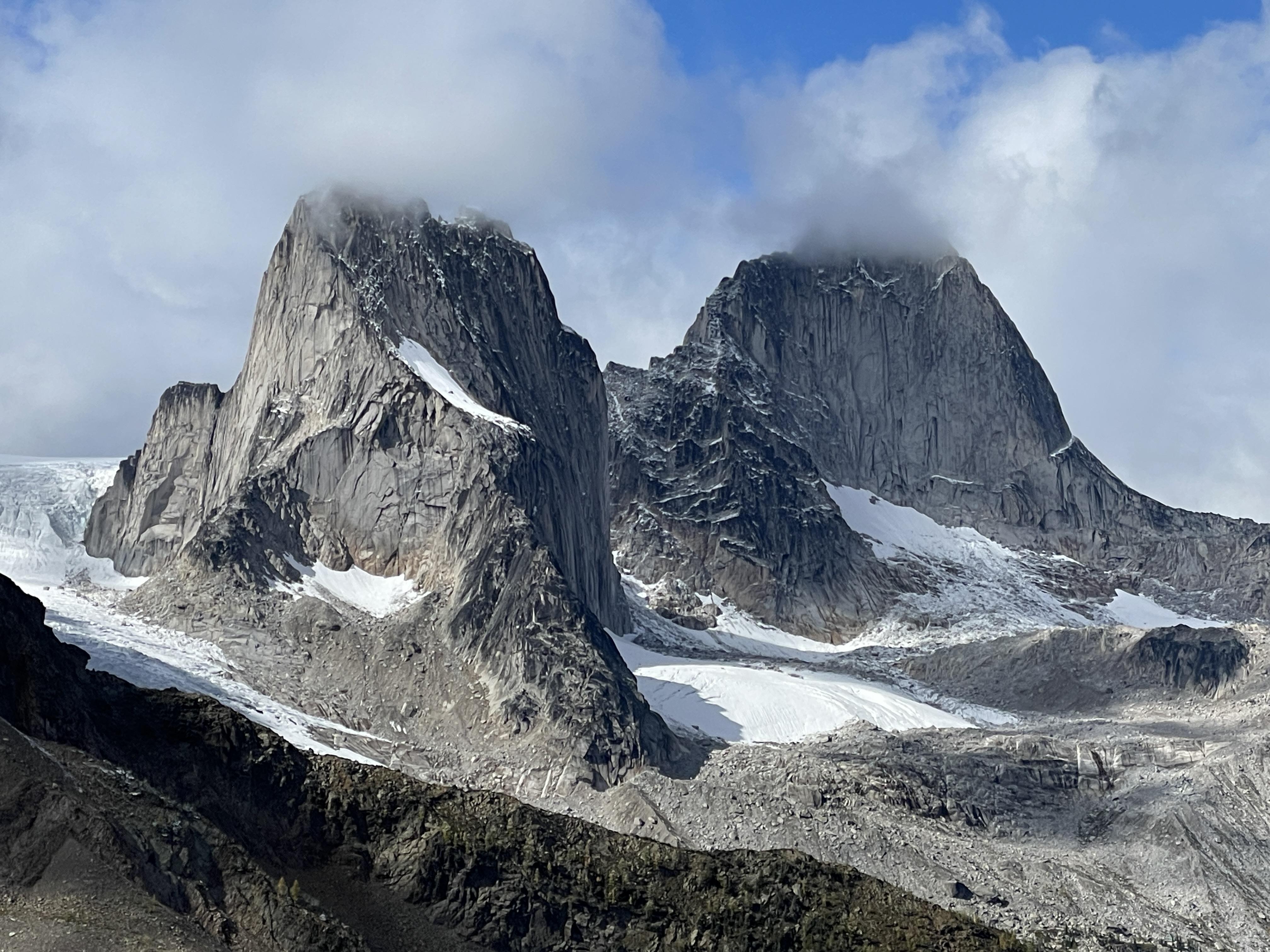 Here are a couple photos of the Bugaboos from September 20th. The new snow was melting quickly, but ice will be forming at night with the cool overnight temps.