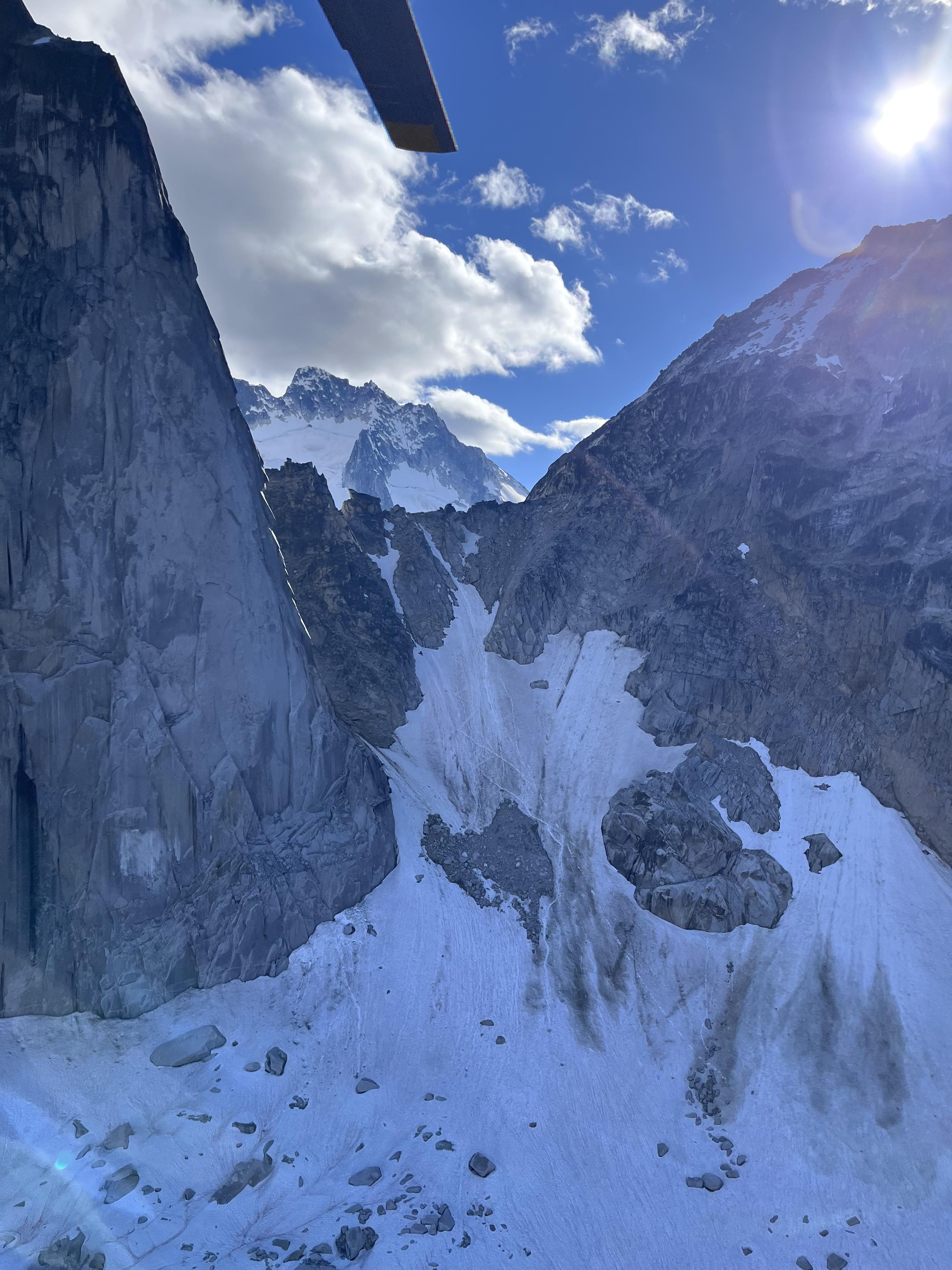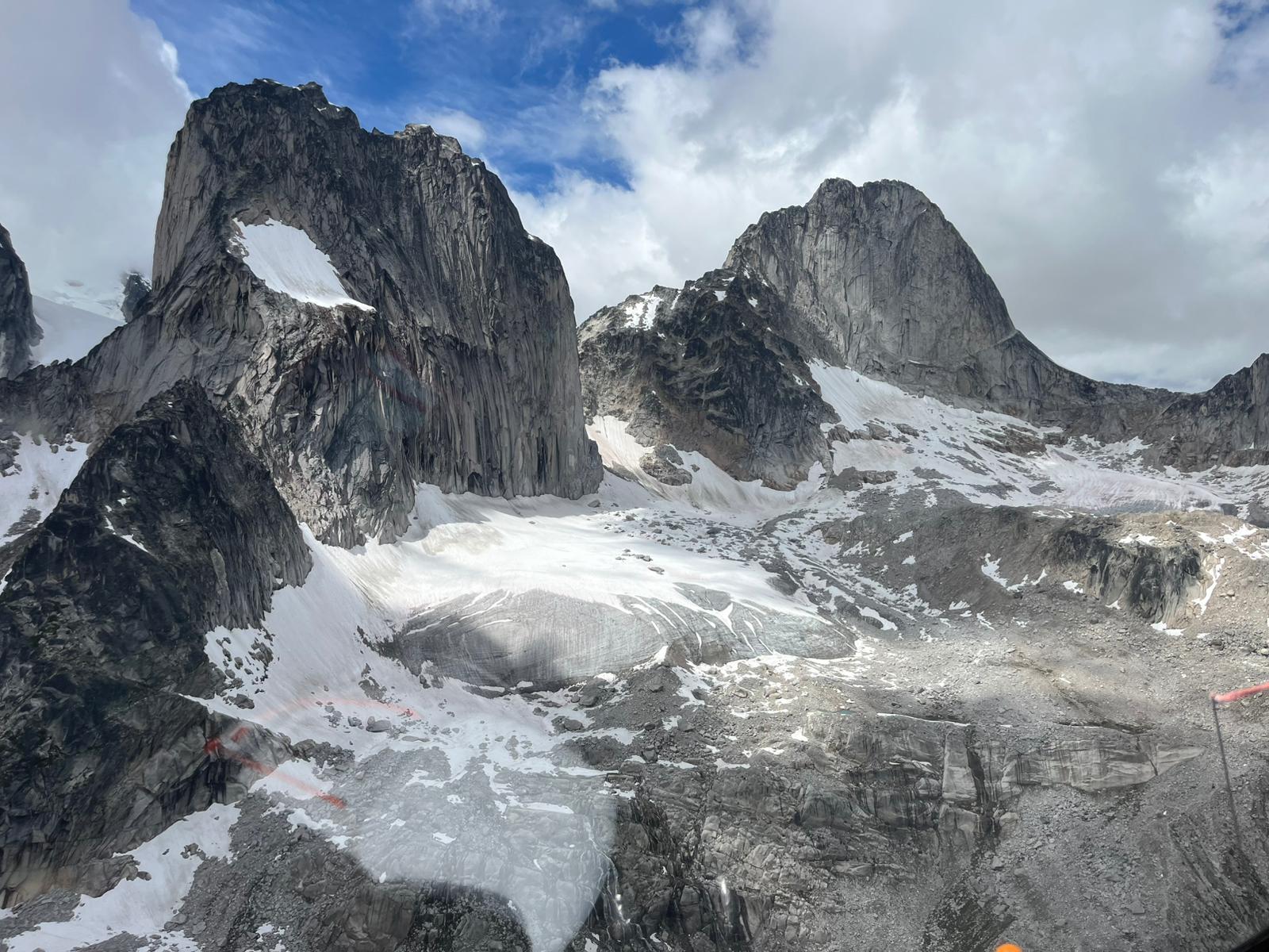 The Bugaboo-Snowpatch col continues to deteriorate. See photos from a rescue flight.