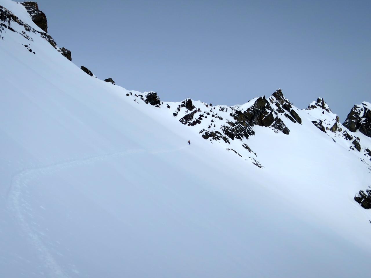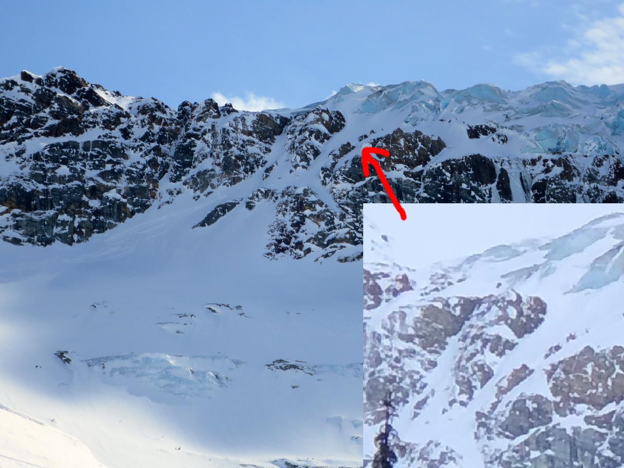 - We used the Deville Rappels, although it looked like it's possible to ski down on the skiers left at the moment (or boot-pack up), possibly with a short section of scrambling (see photo).