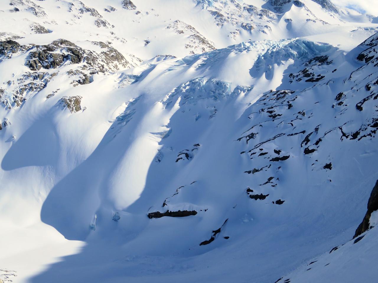 - Accessed the Deville Nevé between Grand Mountain and the Beaver Overlook due to concerns about windslabs on Sugarloaf and timing with incoming weather.