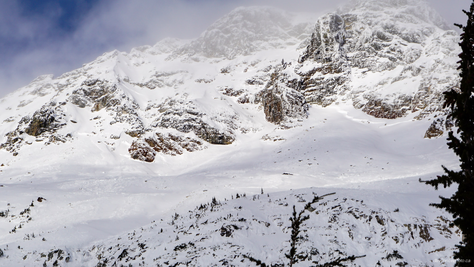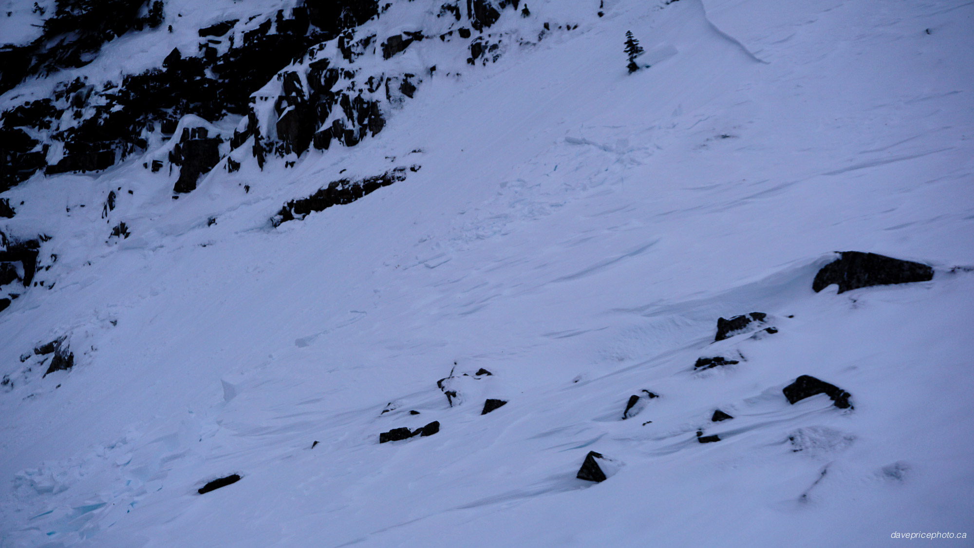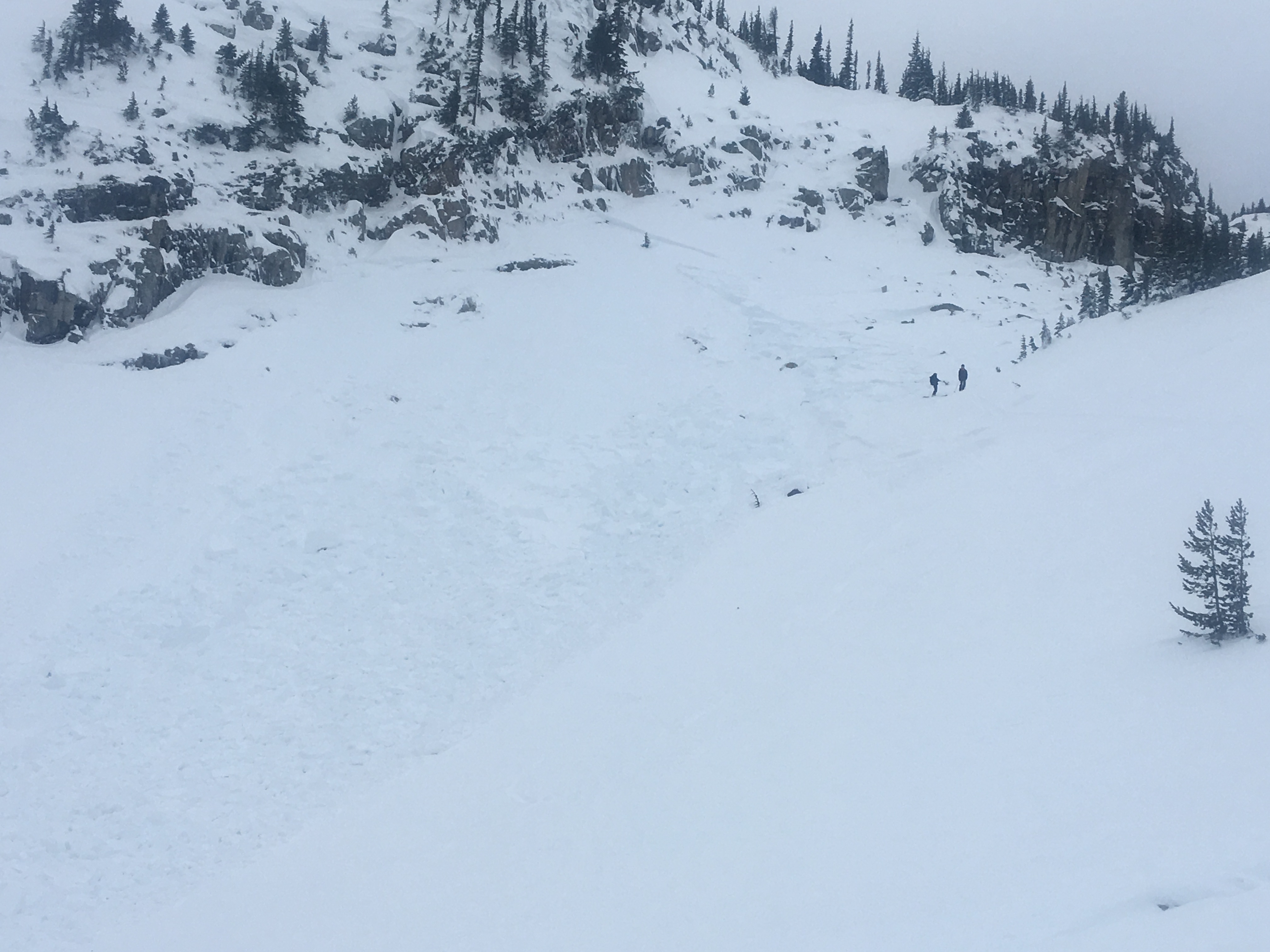 Intense winds with minimal precip on the 14th redistributed snow extensively at alpine and treeline through the day and night. Natural avalanches could be heard and the next morning (15th) temperatures had cooled and the freezing level dropped. With this colder temp following warm storms the surface snow tightened. On the 15th we observed the remnants of a large natural cycle due to the wind loading. These wind-slabs ranged from size 1-3.5 and likely ran on the Dec 8th interface or within the storm snow. See photos.