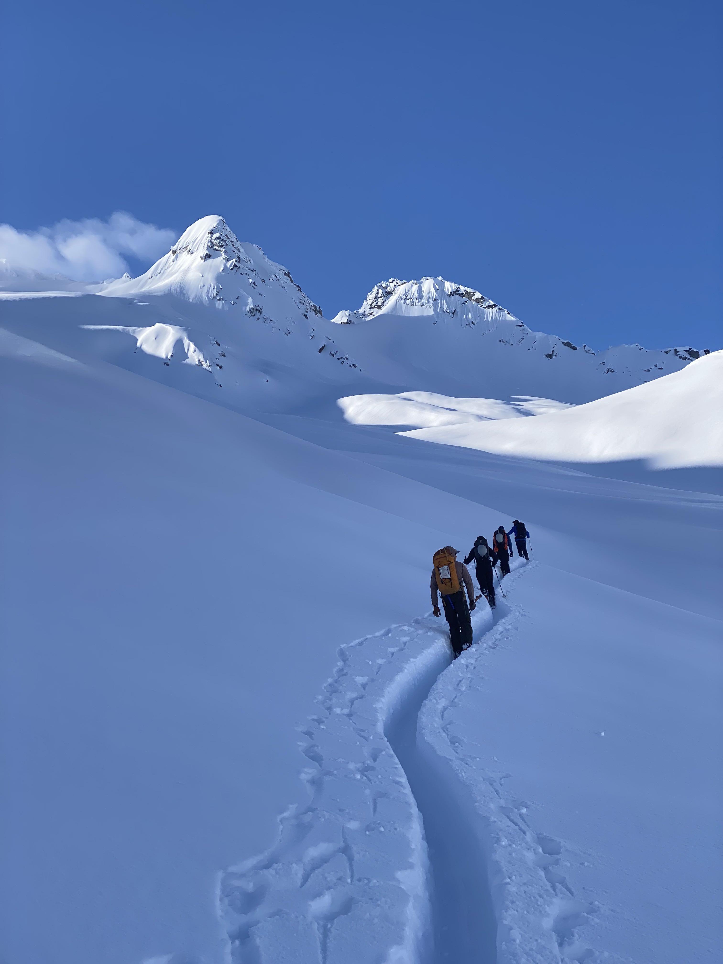 We travelled through a variety of terrain from steep trees to open alpine slopes with some short pitches up to 40 degrees. We avoided areas where wind-slab was present, large overhead slopes, and convex rolls as we let the early week storm settle out.
