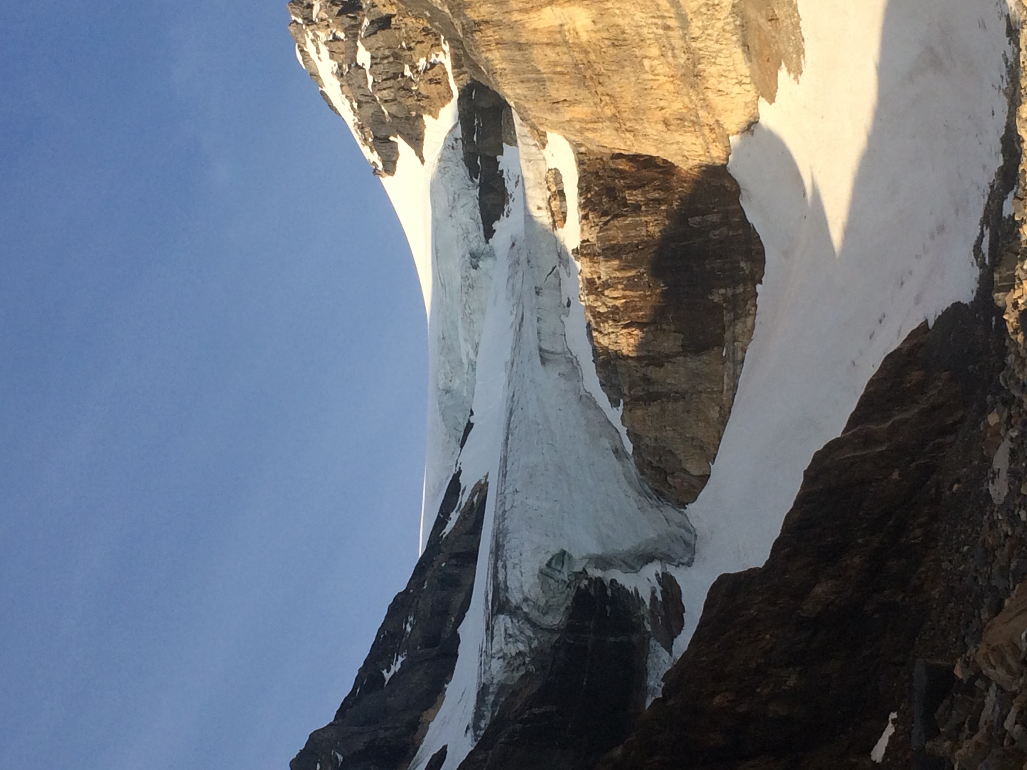 We climbed Mt Aberdeen and Haddo Peak on July 13th. The climbing is pretty straightforward although conditions seem to be changing rapidly. The toe of the glacier is dry and the firn line only starts around 2700m. There are signs of rockfalls at the base of the climb. We were very happy with an early start as we could witness a significant amount of frozen rocks on the toe of the glacier ranging from peddles to microwave-size ones. All of these rocks are ready to slide down as soon as the melt starts. Moreover, we had to carefully choose our line of ascent as the ropes could easily get snagged and cause rocks to fall.