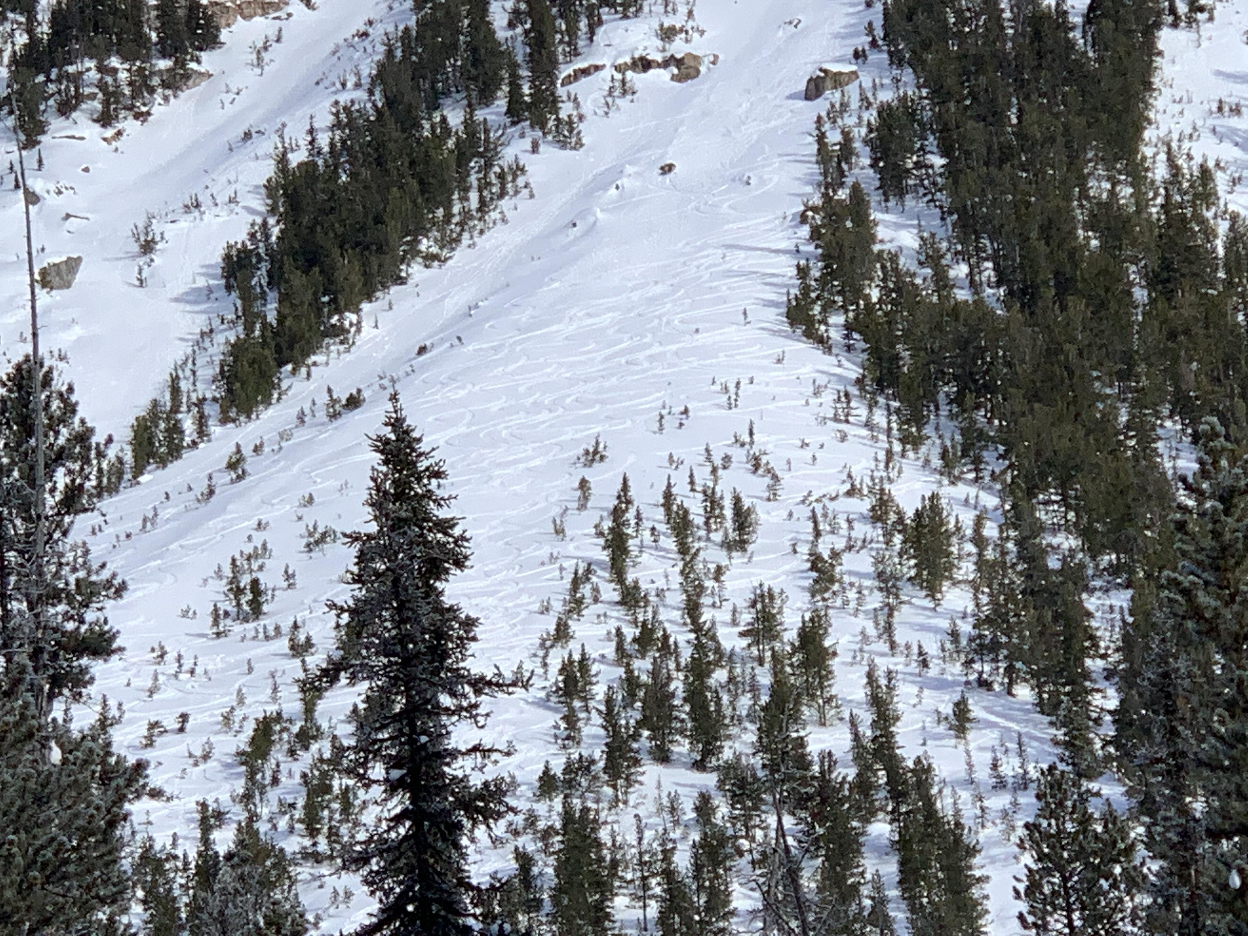 Morning temperature was only minus 12 but moderate to strong westerly gap winds at the Continental Divide parking lot made it feel more like minus 20 until the protection of the trees was reached. Odd valley cloud in the morning dropped 1cm of new snow but this did not extend up to the slide paths. Upper winds were moderate to strong out of the NW but seemed to leave most of the ski lines untouched today. Only felt light downflow during the day. Temperature began to spike midday but some cloud rolled in to keep things cool. Saw minus 7 as a high temp today.