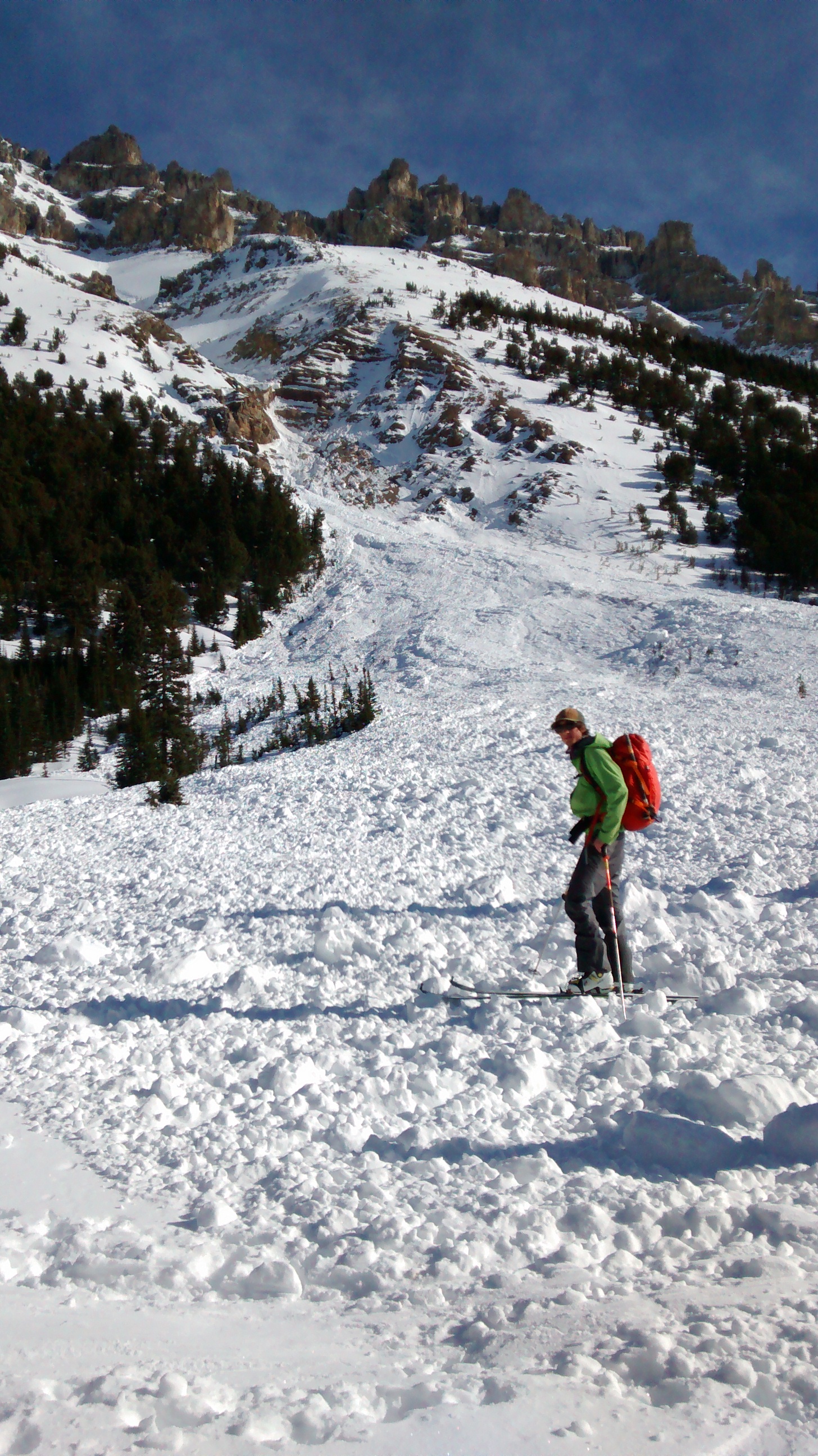 A few solar triggered avalanches up to size 1.5 observed out of steep rocky terrain starting around noon but the snow stayed quite cool all day. Recent debris from Dolomite Peak hit the uptrack on the way to Helen Lake, and there were many recent slides up to size 3 on the deep persistent layers along Helen Ridge and the backside of Cirque Peak. Lots of whumphing while travelling in thin snow pack areas. We minimized overhead hazard and avoided steep terrain with the exception of the coulior descent on the North side of Cirque Peak.