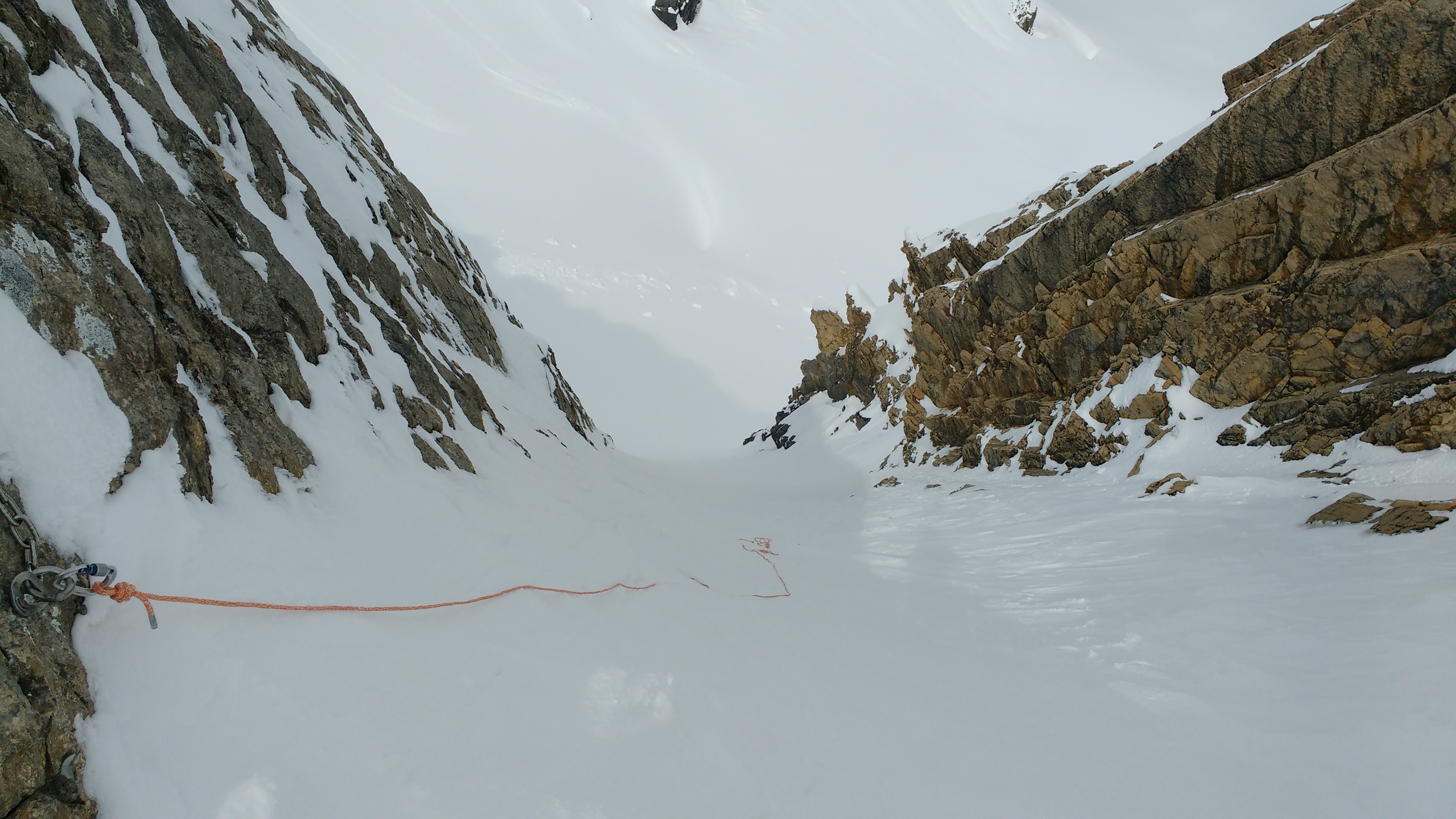 A solid freeze allowed for easy travel up the trail toward Helen Lake and up the south ridge of Cirque Peak. Ski crampons were useful at times on the steeper sections of the south ridge. The North Couloir is filled in well. We were able to side slip easily down the top 30m with the help of a rope, before skiing the lower section onto the glacier. One sagging crevasse on the far skiers left to keep in mind. Dry snow on north aspects down to 2400m, and a supportive crust with good corn on south aspects down to treeline at noon. Below treeline the crust was beginning to break down with daytime heating but skiing out the creek to the north of Cirque Peak was straight forward and quick.