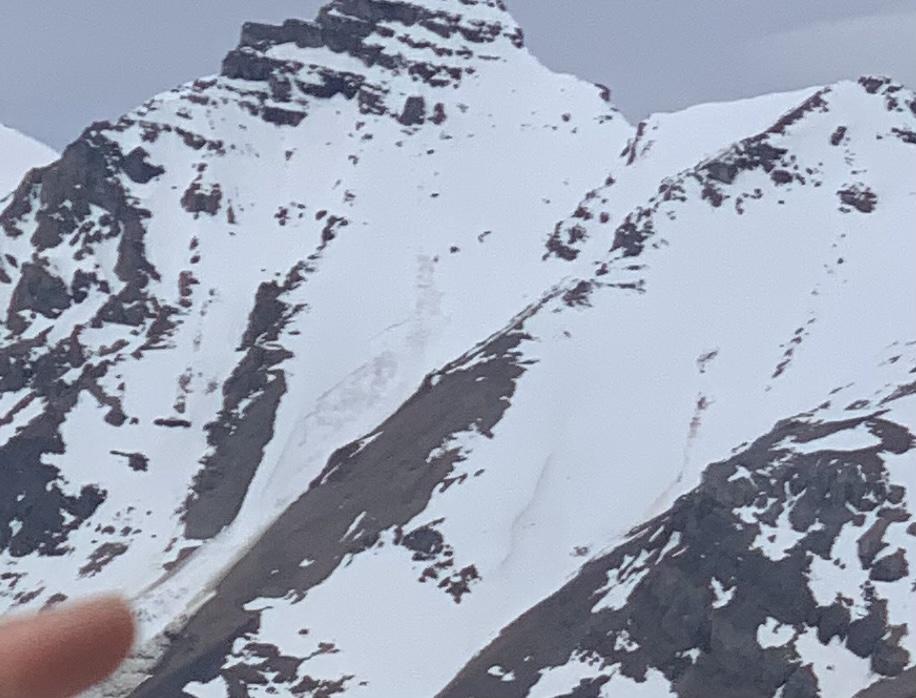 Wet loose activity on solar aspects was noted in steep rocky terrain starting around 11am and we directly observed 2 wet slab avalanches today, the most notable one being a size 3 deep persistent failure on the SE slopes of the NE ridge of Snowdome (see photo). A good reminder that there are some very real avalanche concerns lingering and to choose your objectives carefully.