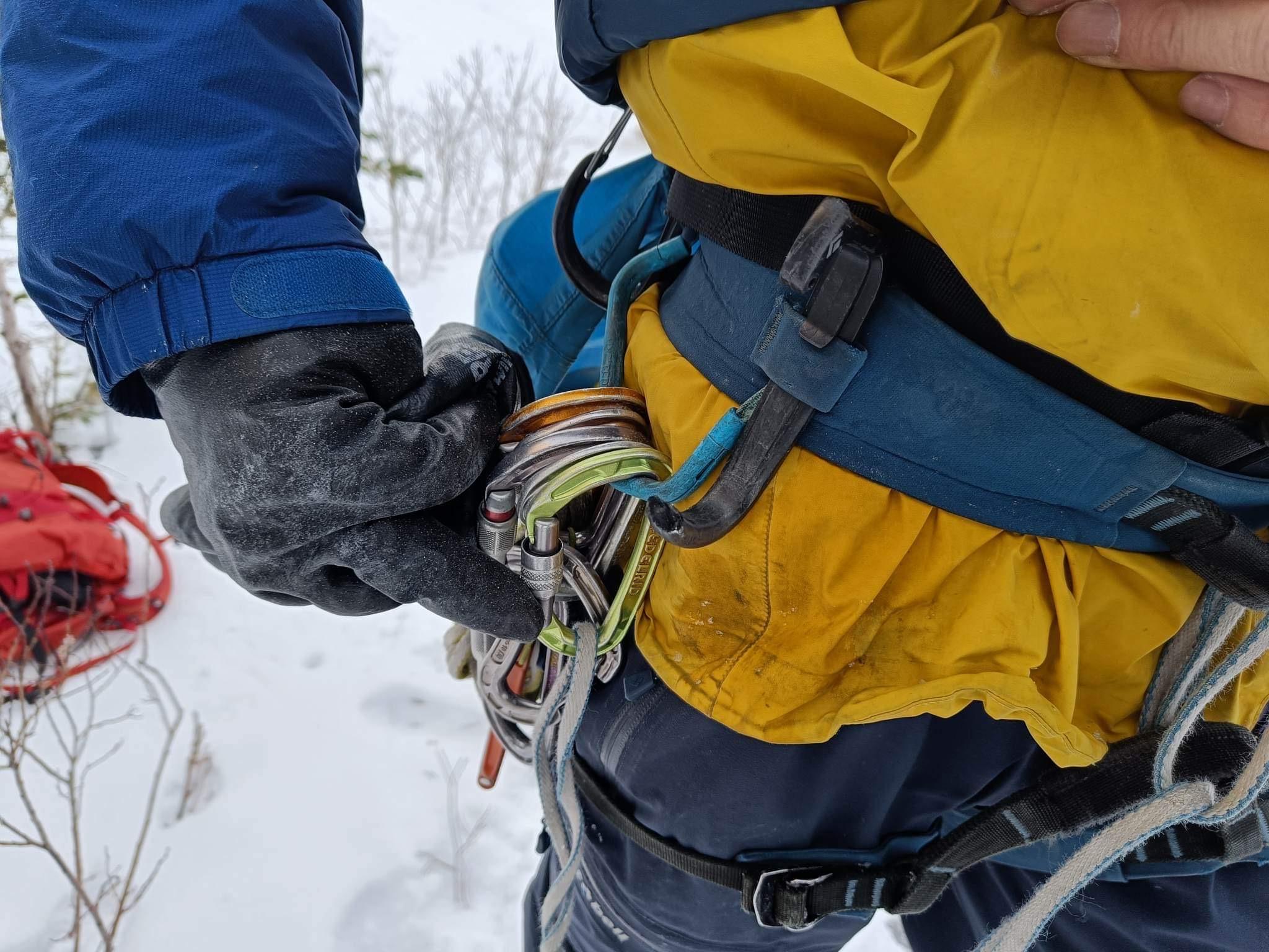 When climbing with not much snow overhead with gusting wind (maybe wildlife), I should think of more different overhead hazards even for winter climbing (i.e. rock fall, dead tree fall...)