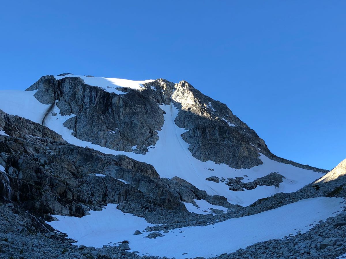 1. Tszil’s N face has active rockfall hazard, not sliding out of the gully but actually over the nose of rock at the top of coulior. You can stay left in the coulior and exit at the L trending gully midway up to stay protected and keep it safe.
