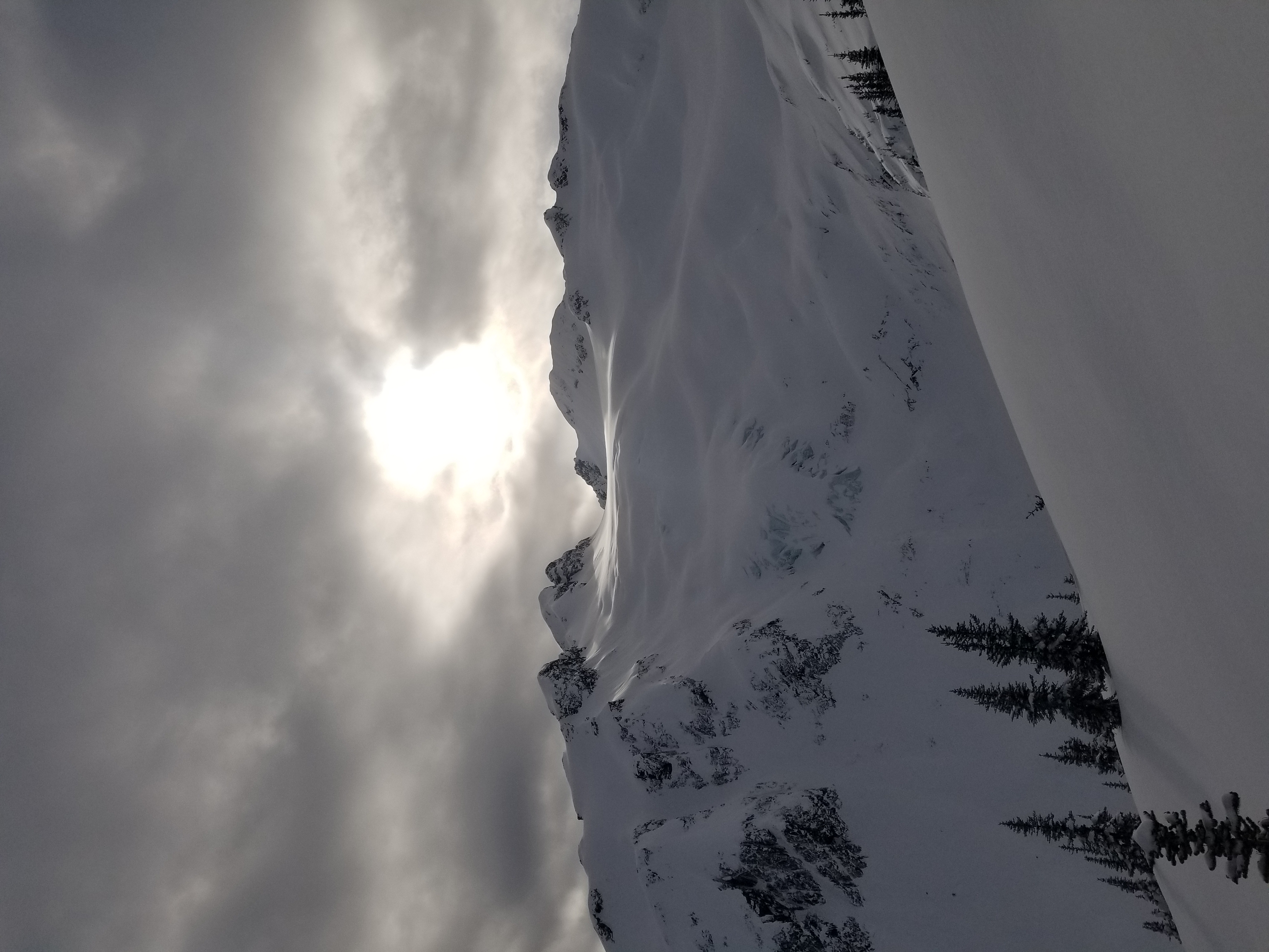 - Strong winds from variable directions creating ridgetop windslabs.