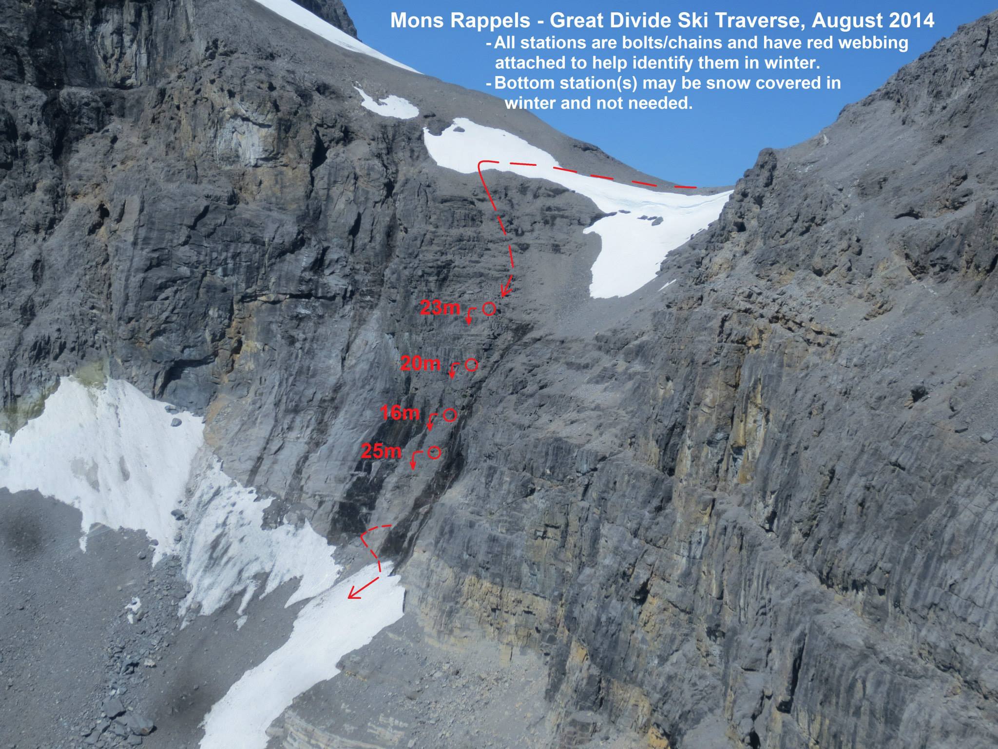 A team of Parks Canada visitor safety specialists responded to an incident involving a skier who was struck by a cornice as they were descending the West Glacier of the Mons Icefield on May 4th, 2016. The skiier was part of a group of seven that were on the southern half of the Great Divide Ski Traverse in the northwest portion of Banff National Park.
