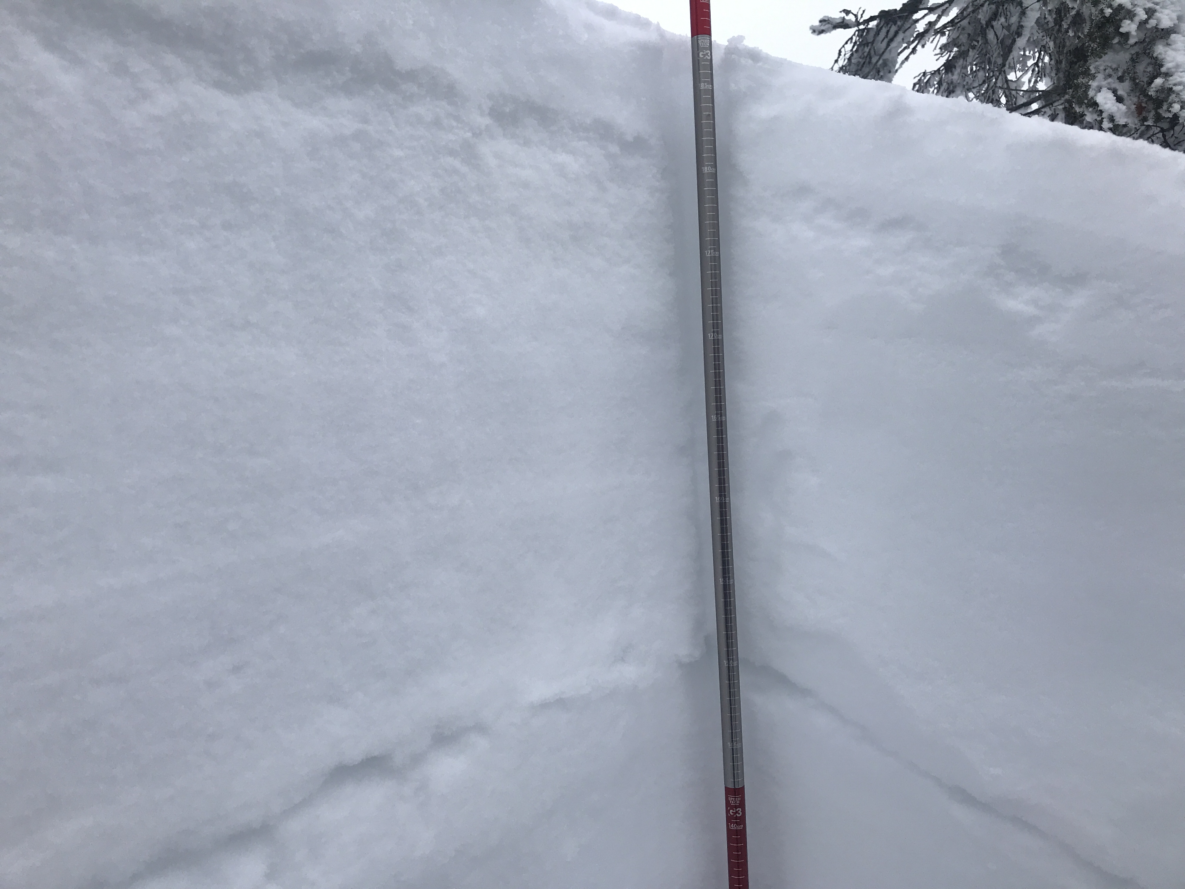 On Jan 5th we traveled from the hut up toward Race Car Mnt, with a max elevation of 2080m. Test pits at 1970m, NE aspect, showed consistent moderate to hard resistant planar results immediately below the Christmas rain crust down 40cm (again) with very spotty, rounded surface hoar found in one pit. Extended column tests were inconsistent with propagation across the entire column in the moderate tap range to no result. On the way back to Tunnel Creek hut, we observed numerous natural windslab avalanches on the N-NE side of Race Car Mnt with crowns up to 1m deep. In some areas the wind had stripped the surface back to the Jan 3rd rain crust around 1700m, but overall skiing was good and the road exit was carve-able.