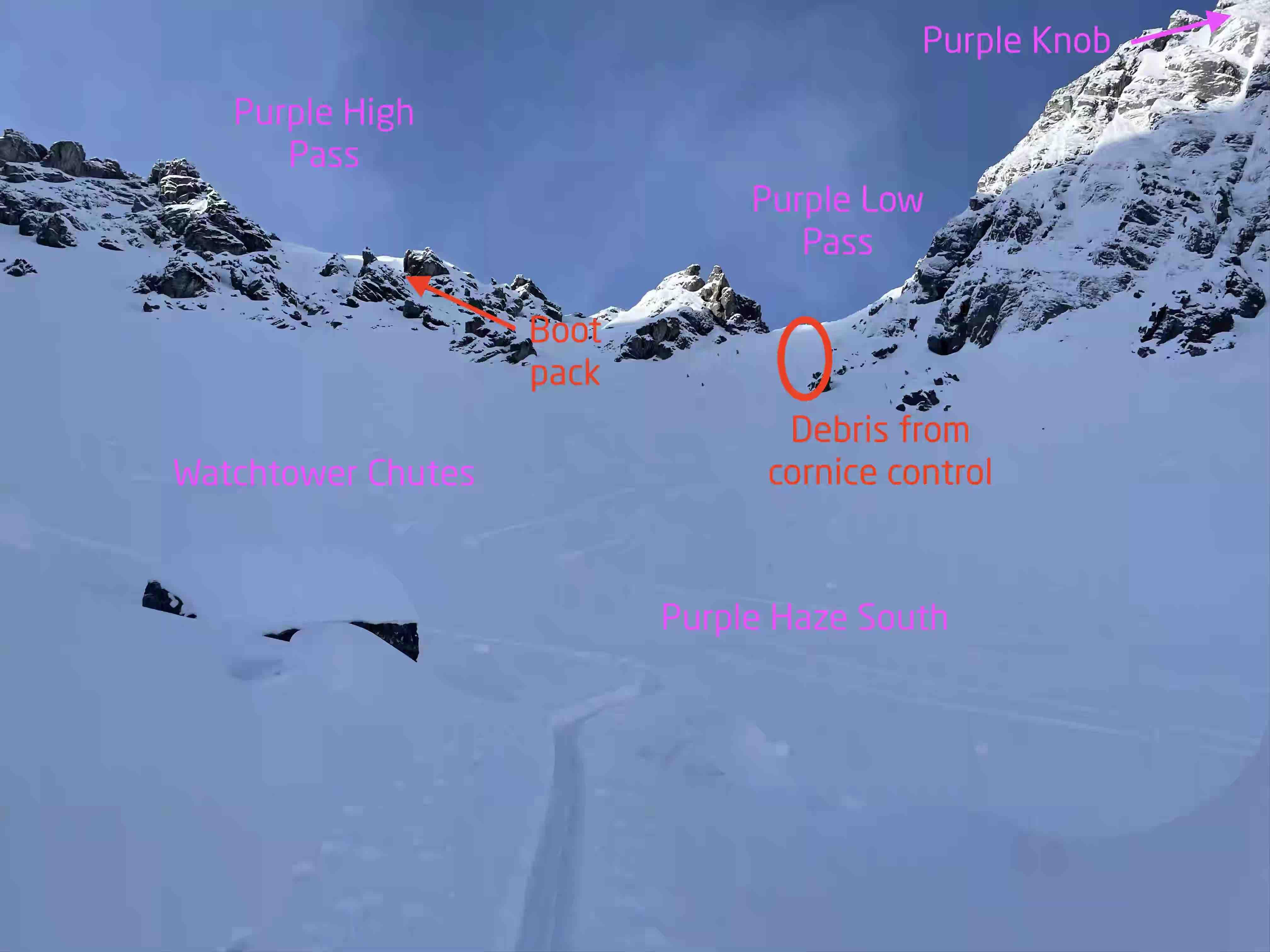 As I had skied from Purple Low Pass north twice already, I decided explore higher. I set the skin and boot pack up to Purple High Pass. In the flanks of the lower gully/couloir, there was up to 100cm of storm snow overlaying the hard slab from last week's wind event. There was minimal cracking in the corners, and only in the upper 15cms. The terrain then steepens significantly especially early season before it is filled in. Here the snowpack was between 0-100cm. Basal facets were easily observed to size 3mm (I did anticipate larger facets which I did not find even in the very shallow areas). The hard wind slab appears to be breaking down with the cold temps and the overall snowpack was unreactive. What I expected to be a facet grovel actually packed and climbed quite easily and we were able to gain Purple High Pass. At ridge top, winds were moderate with light snow transport. We skied north down towards the Purple Hero drainage. This is likely the first time this slope has been skied this year. In the upper section, there are still rocks (this zone is notorious for being stripped by the winds). There was ~20cm of storm snow over hard wind press. Mid slope was back to boot top powder. The lower gully run also had boot top powder. The lower skin track was in, likely from parties Wednesday or Thursday, which made the cold snow walk back a bit easier. It was -30c at the vehicle at 0830h and -15c at 1430h. Cold wax was benefical.