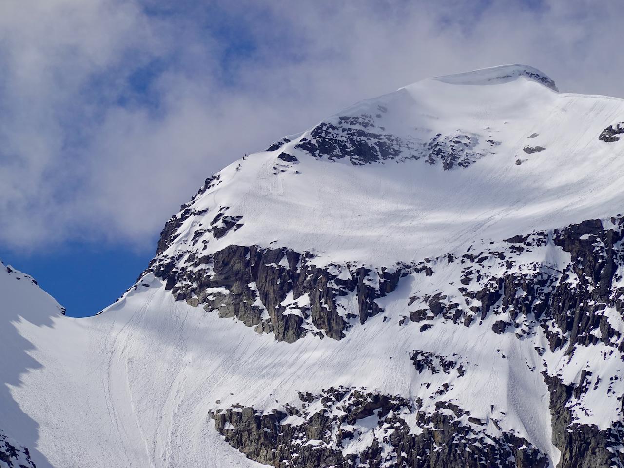 In first photo (closeup), you can see a party of 5 heading up the East Ridge that we saw as we were skiing down. Photo 2 is the NE Face of Mt Begbie and Photo 3 is starting up the NW Face.