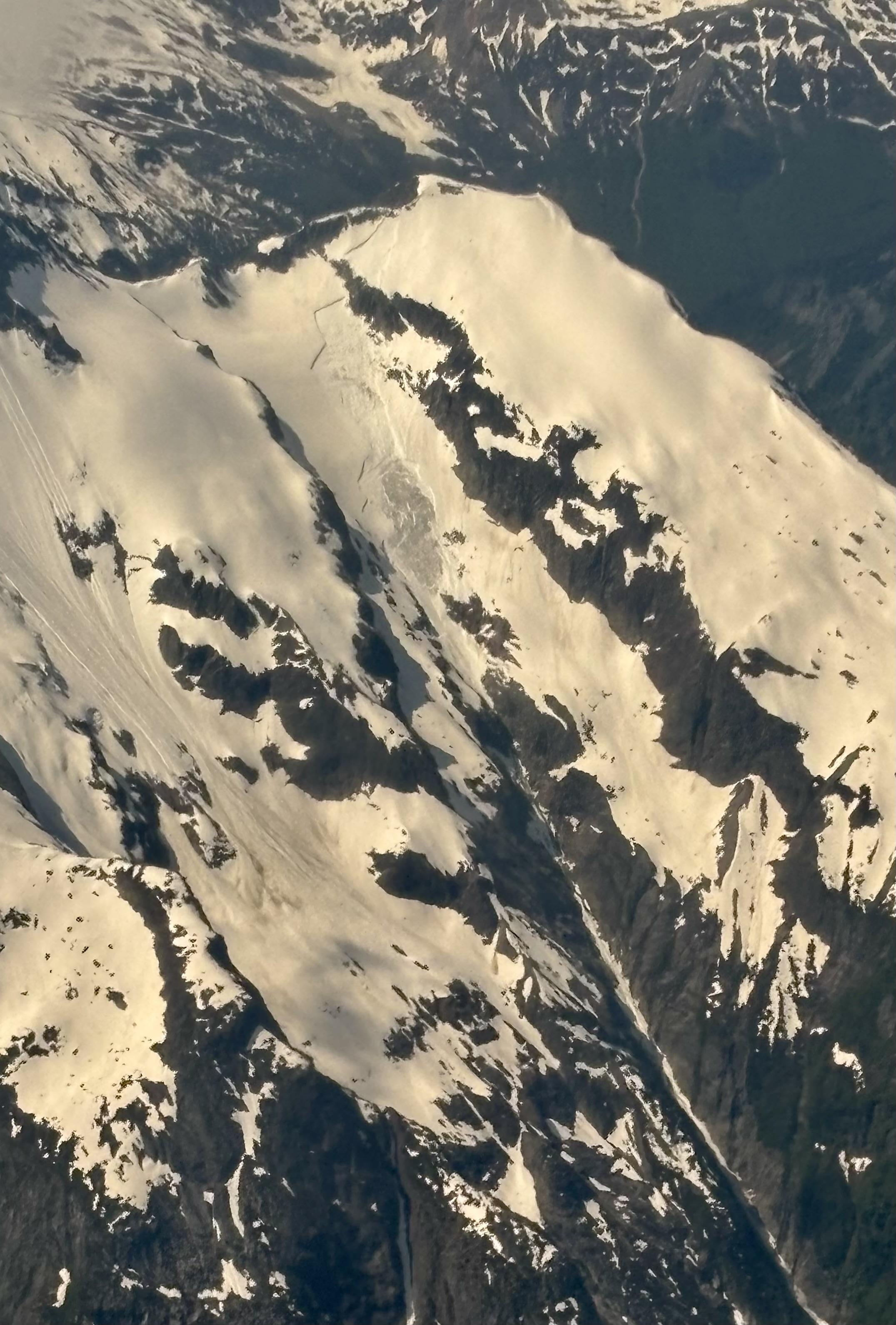 First flight over the Coast Range between Waddington and Bella Coola this morning, noted numerous deep slab avalanches to size 3. These were primarily E-NE aspects but possibly elsewhere as well. Age appeared all about the same, within the last week likely triggered by last weekend’s heat. Not many people in these areas these days but still interesting to reflect on winter’s layers and may affect decision making during big warmups in the near future. Photos for examples. Also a photo of Waddington’s Angel Glacier.