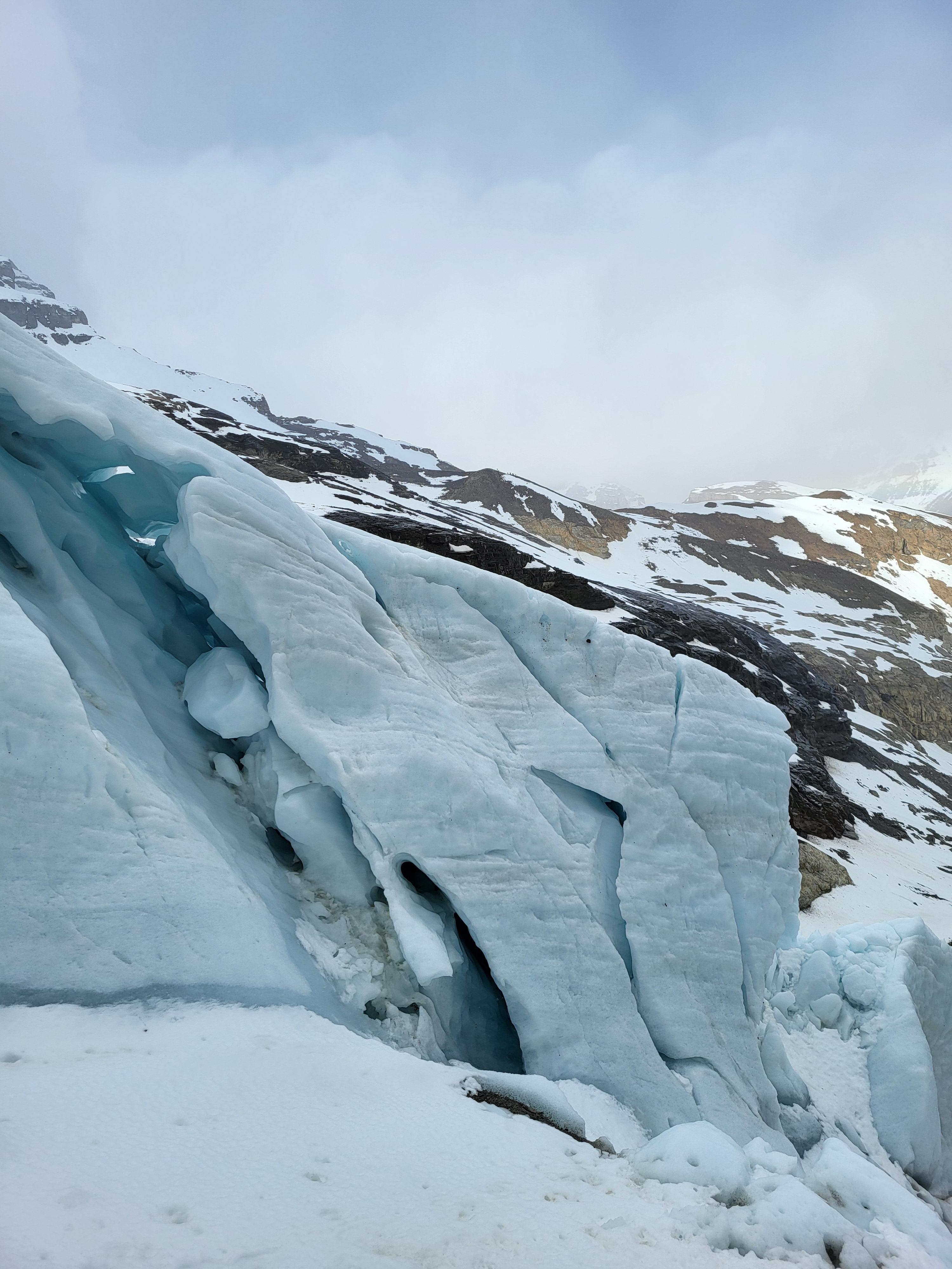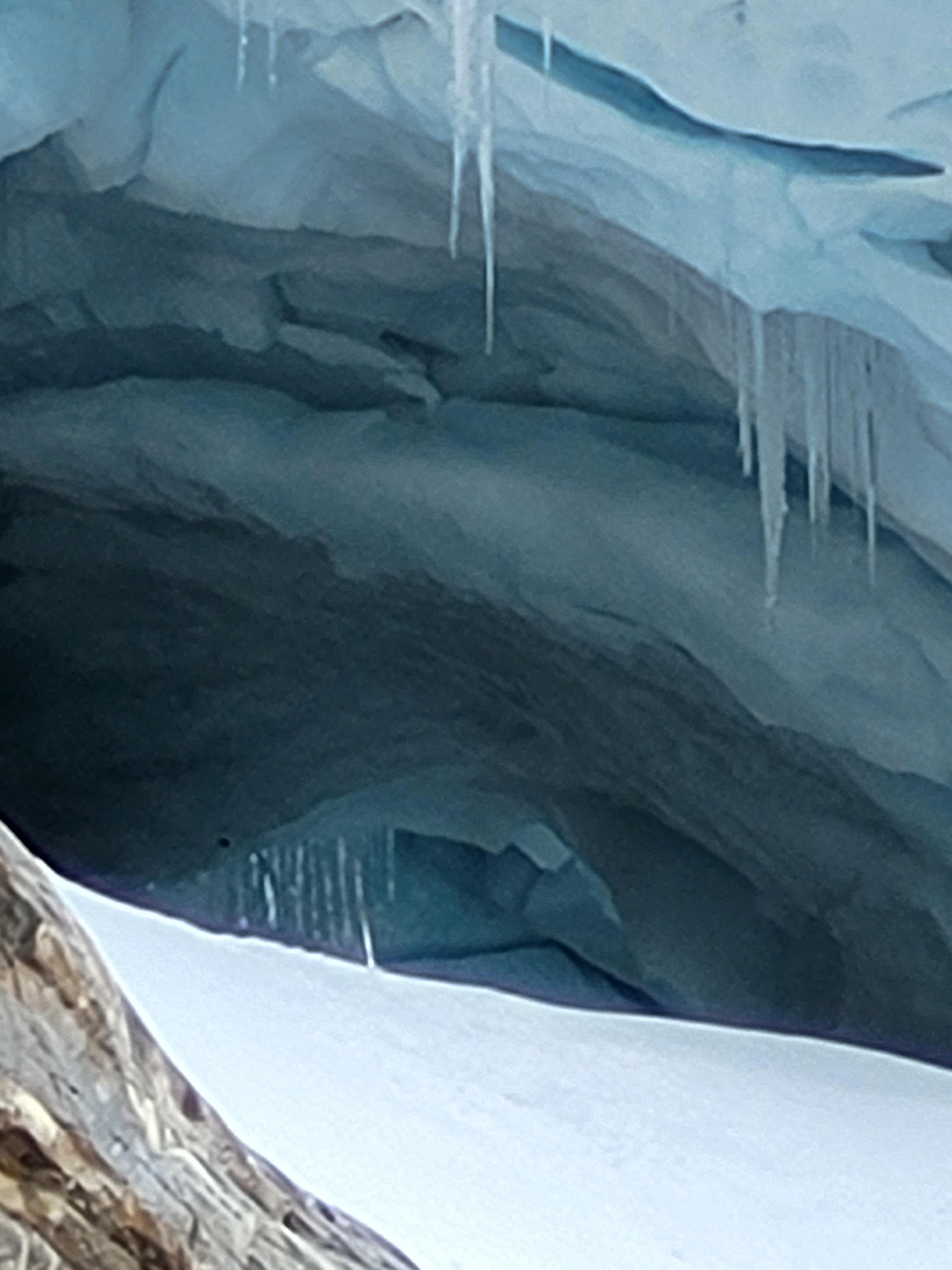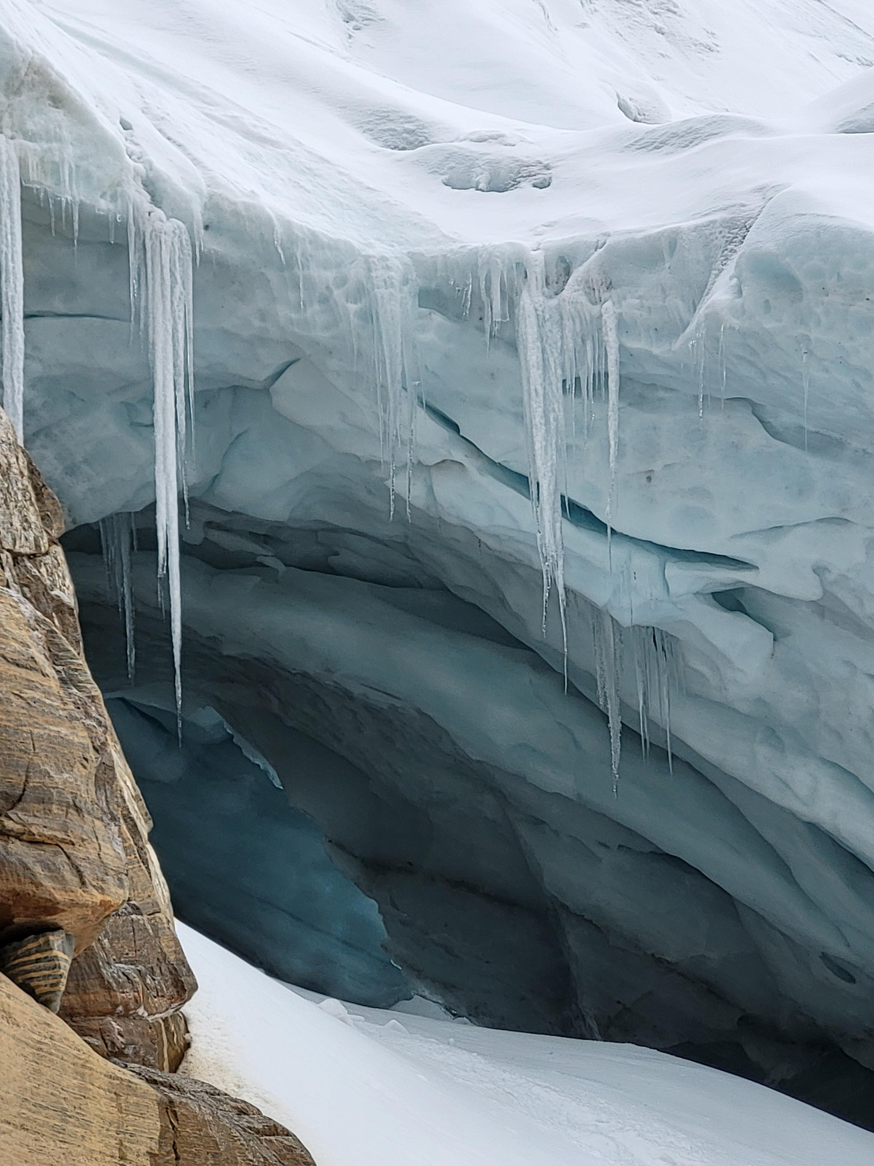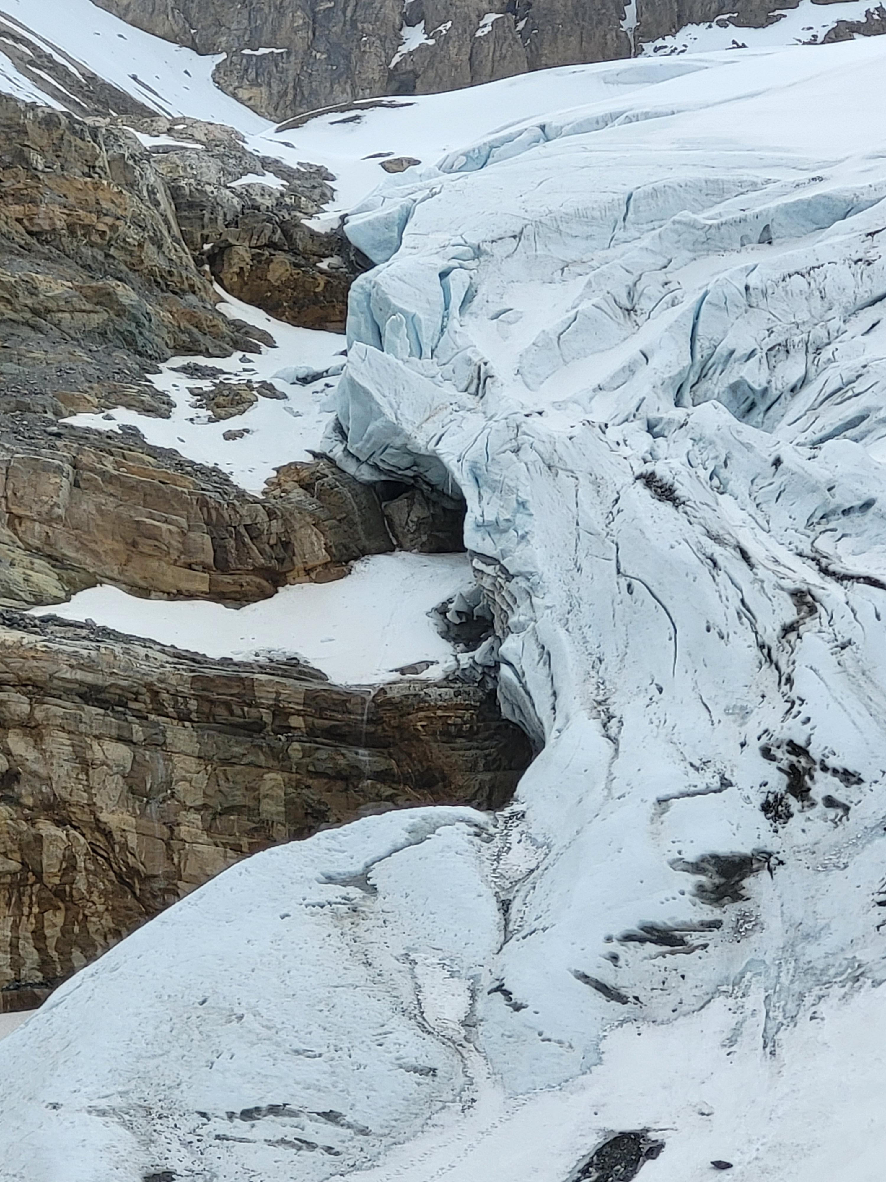 Last but not least, a new crevasse that wasn't there last year splits across the top of the whole ice tongue, from side to side. Maybe a schrund is being born.
