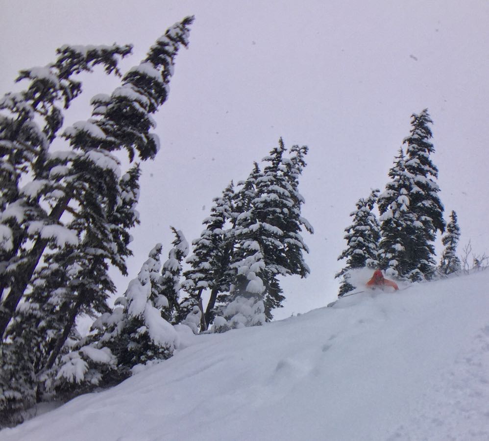 From the top of the t-bar, snow heights ranged from 80-130cm (pending aspect and elevation). We did a few north facing laps near "The Dome" and found excellent skiing.