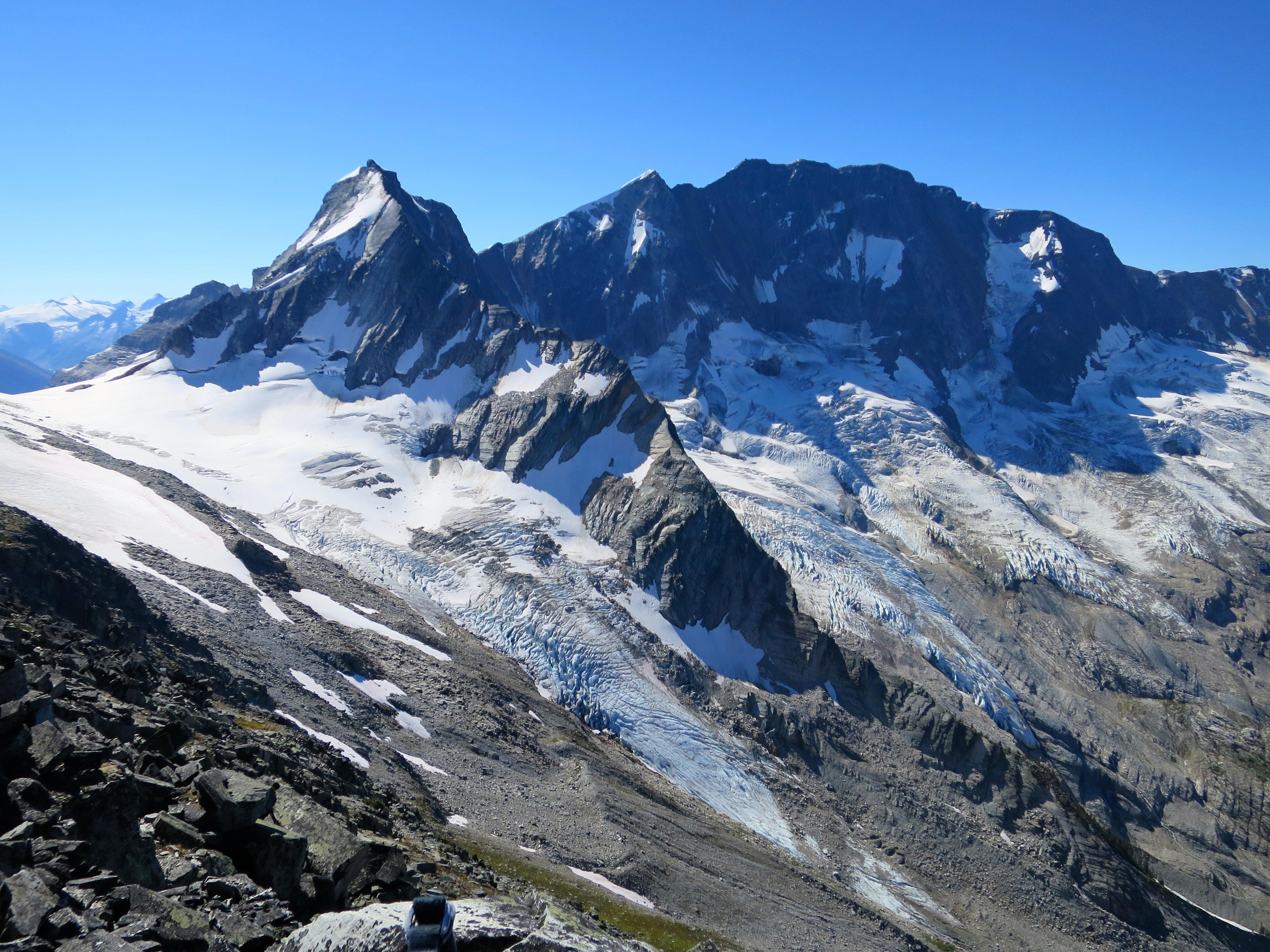 Today felt like my warmest day alpine climbing of the summer. Alan Jones and I climbed the North East Buttress of The Rampart, then traversed back to the car over Afton and Abbot. The route was bone dry and there was no lingering snow visible anywhere from the last storm up high including Sir Donald or the North Face of Mt Bonney.