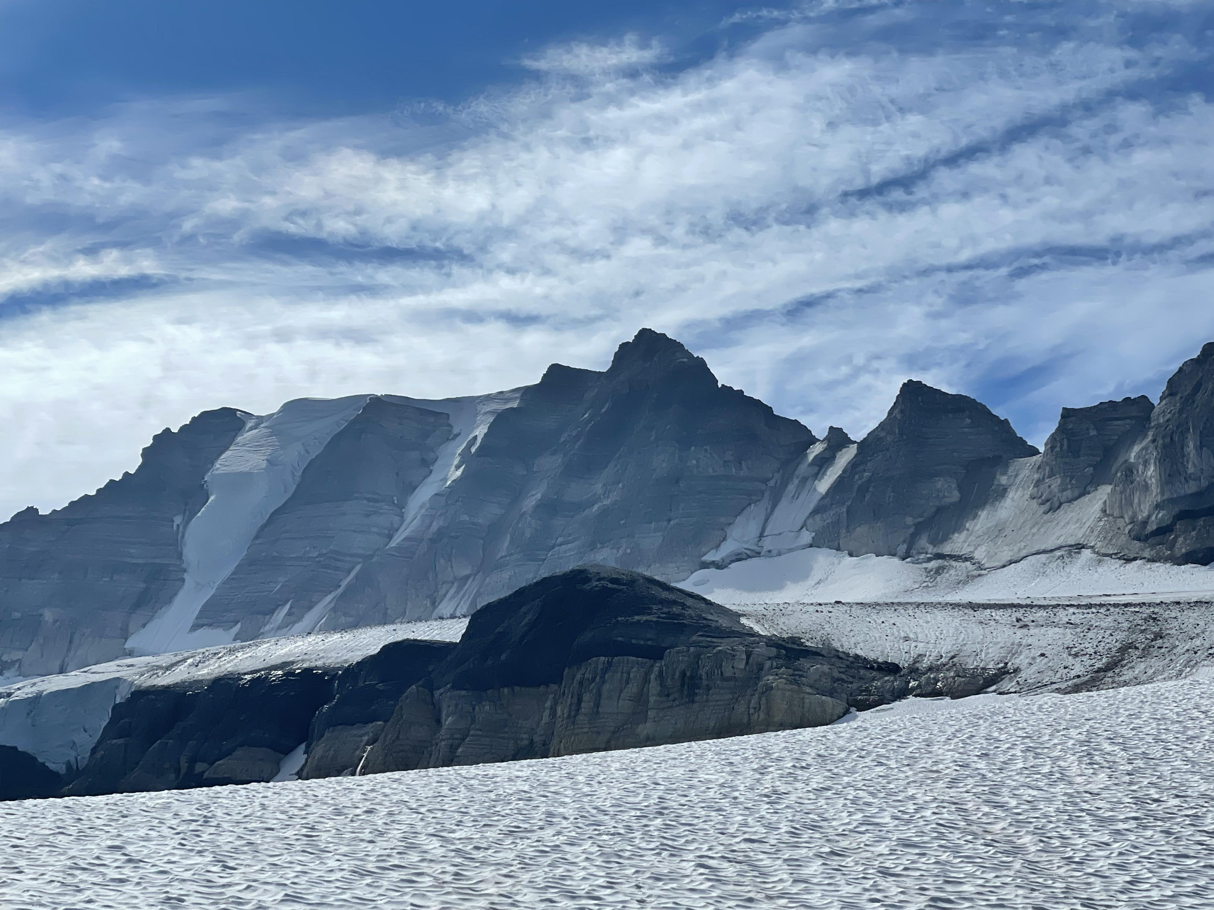 We just returned from an overnight trip to the Colgan Hut. We planned to climb Mt Fay W Ridge but the snow faces used to gain the ridge are showing a lot of gravel and rock embedded ice. The Chouinard and Centre Ice Bulge routes look whiter although we couldn’t see them in their entirety. The Roth/Kallen doesn’t seem to exist anymore. The Mt Little face is also dirty gravel and rock. Bergschrunds are huge. We elected to climb Bowlen (dry) and Perren, which still has good snow to the ridge. Mt Allen has snow patches above the traverse that are spitting rocks.