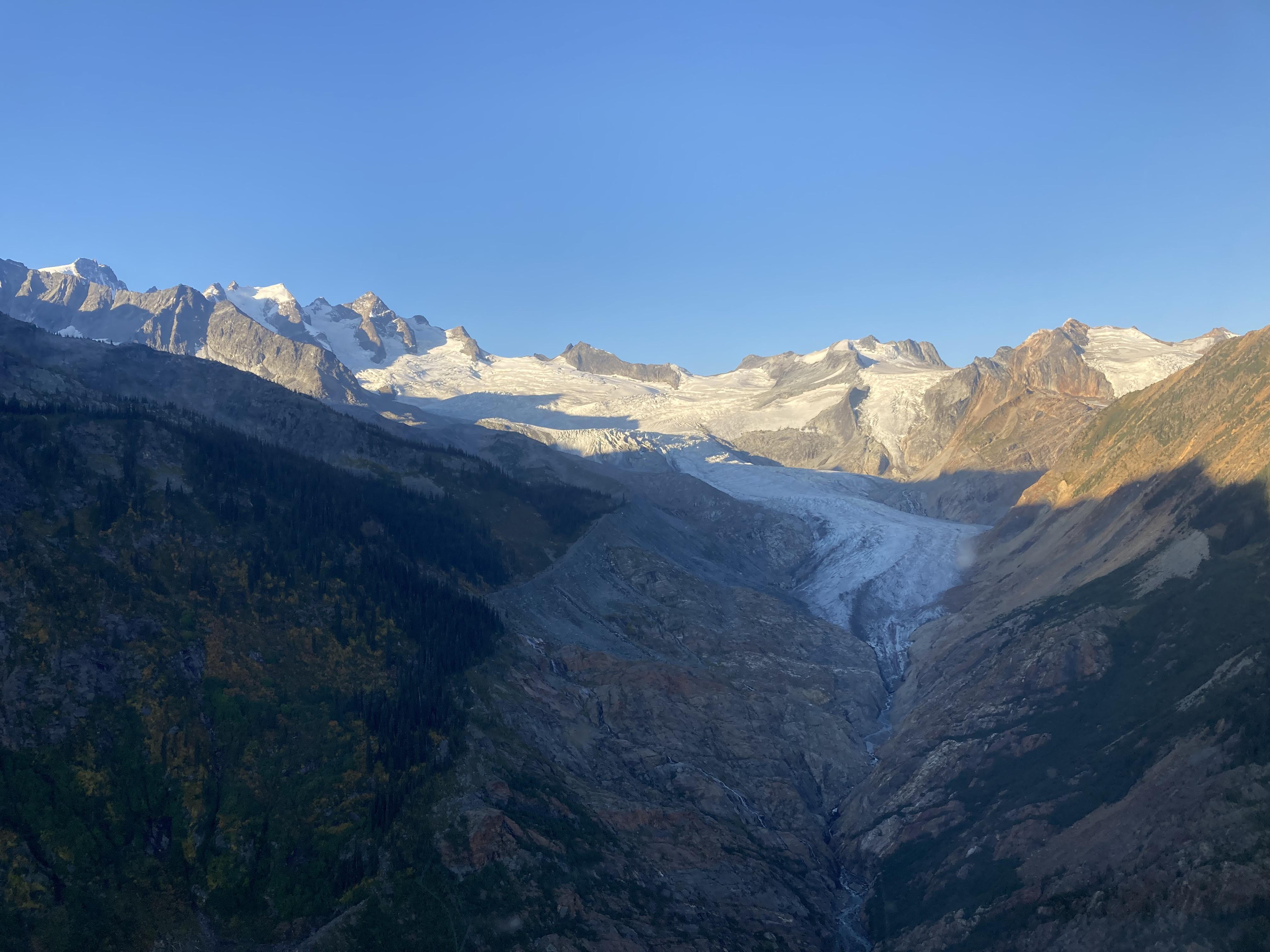 Conditions were dry, as is being reported everywhere, with glacial recession making the access to the start of some rock routes more challenging. The easy egress for many climbs, via friendship col and pioneer pass, looked nearly impassable at this time, and we stuck to lower elevation objectives.