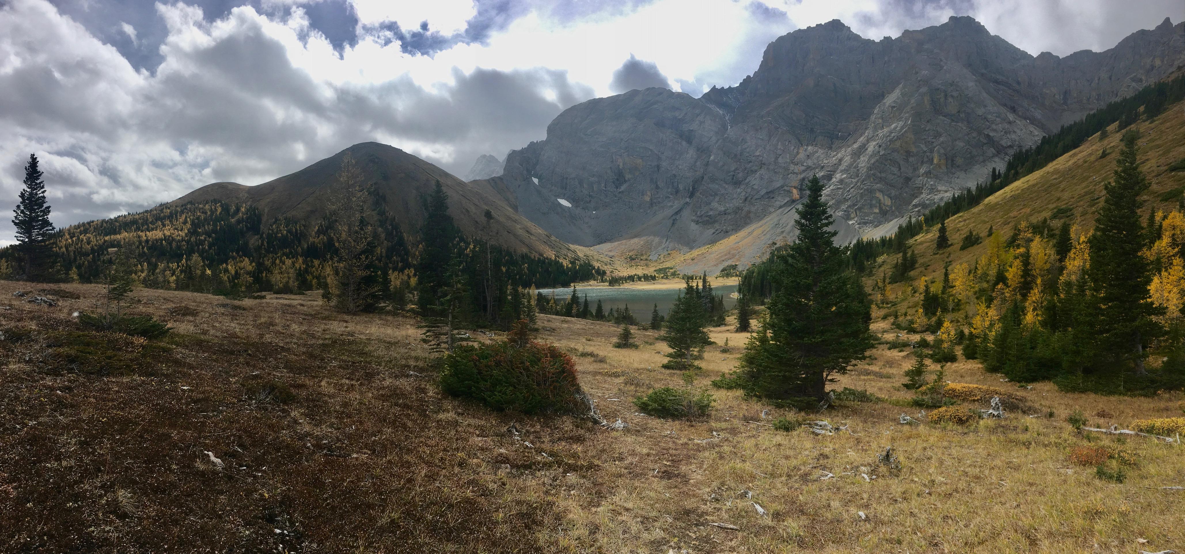 Guided a group into Rae Lake today. As forecasted, we experienced a mixed bag of weather. Cold temps (approx 8 degrees), gusty winds and a few snow squalls that came through (nothing making it to the ground), and dry trails. The Larches as always are spectacular within the Elbow Valley. All in all, a great fall day in Kananaskis.