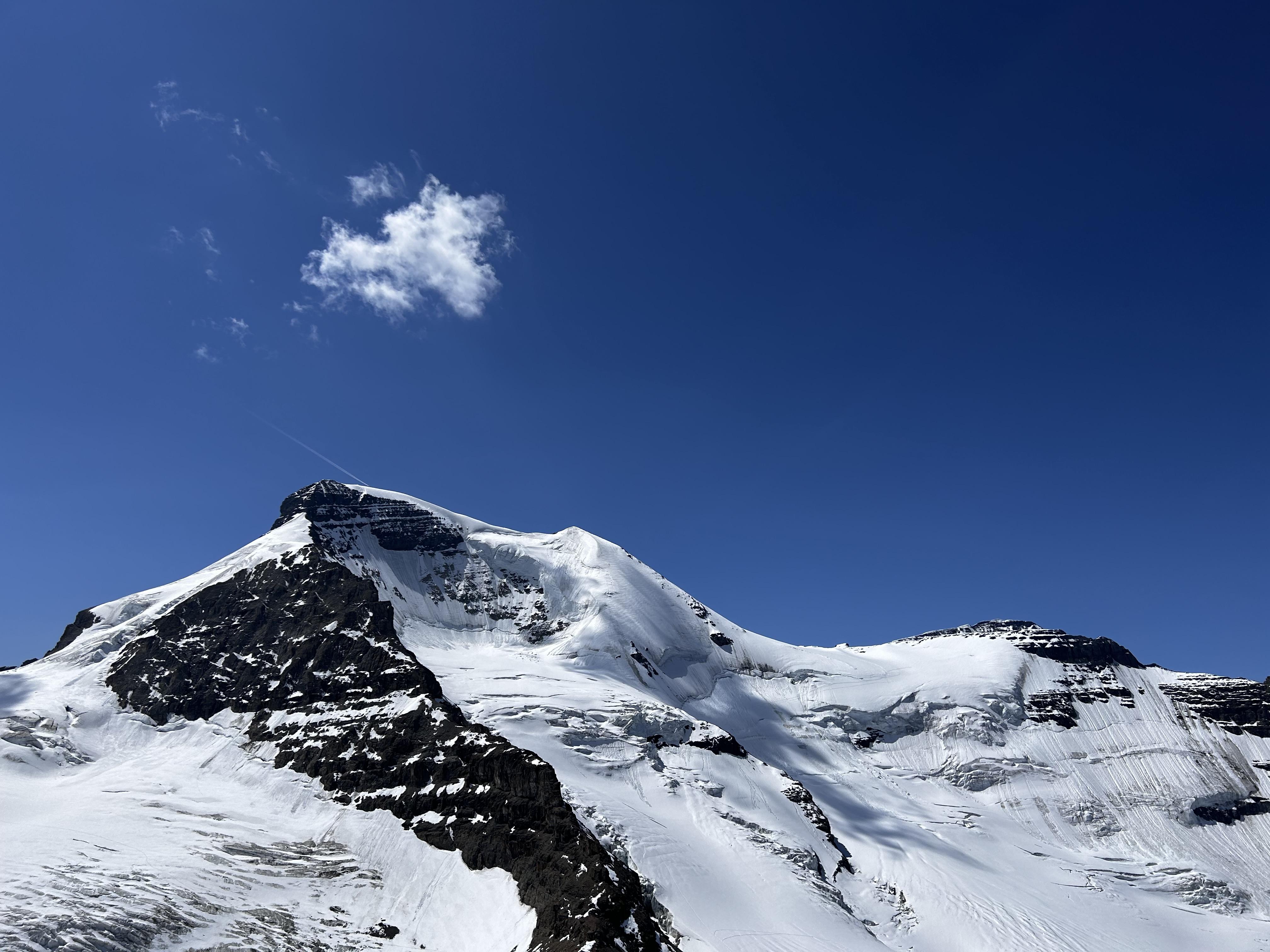 Last weeks storm snow, which probably totalled close to 80 cm, has disappeared below 2700 m. The glacier tongues of Athabasca’s north glacier are ice again, after having good steps in snow there just a few days ago. The traverse to Boundary Peak is mostly 10 cm of snow on ice, except for the crevassed section which has just enough snow to obscure the crevasses but not enough to bridge them.