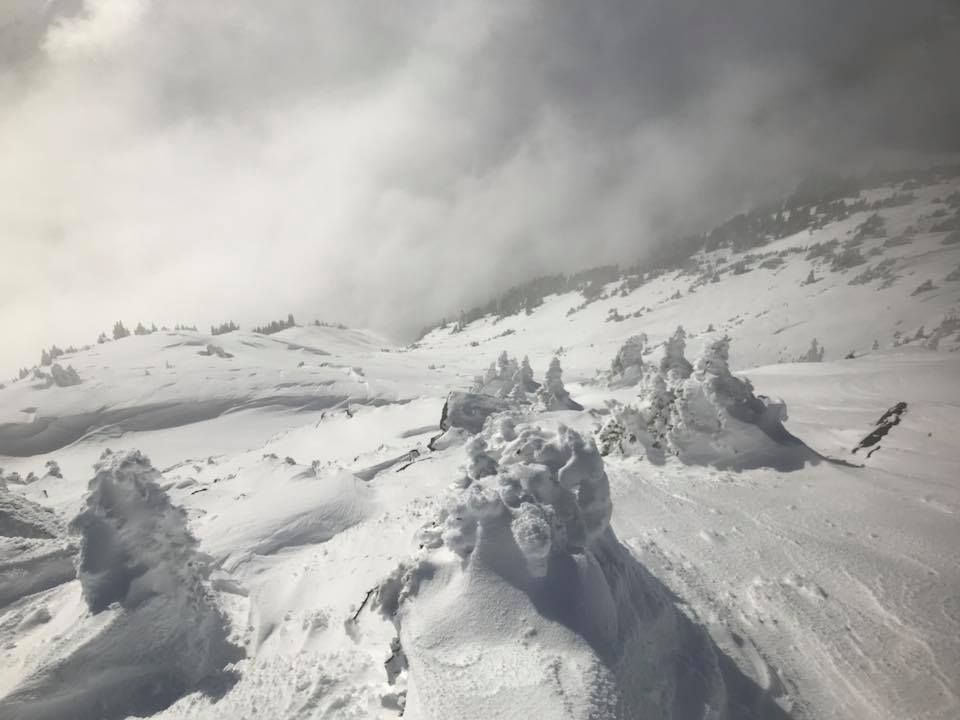 Spent the day in the Duffy near the Exidoor/Honey Bronzed region on the Baldwin map. HS ranged from 120cms at lower elevations to 225cms in a wind loaded alpine bowl at 2200m. Overall coverage is beyond excellent for this time of year. Clouds rose from the valley bottom to at least 2400m creating a fair bit of greenhouse effect on the snow with pin balling and tree bombs galore. Ski quality remained good in locations where the surface was not hammered by these aforementioned events. A thin zipper crust was present at most elevations but did not reduce ski quality. Talus alpine locations are still a bit hit and miss for full coverage but very skiable. Snow pits showed a very homogeneous snowpack down 135cms to the old surface/crust. One result was CTH 23 BRK down 45 on an old wind interface. Minimal avalanche activity from the recent storms, at least nothing of any significant note.