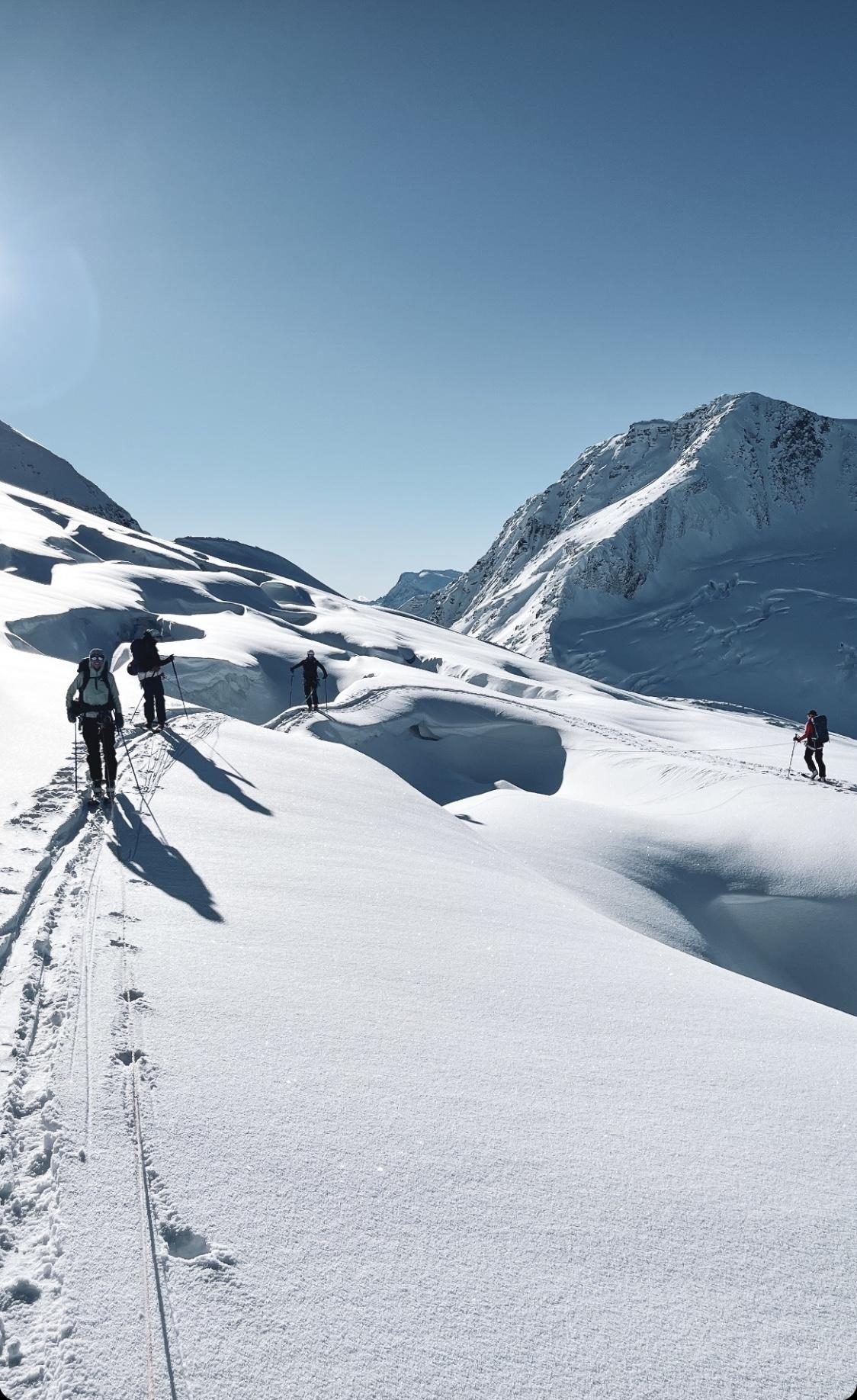I probed a pretty consistent depth of 110-130cm on the glacier above the Asulkan Cabin around 2300-2500m. Most of the crevasse on the way up towards the 7 Steps are still exposed, as are many of the moats where the moraines near Asulkan Pass lead down to the Asulkan Glacier. While it limited movement in places, having so much ice still closer to the surface provided a pretty solid classroom.