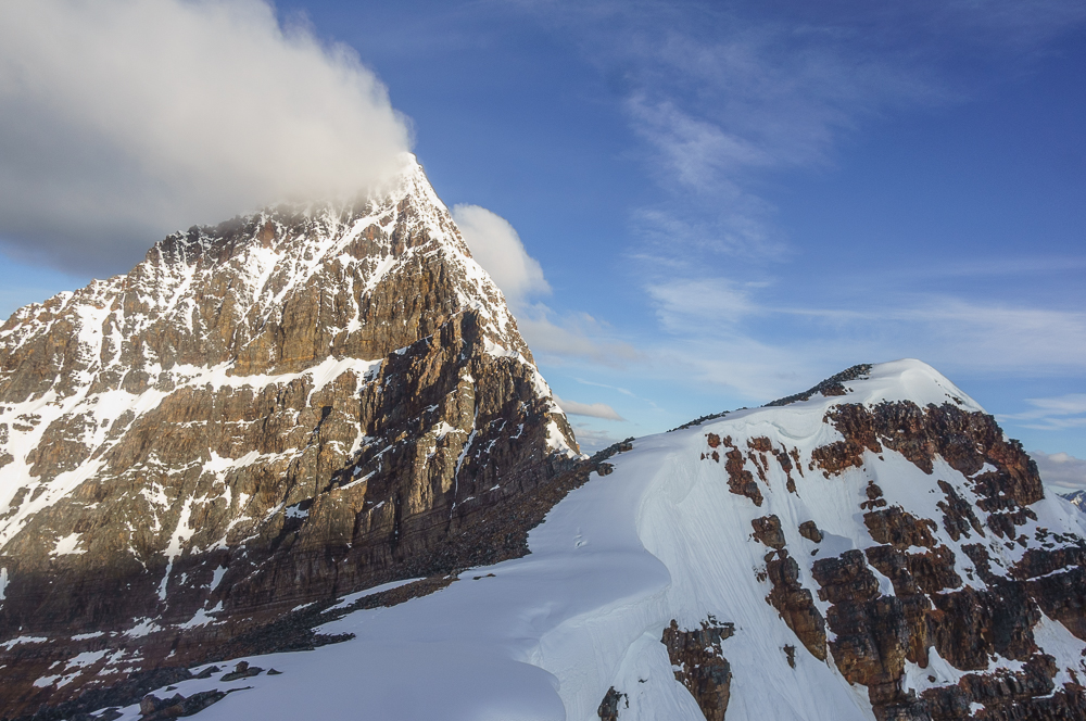 Ascended the East ridge on Edith Cavell today. 4C @ 0400 in the parking lot provided a moderate refreeze after seeing the NF continuously avalanche the day before. The hiking trail was dry till just before first snow slope to the col, where crampons were a must. The initial ridge was dry (or wet spots were avoidable). Fun rock climbing in boots! Afterwards, continuous snow climbing with a few rock steps led way to the summit. The real crux was finding supportive snow on either side of the ridge and swapping sides sure to cornices.
