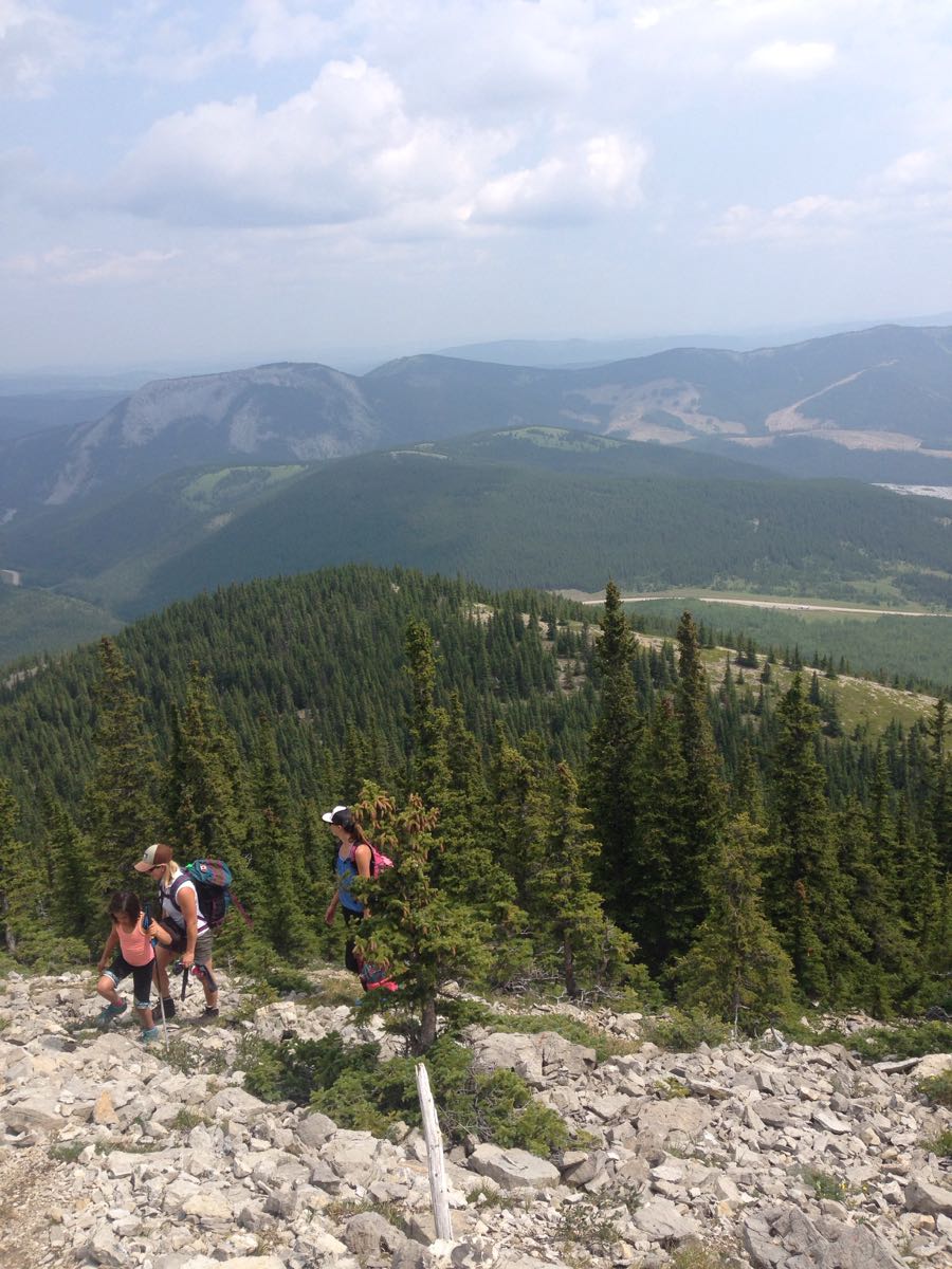 Start at Rainy Summit pullout and head to old logging directly to East. Trail has a bunch of logs laying at trail entrance. From here follow logging road as it winds its was to top of old cut block. From there orange flagging tape leads you up the east ridge. You will come to a rocky spur that you ascend. Half way up there is a ground wasp nest. Go around to avoid. Trail switchbacks to summit where you get amazing views and descend to West to join Powderface trail for descent. Best done with a vehicle at each end.