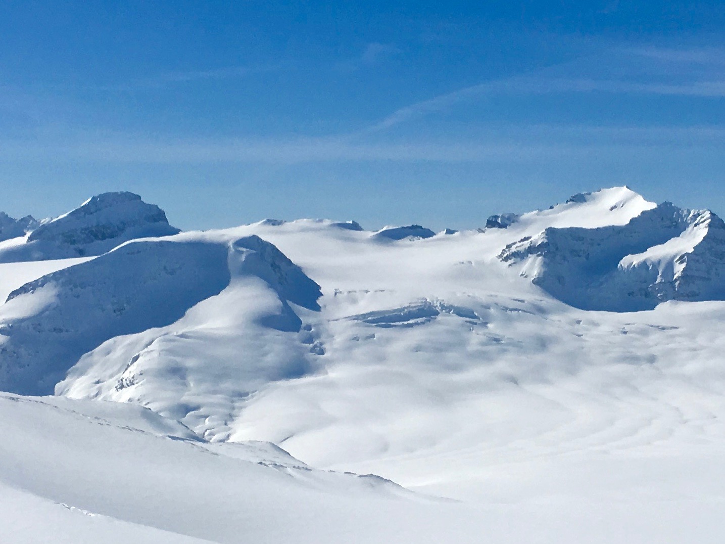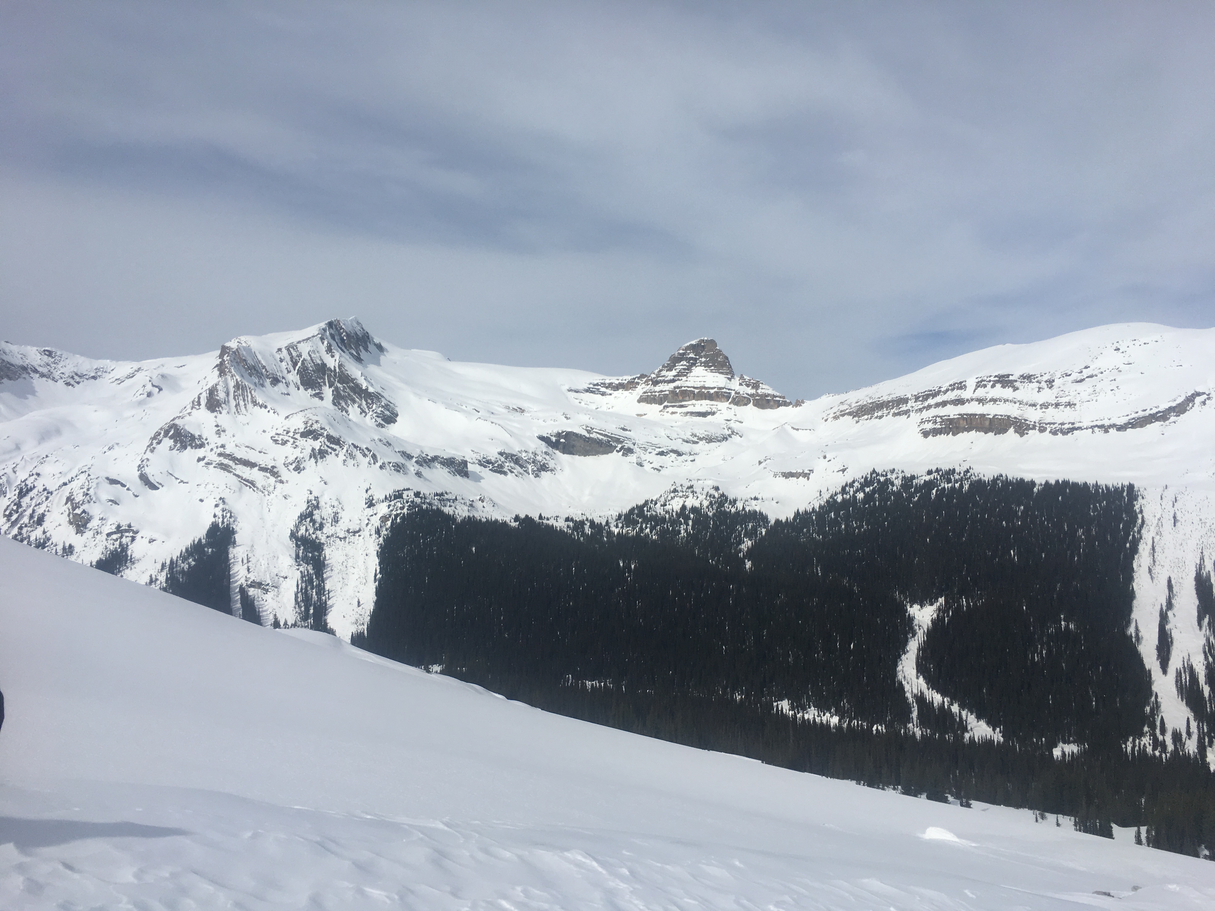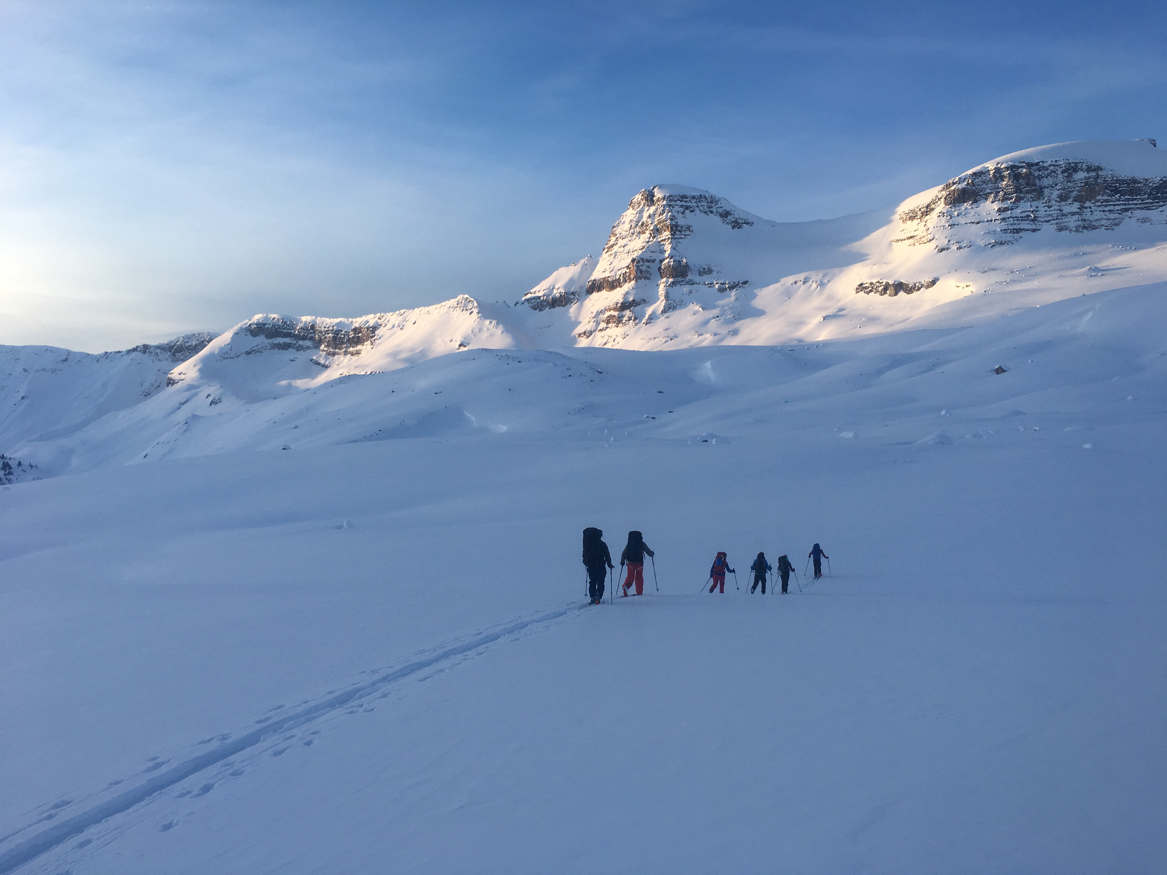 Yesterday we finished a 5 day Yoho Traverse.We were lucky to catch this weather window, overall conditions were excellent. Part of the group started from Mistaya Lodge on Sunday March 11th, others started from Bow Lake. We stayed 2 nights at Bow Hut, one at Guy Hut and one at Stanley Mitchell. We exited via the Yoho Valley. March 11-14th the sky was clear, very little wind and temperatures stayed below freezing above 2100m on polar aspects. On steep south aspects a 5cm supportive melt freeze crust had formed. Steep west aspects had a breakable crust, however, above 2400m some lower angle west aspects did not get crusty. (i.e. moraine slopes below the Guy Hut). Windslabs from prior to March 11th had faceted and the skiing was excellent on east and north. March 14th pm the sky clouded over and as of yesterday at 2pm about 15cm of new wet snow had accumulated in the Yoho Valley. Temperatures were just below 0 degrees. Besides some solar induced sluffing we observed only one new avalanche. It was a cornice triggered slab, about 50-80cm deep on the north east side of the ridge you traverse to gain the Guy Hut. Coverage on the glaciers varied from 200-300cm.